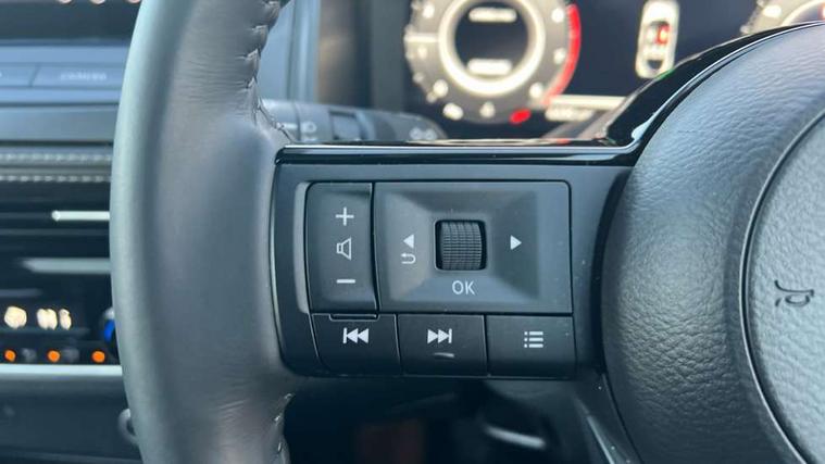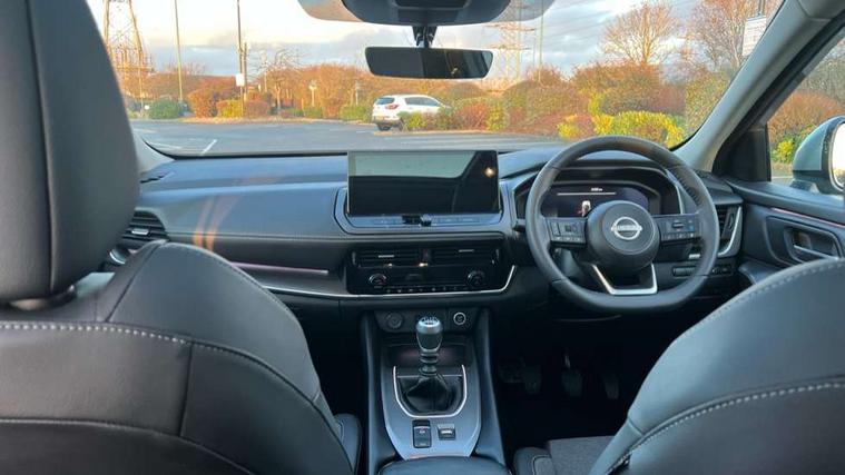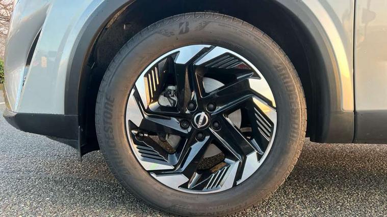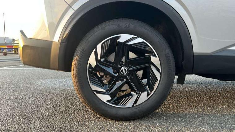 2 front USB-C ports, 2 rear USB-C ports, 360 degree Intelligent around view monitor with moving object detection, Blind spot intervention, Blind spot warning, Drive assist, Drive assist custom mode, Drive modes (sport, normal, eco), Driver drowsiness and attention warning, Electric speed sensitive power steering, Emergency and breakdown call, Emergency lane keep assist, Emergency Stop Signal (ESS), Engine start/stop button, Event data recorder, Front and rear parking sensors, Full Digital 12.3" TFT Digital Combimeter, Google virtual personal assistance, Idle stop/start system, In-car WIFI hotspot, Intelligent Cruise control (ICC), Intelligent forward collision warning, Intelligent speed assist, Lane departure warning system, Nissan connect 12.3 inch touchscreen infotainment system, Nissan connect navigation with google maps, Nissan connect services 2.0 (Google Automotive System), Outside temperature sensor, Rear cross traffic alert, Reversing detection, Wireless Apple CarPlay/Android Auto, Wireless charging pad, Limited slip differential, 6 speakers, AM/FM audio system with DAB, Bluetooth audio streaming, Auto rear wiper when reversing, Body colour mirror caps, Body coloured door handles, Bodyside mouldings, Chrome side window finisher, Electric auto folding door mirrors, Electrically adjustable and heated door mirrors with LED turn indicator, Follow me home headlights, High beam assist, Intelligent auto headlights, LED 3rd brake light, LED daytime running lights, LED Headlights, LED rear lights, One touch front and rear electric windows with remote opening and closing, One touch passenger window, Partially body coloured bumpers, Rear privacy glass, Rear roof spoiler, Rear side wing doors, Rear styling plate, Shark fin antenna, Splash free rain sensing wipers, Super UV and infrared cut glass, Three blink turn signal, 3 bench rear seats in 2nd row, 3 rear headrests, 60/40 split folding rear seat bench, Chrome interior door handles, Cloth upholstery, Dark headlining, Driver seat back pocket, Dual zone automatic climate control with pollen filter, Front door with bottle holders, Height adjustable front headrests, Leather shift knob, Luggage board system, Luggage space lighting, Multifunction steering wheel, Passenger seat back pocket, Rear door bottle holders, RGB ambient light (Full area coverage), Single front passenger seat, Smooth leather steering wheel, Tilt/telescopic adjustable steering wheel, Two rear isofix child seat anchorage points with top tether, 3x3 point rear seatbelt pretensioners + load limiters, Autonomous emergency braking, Child locks on rear doors, Curtain and front side, far side airbags, Driver and passenger airbags, Driver, passenger and 2nd row rear seat belt reminder, Electric handbrake with auto hold function, Front seatbelt pretensioners + load limiters, Height adjustable front seatbelts, Hill start assist, intelligent front emergency braking, Rear automatic braking, Tyre pressure monitoring system, Vehicle dynamic control, Engine immobiliser, Intelligent key with walk away lock and approach unlock functions, Remote central door locking with deadlocking, Thatcham alarm, 18" Diamond cut alloy wheels, Tyre puncture repair kit,