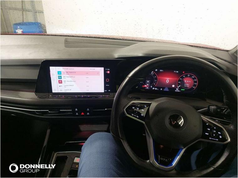Adaptive cruise control (ACC) with speed limiter and front assist (reacting to vehicles pedestrians and cyclists), Car2X communication, Digital cockpit pro - 10.25" high resolution TFT dash display screen with customizable menus and information, Driver alert system, Dynamic road sign display, eCall - Emergency call service for SOS calls to emergency response, Electronic engine sound, Lane assist, Lane change assistant, Mobile phone interface with wireless inductive charging function, PAS, Speedo, rev counter, electronic odometer, trip, service interval display, exterior temperature and fuel gauge, Start/Stop function, Travel assist with emergency side assist with electrically foldable door mirrors, USB-C ports in the front and rear centre console with increased charging performance, Warning buzzer and light for front seatbelts unfastened, Wireless app connect, 6 metre charging cables of Type 2 mode 2/G (10A) charging cable, Petrol Particulate Filter, Type 2 mode 3 (16A) AC Cable for wallbox/chargepoints, XDS electronic differential lock for improved traction and handling, Premium USB cable in choice of either Apple or Android smartphone compatibility, Ambient lighting, exterior illuminated styling elements at the sides, Auto dimming rear view mirror, Automatic headlamp activation with Coming home and Leaving home feature, Automatic headlights, Body colour bumpers, Body colour door handles, Body colour door mirrors with integrated indicators, Body colour rear roof spoiler, Front and rear electric windows, GTE style bumpers, Heat insulating glass windscreen, Heated rear windscreen, High level 3rd brake light, Highway light, Illuminated front grille, IQ.Light - LED Matrix headlights, dynamic headlight control with advanced high beam control matrix dipped main beam + LED DRL + 22 LED lights, LED front fog lights with 5 honeycomb design, LED License plate illumination, LED rear combination lamp inlcuding dynamic turn signal, Rain sensor, Rear fog light on one side and reversing lights on both sides, Rear side wing doors, Rear tinted glass 65% light absorbing from B pillar backwards, Rear windscreen washer and wiper with interval delay, Remote electrically heated, adjustable and foldable door mirrors, including door mirror puddle lights and reverse activated kerb-view adjustment on pa, Welcome light, 12V socket in front centre console, 12V socket in luggage compartment, 3 rear head restraints, 3 seat bench in 2nd row, 3 zone climate with controls in the rear, Aluminium gear knob, Ambient lighting - Customisable 30 colour ambient lighting, Black roof lining, Brushed stainless steel pedals, Chrome plated surround to electric mirror button, window switch and air vent surrounds, Drivers and front passengers sun visors with vanity mirrors, Front + rear carpet mats, Front centre armrest with storage compartment, Front cupholders x 2, Front passenger seat, Front reading lights x 2 incorporating LED technology, Front seat lumbar support adjuster, Front sports seats, Glovebox, Height adjustable front seats, Height and reach adjustable steering wheel, Isofix child seat preparation for 2 rear child seats and front passenger seat, Leather wrapped multifunction sports heated steering wheel with paddle shift, Leatherette door armrests and centre armrest, Luggage compartment lighting, Removable luggage compartment cover, Split folding backrest with centre armrest and unsplit rear seat bench, Woven fabric storage compartments in front and rear doors, 3 point height adj front seatbelts + pretensioners, 3 rear three point seatbelts, ABS, Child locks on rear doors, Driver and front passenger airbag with front passenger airbag deactivation, Drivers and front passengers safety optimised head restraints, Electronic parking brake with auto hold, ESC (Electronic Stability Control), Extended pedestrian protection measures, Front and rear passengers curtain airbag system including front side airbags, Front disc brakes, Rear disc brakes, Two tone horn, Tyre pressure monitoring system, Alarm with interior protection and deactivation via infotainment system, Electronic engine immobiliser, Keyless entry with start/stop button on centre console, Black metal chrome decorative inserts in dash and front door trim panels, High gloss black centre console, Soul dashboard, Tyre mobility kit Includes 12V compressor and tyre sealant,