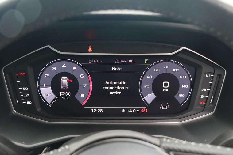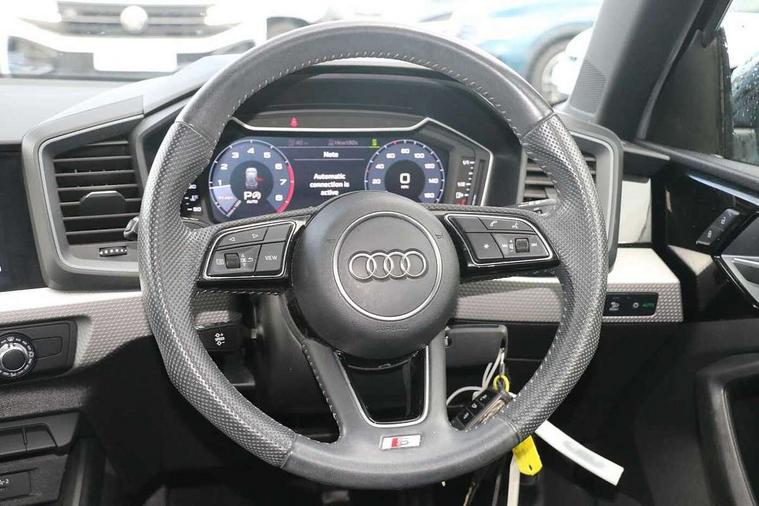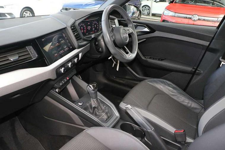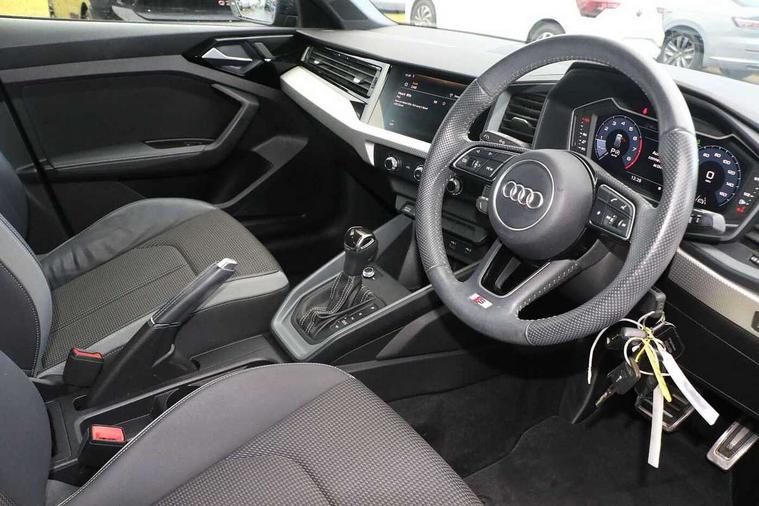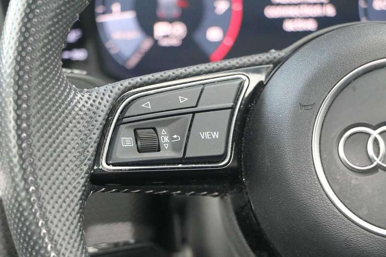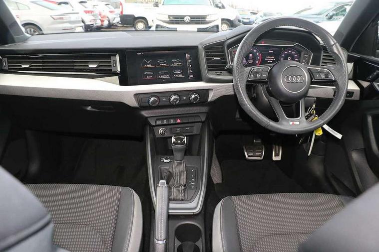 10.25" Digital instrument cluster display screen, Audi connect safety emergency and service including E-call, Audi drive select, Audi smartphone interface, Automatic start/stop system, Bluetooth interface, Driver's information system, Electromechanical power steering, Lane departure warning system, Service interval indicator, Speed limiter, Voice control system, Washer fluid level indicator, Sports suspension, 1 x SDXC card reader, 1 x USB type C and 1 USB type A charging points, Audi music interface, Bluetooth audio streaming, DAB Digital radio, MMI radio plus with 8.8" colour MMI display screen and MMI touch, Auto dimming rear view mirror, Body colour side sill mouldings, Body coloured bumpers, Body coloured door mirrors, Door sills with aluminium inlays and S Line logo, Electric front and rear windows, Front side air inlets in grained matt black and C frame in titanium black, Heat insulating glass windscreen and side windows, Heated rear windscreen, LED headlights with LED rear lights + dynamic rear indicators, Matt aluminium silver tailpipe trim, Matt black radiator grille frame, Matt platinum grey in front spoiler clip and rear diffuser clip, Rain and light sensors, Rear fog lights, Rear wiper, S line badges on front wings, S line exterior bumpers, S line roof spoiler, Side air inlet frames titanium black, Side front spoiler lips in grained matt black, 12V socket in centre console with two cup holders, 3 rear seats, Black cloth headlining, Driver and passenger seat with manual height adjust with forward and backwards adjustment, Front and rear black floor mats with contrast stitching in fine silver, Front head restraints, Height and reach adjustable steering wheel, ISOFIX child seat mounting in front passenger and rear outer seats, Leather gear knob with aluminium trim, Leatherette handbrake grip, Luggage compartment light with front and rear reading lights, Lumbar adjustment for front seats, Rear head restraints, Split folding rear seats, Stainless steel pedals, 3x3 point rear seatbelts, Audi pre-sense front with pedestrain and cyclist recognition, Brake assist function, Driver and front passenger airbag with front side and head airbags, Electronic Stability Control including ABS, EBD, ASR and EDL, Front and rear seatbelt reminder, Front passenger airbag deactivation switch, Hill hold assist, Seatbelt height adjustment for front seats, Seatbelt monitoring, Tyre pressure warning light, Warning triangle and first aid kit, Anti theft alarm, Anti theft wheel bolts and loose wheel warning, Immobiliser, Remote central locking with 2 remote folding keys, Aluminium trim for control switches, air vents and digital instrument cluster, Silver grey inlays polygon structure in diamond paint finish, Structured grey accent areas including air vents, door handle recesses and centre console in quartz paint finish,
