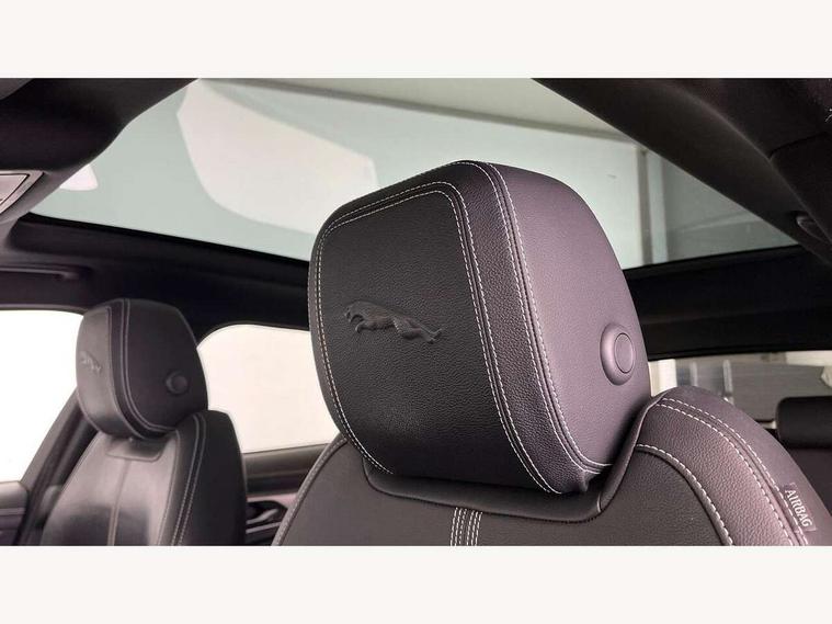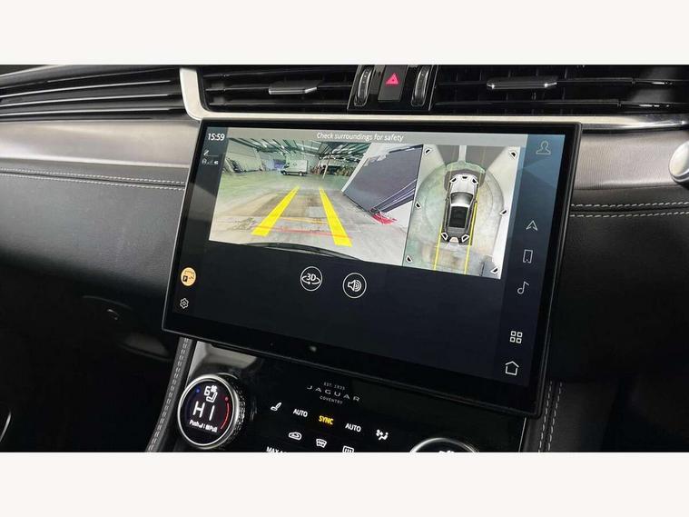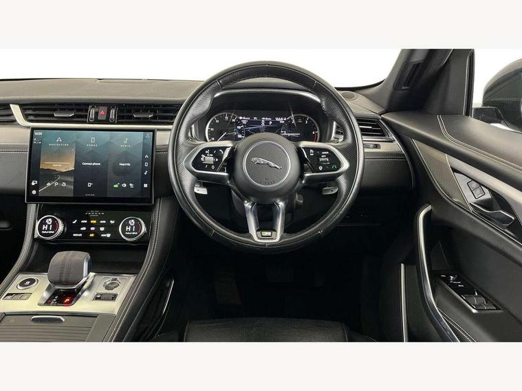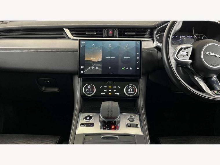 11.4" touchscreen, 3D surround camera, Android Auto, Apple car play, Bluetooth connectivity, Driver alert system, Driver condition monitor, Eco driving style assistant, Electric power assisted steering, InControl remote, Jaguar Toggle shift selector, Lane departure warning system, Lane keep assist, Outside temperature gauge, Personalisation profile management, Pivi pro connected navigation system with app interface and media storage, Pro services and wifi hotspot, Push button starter, Service interval indicator, Speed proportional steering, Start up sequence with movement in dials and lighting, Traffic sign recognition with adaptive speed limiter, Trip computer, Voice control system, 8 speed automatic transmission, All terrain progress control, All Wheel Drive (AWD), Open differential with torque vectoring by braking, AM/FM radio, Bluetooth streaming, DAB Radio (Digital Audio Broadcasting), Dynamic volume control, InControl apps, InControl protect, iPod integration, 3 flash lane change indicators, Approach Illumination, Auto dimming rear view mirror, Automatic headlights, Body colour door mirrors, Electric windows with one touch open/close and anti trap, F-Pace badge, Green tinted glass, Heated front windscreen + heated washer jets, Heated rear window with timer, Jaguar script and leaper, LED tail lights, Non acoustic front windscreen, R Dynamic badge on side door, Rain sensor windscreen wipers, Rear fog lights, Rear metal tread plates, Rear wiper, Trailer stability assist, Variable front intermittent wipers, 12V power point front, 3 rear headrests, Air distribution speed, Cabin lighting, Centre armrest console, Centre console with side storage, Door sill tread plates, Fold flat front seats, Front centre armrest with storage compartment, Front door storage space, Glovebox finisher with jaguar script, Heated steering wheel, Hooks in loadspace, Illuminated glovebox, Interior front door handles with separate locking switches, ISOFIX on outer rear seats, Jaguar sense, Luggage tie downs in loadspace, Mist sensing, Multifunction steering wheel, Overhead lighting console, Overhead stowage for sunglasses, Passive front head restraints, Premium carpet mats, R-Dynamic branded leather steering wheel, Rear air vents, Rear armrest with twin cupholders, Rear centre headrest, Rear door storage space, Reversible boot floor, Satin chrome gearshift paddles, Shopping bag hook, Sunvisors with illuminated vanity mirrors, Twin front cupholders with cover, Online Pack with data plan - F-Pace, 355mm front brakes and 325mm rear brakes, 3x3 point rear seatbelts, ABS, All surface progress control (ASPC), Brake pad warning light, DSC - Dynamic Stability Control, Electric parking brake (EPB), Front airbags with passenger seat occupant detector, Front and rear seatbelt reminder, Front side airbags, Full length side window curtain airbag, Hill launch assist, Power operated child locks, Torque vectoring brake, Traction control, Tyre pressure monitoring system, Immobiliser, Keyless start, Locking wheel nuts, Perimeter alarm, Remote central locking, Valet mode,