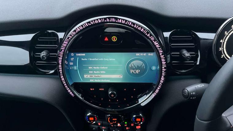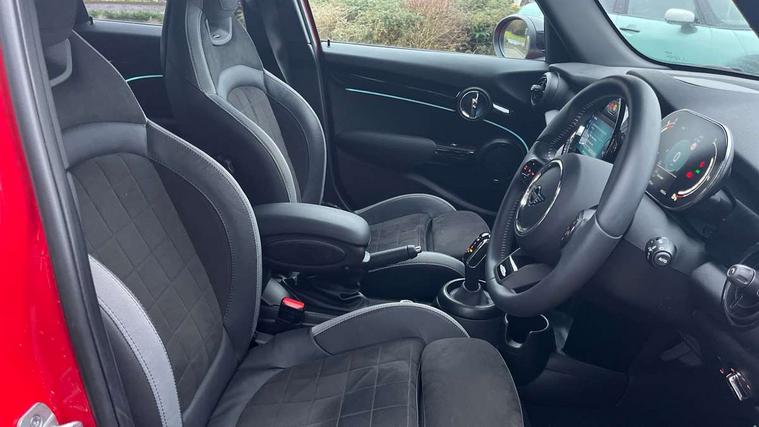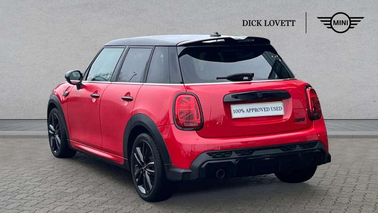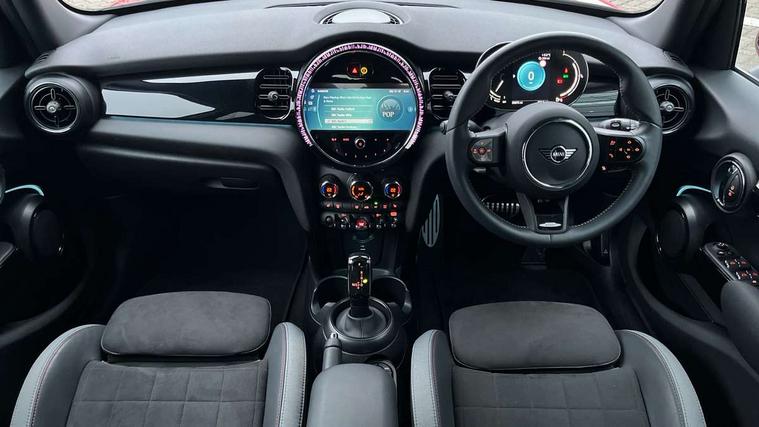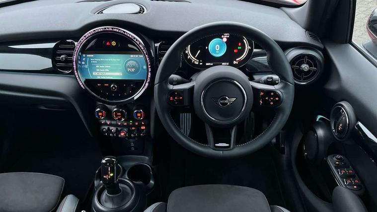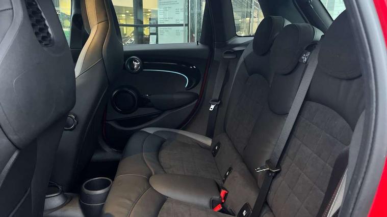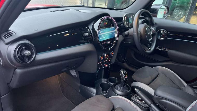 Apple CarPlay, Automatic start/stop function with brake energy recuperation, Compatible mobile phone bluetooth with audio streaming, Electro-mechanical speed dependant steering assistance, Flexible car sharing preparation, MINI Driving Modes - centre toggle switch to control driving setting (sport, mid and green), Mini E-call, MINI TeleServices, On board computer, Rear park distance control, Service interval indicator, Adaptive suspension, Double Vanos system, Fully variable valve control, Gear change indicator display, High precision injection, Performance Control, Steptronic transmission with double clutch, 8.8" touchscreen with LED ring, FM tuner and DAB digital radio, 3rd brake light, Automatic headlight activation switch, Body colour fuel filler cap, Chrome border high gloss black slats radiator grille, Dynamic brake lights, Electric front+rear windows, Exhaust tailpipe on left with chrome finisher, Heated rear window, Heated windscreen washer jets, JCW Aerodynamic kit - Front and rear bumpers with sporty JCW styling and part-painted side sills with MINI John Cooper Works door sill finishers, John Cooper Works rear spoiler, Metal door sill strips with MINI imprint, Model logo Cooper on right of tailgate, Rain sensor window wipers, Rear fog lights, Rear LED lights with union jack design, Rear side wing doors, Rear window wiper, Side scuttle panel with integrated indicator, Sun/heat protection glass, White indicator lenses, 12V Accessory socket in centre console, 3 seat bench in 2nd row, 4 lashing eyes in luggage compartment, 60/40 split folding rear seat, Anthracite headliner including grab handles and clothes hooks, Carbon black colour line - Knee roll and door armrest, Chrome interior highlights, Cupholders, Front and rear isofix with front passenger airbag deactivation, Front and rear velour floor mats, Glove compartment, Height and length steering column adjustment, Interior lighting with 12 different colours across the dashboard, underneath door bezel with illuminated laser-engraved design on central display, JCW Sport seats with integrated headrests, adjustable thigh support and John Cooper Works logo, Leatherette gearshift lever and handbrake gaiters, LED reading lights, vanity mirror lights, front foot well light and spotlight on front seats, Mechanical seat adjustment - forward/back & backrest for front seats and driver seat height adjust, Multifunction steering wheel, Single front passenger seat, Storage compartments in doors, Sunvisors with vanity mirrors, Walknappa leather steering wheel with grey seam and John Cooper Works badge on Piano Black lower steering wheel spoke, Piano black exterior pack - Mini Hatchback Cooper, 3 point seatbelts on all five seats, 6 Airbags - front, side, head and seat belt tensioners, Anti-lock braking system (ABS), Child locks on rear doors, DSC - Dynamic Stability Control, Front and rear disc brakes, Hill start assist, Single tone fanfare horn, Tyre pressure monitoring system, Alarm system with tilt sensor, monitoring doors, bonnet interior and tailgate, Electronic vehicle immobiliser, Start/stop toggle with keyless go, Piano black interior trim, Tool kit,