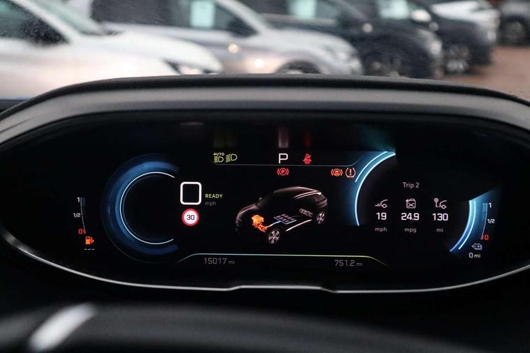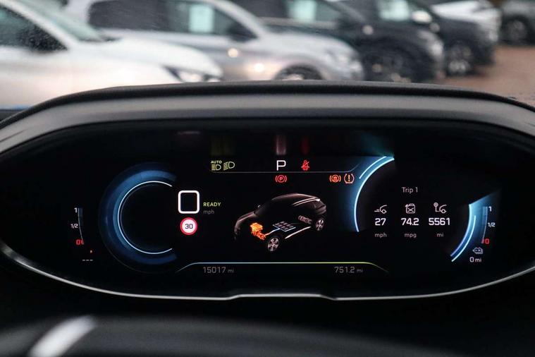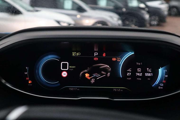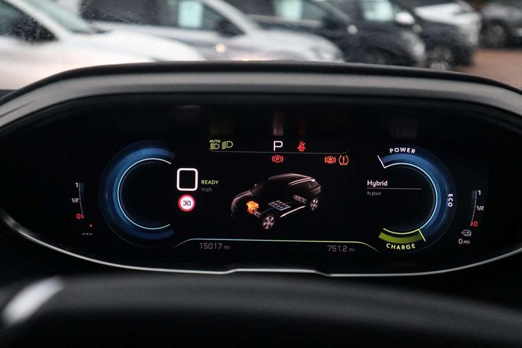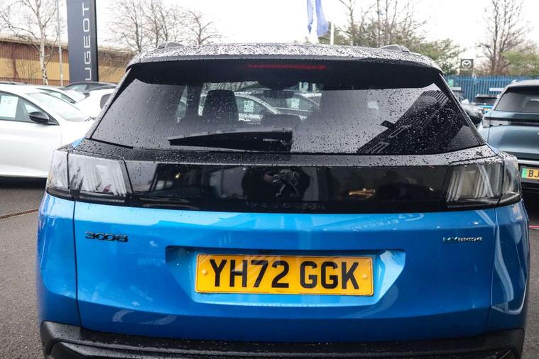 3D connected navigation with 10" HD touchscreen + voice recognition system, Apple car play and Android auto, Bluetooth telephone facility, Drive mode selector (Electric, Hybrid, Sport, 4WD) & Hill Assist Descent Control, Driving Time Warning (DAA1), Emergency services call system, Extended traffic sign recognition, Exterior temperature indicator with ice warning, Front and rear parking sensors, Lane departure warning system, Mirror screen with mirror link, apple carplay and android auto, Multi function trip computer, Peugeot i-cockpit with compact multi-function sports steering wheel, PEUGEOT i-Cockpit with configurable 12.3" Head-up digital instrument panel, PEUGEOT SOS and assistance, Rear passenger USB charging sockets (x2) (type A), Speed limit recognition and recommendation, Deferred charging option, configurable in car or via My PEUGEOT App, Dynamic stability control and electronic anti-skid system, Mode 3 type 2 cable for wallbox charging, DAB Digital radio, USB socket, Auto self levelling headlights, Automatic hazard light activation upon heavy brake application, Automatic triggered rear windscreen wiper in reverse gear, Black with chrome detailed front wing trim, Body colour door handles, Body colour rear roof spoiler with stainless steel edging trim, Body protectors (bottom of front and rear bumpers + wheel arches + protection at bottom of doors) in black, Dark tinted rear side windows + tailgate window, Diamond Black door mirror shells, Door mirror mounted LED courtesy floor lighting, Electric folding door mirrors with exterior courtesy LED lighting, Electric operated/heated door mirrors, Fog Mode, Front windscreen wiper with magic wash cleaning system, Full LED headlights with LED fog lights with static cornering function, Gloss black B and C pillar and aerodynamic deflector trim, Gloss black front bumper air scoops, Gloss black rear cluster connecting strip, Gloss black windscreen trim, Headlights left on audible warning, Heated rear windscreen with integrated antenna, HYBRID4 emblem on front wings and tailgate, LED daytime running lights, LED front indicator, LED rear number plate lighting, LED side indicator lights integrated into door mirrors, LED third brake light, One touch electric front/rear windows with pinch protection, Rear LED Peugeot signature 'Claw Effect' lights, Rear side wing doors, Stainless steel roof arches, Twin exhaust tailpipe, 1/3 to 2/3 split folding rear seats, 12V Sockets in dashboard, rear cabin and load area, 2 cupholders in front centre console, 2 cupholders in rear armrest, 2 x Rear reading spotlights, 2x Rear coat hooks, 3x Isofix child seat fittings in the front passenger and outer rear seats, 4 Grab handles retractable and damped, Aikinite stitching in armrest, gear lever and dashboard facia, Aluminium pedals, Blue ambient lighting for connecting zone, Blue ambient lighting to front door panels, central storage and cupholders, Blue ambient lighting to headup instrument panel, Cabin pre-conditioning, Centre front armrest with butterfly wing opening and illuminated storage compartment, Driver seat manual adjustment (longitudinal and back rest angle), Dual zone automatic climate control, Electric power steering with reach and rake adjustable steering column, Fixed boot floor with access to the charging cable storage box, Flocked front door pocket interior with blue ambient lighting, Flocked glovebox interior, Foldable front passenger seat with picnic table, Footwell illumination, Front interior light with 2 reading spotlights and rear interior light with timer, Front passenger seat manual adjustment (longitudinal and back rest angle), Front seat back map pockets, Gear shift indicator, Illuminated glovebox, Individual left and right controls in boot for seat folding, LED interior lighting in storage spaces and load area, LED roof interior lighting, Mistral floor mats with Aikinite contrast stitching, Mistral full grain perforated leather steering wheel with aikinite stitch detail and satin chrome 'GT' emblem, Rear bench seat with central armrest and ski hatch, Rear centre console ventilation system, Roof lining - Mistral black, Satin chrome dashboard trim, Satin chrome digital instrument panel and touchscreen trim, Satin chrome front door panel recess trim, Satin chrome interior door handles, Satin chrome scorpion's tail and toggle switch trim, Seatbelt not fastened audible and visual alert for front seats, Seatbelt unfastened on the move audible and visual alert for front and rear seats, Sunvisors with illuminated vanity mirrors, Drive assist plus pack - 3008, Visibility pack - 3008 PHEV, 3x Rear three-point retractable seatbelts with force limiters in the outer rear seats, ABS (Anti-lock Braking System) with EBD (Electronic Brakeforce Distribution) and EBA (Emergency Braking Assistance), Acoustic vehicle alerting system, Adaptive driver and front passenger airbags with passenger airbag deactivation function, Driver and front passenger side airbags, Electric child locking functionality on rear windows and doors, Electric parking brake, Front and rear curtain airbags, Front optimised safety headrests and 3 x rear retractable headrests with height adjustable, Front three point retractable seatbelts with pre tensioners and force limiters, Front ventilated disc brakes and rear disc brakes, Hill start assist, Two tone horn, Automatic door locking when moving off, Electronic immobiliser, key operated exterior door lock from the left hand door, Perimetric and volumetric alarm with lift and tilt sensor, Peugeot Open and Go System, Remote control central locking with two plip keys, Puncture repair kit including compressor, sealant cartridge and towing eye,