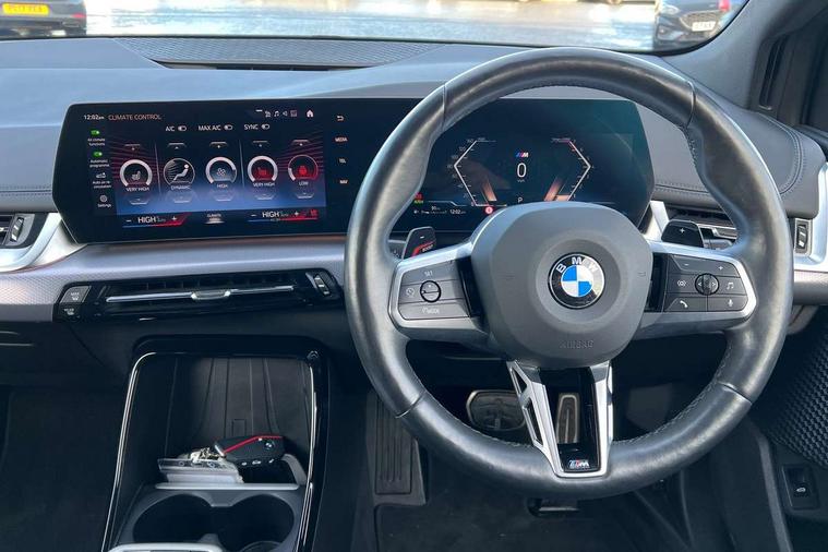 Active Guard, Attentiveness assist, Automatic powered tailgate, Automatic start/stop function, BMW Online services, BMW Operating system 9 with BMW Maps, real-time traffic information, in-car experiences, remote services and smartphone integration, BMW Teleservices, Brake pad wear indicator in front and rear, Condition based service, ConnectedDrive Services, Drive off assistant, Flat air vents on instrument panel in high gloss black, adjustable slats with elements in pearl chrome, iDrive controller, Instrument cluster with speedometer with miles per hour read out, tachometer and fuel gauge, Language version English, On board computer - average speed+fuel consumption, service interval, clock/date, odometer/trip meter, outside temperature display and ice warning, Parking assistant with active park distance control, reversing assistant, lateral parking aid and rear view camera, Servotronic variable electric power steering (EPS), Widescreen display, Wireless charging, Drive performance control with ECO PRO comfort + sport mode, Gear selector switch with toggle operation, M Adaptive suspension, Petrol Particulate Filter, Steptronic transmission with double clutch and gear shift paddles, 2x USB Type C ports in front centre console for charging and data transfer, 2x USB Type C ports in rear centre console for charging, DAB Digital radio, Welcome sound upon opening of the front driver or passenger door, Air inlet middle part on front apron in lines specific design with trim strip in satinised aluminium, Automatic headlights, Black rear bumper trim strip, BMW emblem, engine compartment lid and tailgate, Body colour roof mouldings, Body coloured door mirror caps, Contoured rear roof spoiler in vehicle colour with side aeroblades in black high-gloss, Driver side exterior mirror lighting with BMW logo projection, Dynamic brake lights, Electric adjustable heated door mirrors, Electric windows - front and rear, with open/close fingertip control, anti-trap facility and comfort closing, Folding door handles integrated flush with surface, Front and rear windscreen wipers with heated front washer nozzles, Front bumper cover with independent design in body colour with inserts in black high gloss, Front bumper design elements in satinised aluminium, Front door exit lights, Front door sill finishers aluminium inserts with M inscription, Front entry sills with aluminium inserts + BMW inscription, Front oramental grille with radiator grille bars in satinised aluminium, Heated rear window, Hidden exhaust pipe, High gloss shadow line, Home light, Key with M identification, LED Daytime running lights and parking lights with turn indicators, LED number plate light, LED third brake light in rear spoiler, M identification on sides, Manual headlight range control, Model inscription on right tailgate, Rain sensor, Rear bumper cover with independent design in body colour with inserts in black high gloss, Rear side wing doors, Shark fin antenna, Side sill covers with independent design in Body colour, Trailer stabilisation logic, Trims on front and rear bumper covers colour-coordinated with side window graphic, Visible VIN plate, Welcome lighting, Windscreen washer nozzle for rear view camera, 12V power socket in luggage compartment and front centre console, 12V socket in right side trim panel, 2 bag hooks in luggage compartment, 2 front reading lights, 2 open cup holders in front centre console, 3 seat bench in 2nd row, Ambient lighting front and rear, Automatic two zone climate control air conditioning, Bottle trays in all doors, Child seat ISOFIX attachment for two outer rear seats and front passenger seat with anchorage points, Driver and front passenger sports seats, Embellishers on steering wheel spokes in pearl chrome, Four grab handles integrated in roof lining, Front and rear door pockets, Front and rear footwell lighting, Front and rear side armrest integrated into door trim, Front centre console storage compartment, Front head restraints, Glovebox with light, Heated front seats, Height adjustable 3 rear head restraints, Interior door handle recess light on all doors, Luggage compartment lighting, M Anthracite headlining, M specific floor mats, M sport leather steering wheel, Manual adjustment of seat height, fore/aft position, seat depth, backrest tilt and head restraint height, Map pockets, Mechanical rear seats with fore/aft adjustment, Middle centre console storage compartment, Multi-function controls for steering wheel, One piece parcel shelf opens together with tailgate and removable, Rear cloth hooks, Single front passenger seat, Stainless steel pedals, Steering wheel column manual adjustment, Storage compartment lighting in centre console and storage tray in centre stack, Storage compartment net in left side trim panel, Storage compartment with folding cover under centre console armrest cushion, Sunvisors with illuminated vanity mirrors, 3 point seatbelts on all seats, front pyrotechnic belt tensioners, stopper and belt force limiters, rear coded belt buckles, Airbag - Front driver and passenger, front and rear head, front side, curtain head protection, manual deactivation of front passenger airbag possible, Anti lock braking system (ABS) with brake assist, Automatic hold function, BMW emergency call, Brake drying, Braking readiness, Child proof locking system in rear door, Cornering brake control, Crash Sensor - activates hazard/interior lighting + unlocks doors, DSC - Dynamic Stability Control, Dynamic brake control, Dynamic Traction Control - DTC, Electromechanical parking brake, Energy recovery system, Front disc brakes, Integrated braking system, PC iBrake PostCrash approach control warning with light braking function, Rear disc brakes, Tyre pressure monitoring system, Warning triangle and first aid kit, Anti theft alarm system, Closing system with central locking, Drive away door locking, Engine immobiliser, Locking wheel bolts, Front centre console trim in high gloss black with my mode expressiv