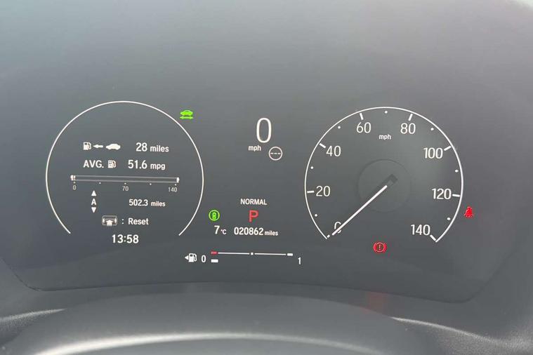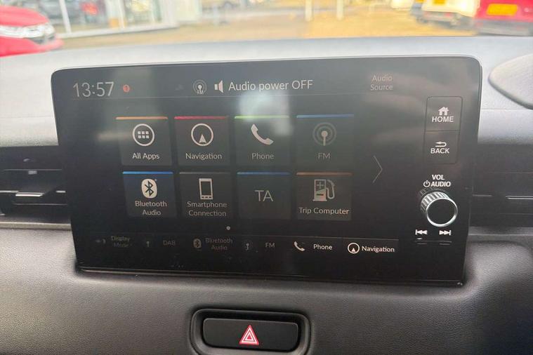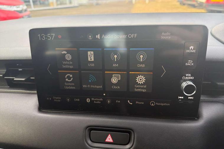 7" TFT instrument cluster, Adaptive cruise control, Adjustable speed limiter, Agile handling assist, BLIS (Blind Spot Information System) with Cross Traffic Monitor, Bluetooth hands free telephone connection, Drive modes select (Eco, normal and sport), eCall emergency system, Electric power steering, Emergency stop signalling system, Forward collision warning, Front parking sensors, Handsfree power tailgate with walkaway close, Honda CONNECT with navigation, 9" touchscreen, AM/FM/DAB/Apple Carplay and android auto, Idle stop, Intelligent speed limiter, Lane departure warning, Lane keep assist, Low speed following, Multi info display, Power meter, Rear parking sensors and rear view camera, Road departure mitigation, Tachometer, Traffic sign recognition, WiFi connectivity, Vehicle stability assist, 'Shark fin' mobile antenna, 2 USB sockets in rear, 2x USB Front socket (1 data & 1 charge), 4 speakers + 2 tweeters, Steering wheel mounted remote controls, Auto dimming rear view mirror, Auto folding door mirrors, Auto high beam, Automatic coming home lighting, Automatic headlights, Automatic rain sensing wipers, Body colour bumpers, Body colour tailgate spoiler, Body coloured door handles, Electric front and rear windows, Electrically adjustable and heated door mirrors, Exclusive styling in lower bumper black, Fog garnish paint emblem gray black lower door garnish with silver accent, Bumper skid garnish sharp silver, Front sequential turn, Front wiper de-icer, Headlight washers, Heated front windscreen, Heated rear window, High gloss side window surrounds, High level third brake light, LED daytime running lights, LED front fog lights, LED headlamps, Manual headlight levelling, Rear side wing doors, Rear wiper, Red and clean lens LED rear lights, Retractable/reverse auto tilt door mirrors, Variable front intermittent wipers, Windscreen shadeband, 3 rear headrests, 3 seat bench in 2nd row, 60/40 split folding rear seat, Ambient interior lighting, Cargo net hooks, Courtesy lights, Driver seat back pocket, Driver's seat height adjustment, Driver/passenger sunvisors with illuminated vanity mirrors, Dual automatic air conditioning, Front and rear map reading lights, Front head restraints, Front seat armrests, Heated front seats, Heated steering wheel, Isofix points, Luggage area under floor storage box, Magic seat flexibility system, Manual height/reach adjust steering wheel, Meter illumination light, Paddle shift controls, Passenger seat back pocket, Rear centre armrest, Rear ventilation, Silver interior door handles, Silver interior panels, Single front passenger seat, Smooth leather steering wheel, Tonneau cover, Trunk light, 3x3 point rear seatbelts, ABS+EBD+Brake assist, Anti-whiplash front headrests, Auto hold function, Collision mitigation braking system, Collision mitigation throttle control, Deflation detection system, Dual front SRS airbags, Electric child locks, Electronic parking brake, Front and rear curtain airbags, Front and rear safety belts with Emergency Locking Retractor, Front side airbags, Hill descent control, Hill start assist, Low speed safety system, Paddle deceleration control, Passenger SRS airbag cut-off device, Regenerative braking system, Door deadlocks, Honda super locks, Immobiliser, Keyless smart entry with push button start, Mirrors and windows key fob operation, Remote central locking with 2 remote folding keys, Security alarm, Tyre repair kit,