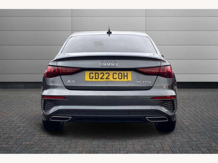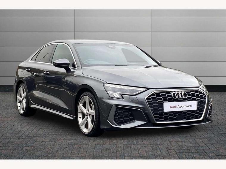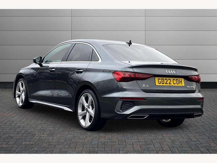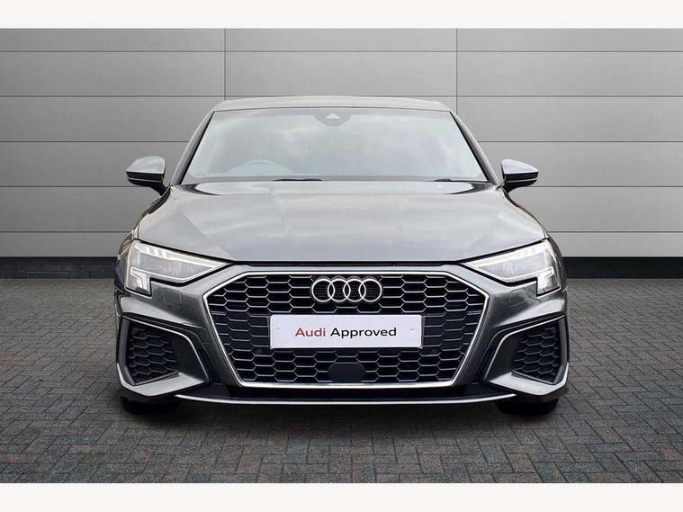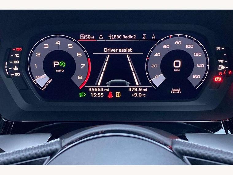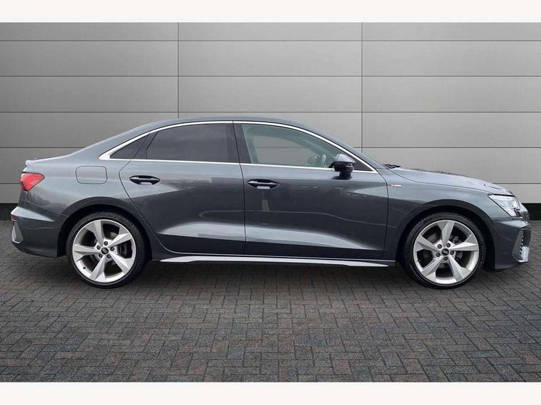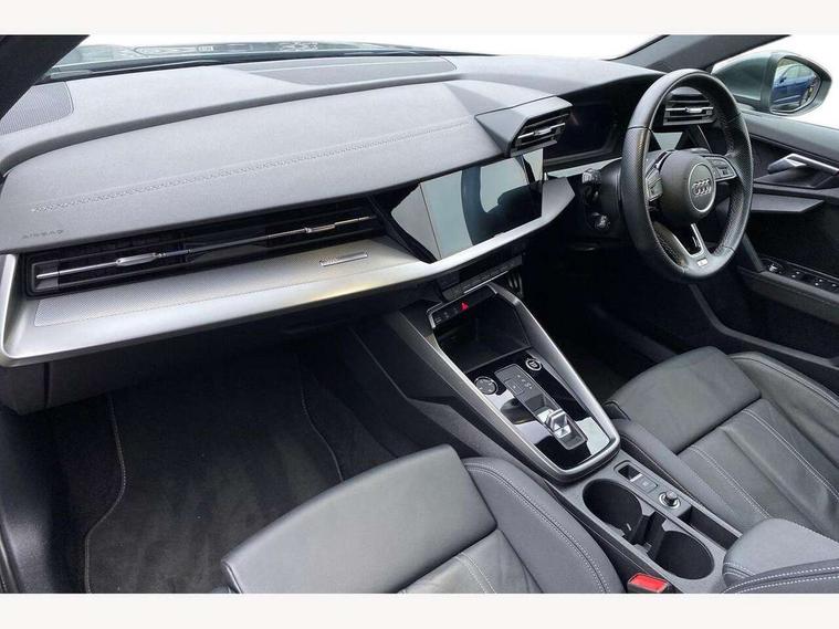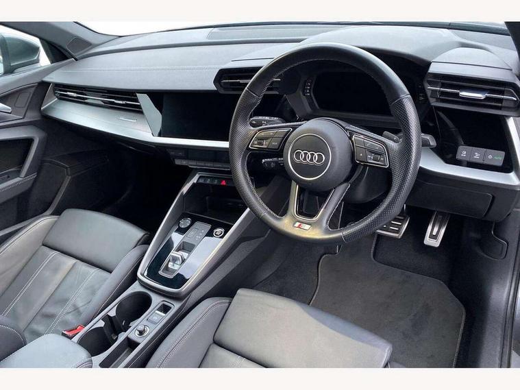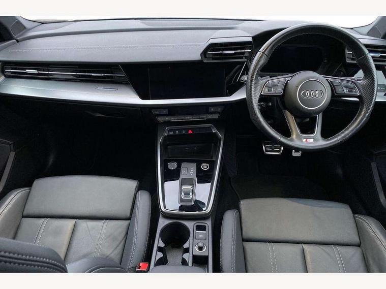 Audi connect emergency call and service, Audi drive select (Auto, Comfort, Dynamic, Efficiency and Individual), Audi smartphone interface, Audi Virtual Cockpit - 10.25" digital and colour instrument cluster, Automatic start/stop system with recuperation, Bluetooth interface, Collision avoidance assistant, Electromechanical power speed sensitive steering, Lane departure warning system, MMI Navigation Plus with high resolution 10.1" colour touch screen display, Service indicator, Voice control system with natural language interaction, 2x USB Type C ports (for charging and data transfer), 6 passive loudspeakers, CD player, DAB Digital radio, 3rd brake light, Acoustic glass windscreen, Aluminium window trim, Auto dimming frameless rear view mirror, Electrically adjustable/heated/folding/dimming door mirrors with kerb view includes integrated LED indications + kerb view function for passenger side, Front electric windows, Illuminated door sills with aluminium inserts at the front with S logo, LED daytime running lights, LED headlights with LED rear lights and dynamic rear indicators, Light and rain sensors, Model and engine designation badges at rear, Privacy glass - dark tinted rear window, rear door and side windows, Rear boot, Rear electric windows, Rear side wing doors, S line bumpers, S roof spoiler, 12V socket and storage compartment in front centre console, 3 seat bench in 2nd row, 40/20/40 split folding rear seat bench with cupholder, Black cloth headlining, Dual zone electronic climate control, Front and rear centre armrest in leather, Front and rear headrests, Front/rear floor mats, Height and reach adjustable steering wheel, Illuminated vanity mirror, Interior lighting - glove compartment light and right hand side, Luggage compartment floor covering, Manual boot compartment lid, Manually adjustable front sport seats, Seat side bolsters, Single front passenger seat, Stainless steel pedals and front footrest in black, Twin leather upholstery with front sports seats S embossed logo, Aluminium interior elements pack - A3 Saloon, S line styling pack - A3 Saloon, 3x3 point rear seat belts, Driver and front passenger airbag with passenger airbag deactivation, Electronic Stabilisation Control (ESC) including ABS, ASR and EDL, First aid kit with warning triangle and 2 safety vests, Front side airbags with head airbags and interaction airbag, Hill hold assist, Pre-sense front with pedestrian and cyclist detection, Seatbelt monitoring, Tyre pressure loss indicator, Anti theft alarm, Anti-theft wheel bolts, Immobiliser, Manual child locks, Remote control central locking, Aluminium air vent surrounds, Aluminium trim elements, Dark spectrum aluminium inlays, accent surfaces in the dashboard and centre console in platinum grey silk effect paint finish,