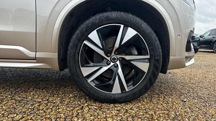 12.3" Progressive Driver Display, 360 degree surround view parking camera with side proximity sensors, 9" centre console portrait touch screen, Adjustable steering wheel force, Bluetooth hands free telephone connection, Driver alert control with lane keeping aid, Driver assistance (pilot assist and adaptive cruise control), Driver awareness - Blind spot information system with steer assist, cross traffic alert with autobrake and rear collision warning and mitigation, Emergency call service, Front and rear park assist, Google Automotive Services - Navigation with Voice recoginition and google assistant, Handsfree power tailgate opening and closing, Oncoming Lane Mitigation, Power operated tailgate, Service interval indicator, Speed limiter, Speed sensitive steering, Trip computer, Volvo on call, Wireless Mobile Phone Charger, 8 speed automatic transmission with start/stop + manual change functions, Touring chassis, DAB Radio (Digital Audio Broadcasting), Premium Sound by Harman Kardon, dirac unison, dolby pro logic II surround sound, 13 speakers/600W output and fresh air subwoofer, Steering wheel remote infotainment controls, Active bending headlights with adaptive shadow technology, Adaptive brake lights with high level LED brake lights, Auto dimming interior + exterior mirrors, Auto folding and heated power door mirrors, Automatic headlight levelling system, Automatic LED Headlights + Active high beam incorporating daytime running lights, Body colour bumpers, Front and rear power windows, Headlight cleaning system, Heated front windscreen, High gloss black door mirrors and window surround, High gloss black front and rear bumper deco, High gloss black mesh front grille with surround, Home safe and approach lighting, Integrated roof rails in high gloss black, LED front fog lights with cornering light function, Power glass tilt and slide panoramic sunroof with sun curtain, Puddle lights, Rain sensor with automatic windscreen wiper activation, Rear side wing doors, Rear wash/wipe with intermittent wipe setting, Roof antenna, Roof spoiler, Visible VIN plate, 12V socket front tunnel console, rear passenger compartment and cargo area, 2 seat bench in 3rd row, 2nd Row centre armrest with and cupholders, 3 seat bench in 2nd row, 4 zone electronic climate control with Clean zone air quality system + pollen filter, A-pillar parking ticket holder, Advanced interior air cleaner PM2.5, Air conditioning for 3rd row of seats, Ambient door and instrument panel lighting, B Pillar ventilation, Bright metal luggage threshold, Centre console cupholders and storage, Floor mats, Front and rear door pocket and front cupholder illumination, Front and rear reading lights, Theatre lighting and centre armrest storage illumination, Front footwell and side step illumination, Front headrests, Front seat cushion extensions, Heated front seats, Heated rear seats, Heated steering wheel, Height/reach adjustable steering column, Illuminated front and rear tread plates, Illuminated luggage compartment, Illuminated tailgate, Illuminated vanity mirrors + ticket holder, Illumination lockable glovebox compartment, Integrated sun curtains in rear doors, Isofix outer rear child seat preparation in 2nd row, Load protection net, Luggage compartment divider with grocery bag holder, Outboard armrest with cupholder and storage for third row passengers, Power driver seat with multi directional lumbar support and memory for seat and exterior mirrors, Power folding 2nd row headrests, Power passenger seat with multi directional lumbar support and memory, Rear footwell and side step illumination, Rear headrests, Semi automatic load cover, Single front passenger seat, Underfloor luggage compartment storage, 7 three point seatbelts, City safety with steering support includes pedestrian, cyclist and large animal detection and front collision warning with full auto brake, Drivers knee airbag, Dual stage driver/passenger airbags, First aid kit, Front seats SIPS airbags, Hill descent control - off drive mode, Hill start assist, IC (Inflatable Curtains) - Full Length, Passenger airbag cut-off switch, Power child locks on rear doors, Power parking brake with auto hold function, Road sign information display, Run off Road Mitigation, Run off Road Protection, Seatbelt reminder and pretensioners for all seats, SIPS (Side Impact Protection System), Slippery road and hazard light alert, Stability and Traction Control with Spin control, Engine Drag Control and Corner Traction Control, Tyre pressure monitoring system, Vehicle deceleration control with Anti-lock Brake System, Electronic Brake Distribution and Emergency Brake Assist, Warning triangle, WHIPS whiplash protection system - front, Anti-theft alarm including immobiliser/volume sensor + level sensor, Care key with user defined top speed, Key integrated remote control central locking + fuel flap with deadlocking system and auto open/close power windows, Keyless drive includes keyless entry and keyless start, Locking wheel nuts, Private locking for glovebox and tailgate, Tailored Instrument Panel and Door Tops with Contrast Stitching, Tempa spare wheel and jack,