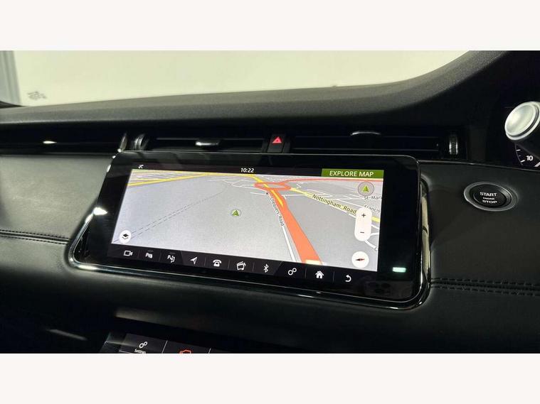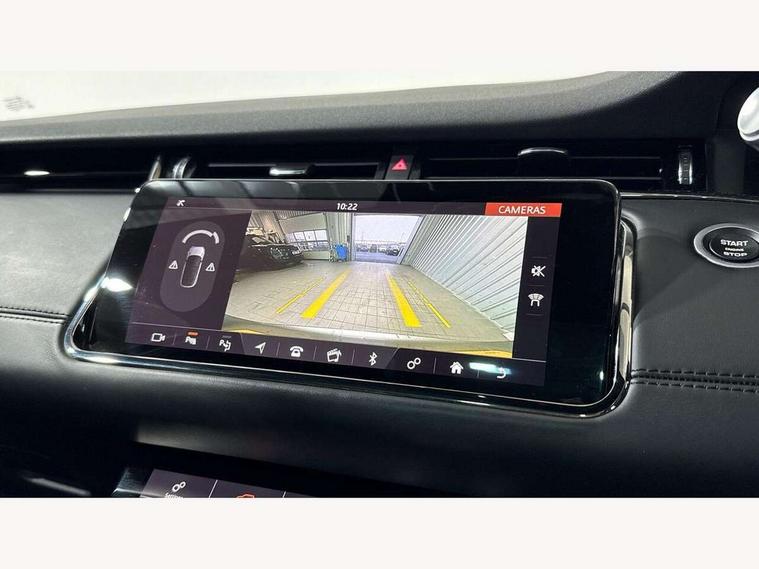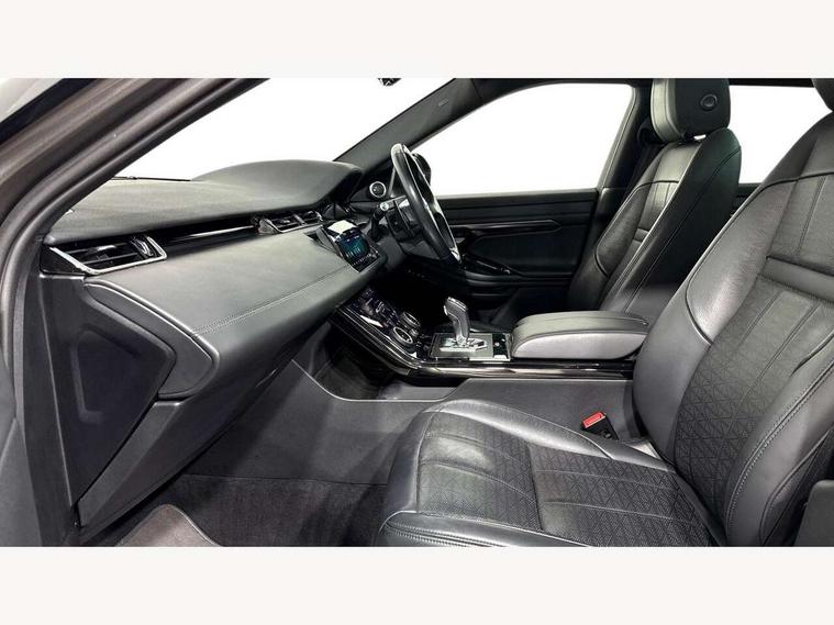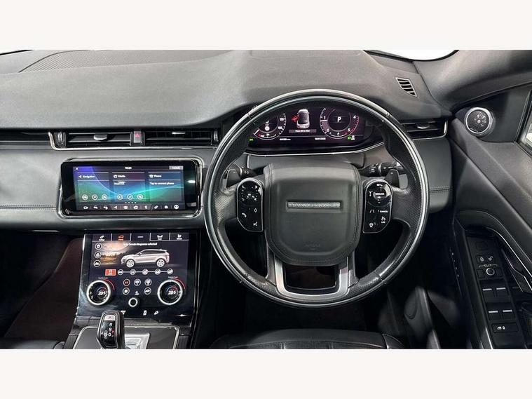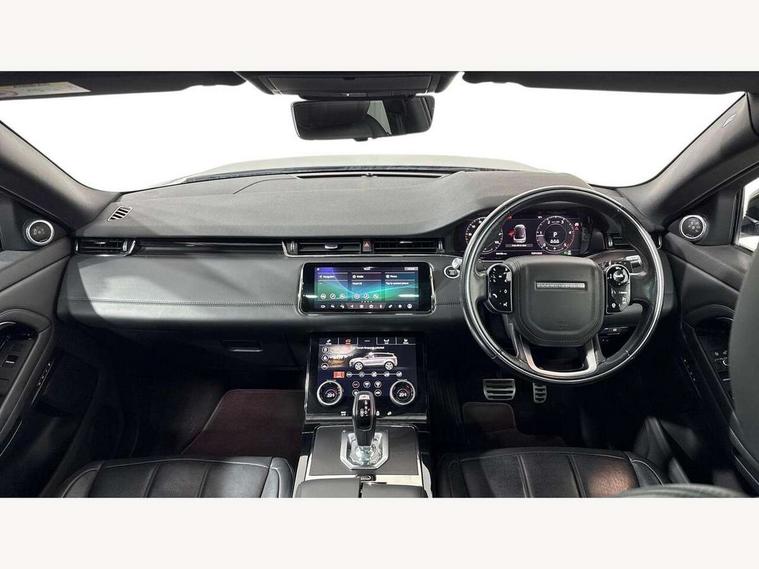 360 degree parking aid, Android Auto, Apple car play, Blind spot assist, Bluetooth connectivity, Brake pad wear indicator warning light, Clear exit monitor, Driver condition monitor, Duo touch pro, Electronic power assisted steering (EPAS), InControl remote, Interactive Driver display instrument cluster, Land Rover InControl apps, Lane keep assist, Navigation pro system, Park assist - Parallel, perpendicular and parking exit, Powered gesture tailgate/boot lid, Pro services and wifi hotspot, Push button starter, Rear traffic monitor, Smart settings, Traffic sign recognition with adaptive speed limiter, Voice control system, All terrain progress control, Efficient Driveline, Passive suspension, Terrain Response 2 Auto, Digital Audio Broadcast radio-DAB, Steering wheel mounted controls, Automatic headlight levelling, ClearSight interior rear view mirror, Electric windows with one touch open/close and anti trap, Evoque and R-Dynamic badge, Flush deployable exterior door handles, Heated rear window with timer, Heated washer jets, Heated windscreen, Power fold, auto-dimming, heated door mirrors with memory and approach lights, Rain sensing windscreen wipers, Rear fog lights, Shadow atlas bonnet and tailgate script, Tailgate spoiler, 40:20:40 split folding rear seats, Black gearshift paddles, Bright metal pedals, Isofix system on outer rear seats, Overhead lighting console, Overhead stowage for sunglasses, Passive front head restraints, Rear air vents, Rear centre headrest, Sunvisors with illuminated vanity mirrors, Twin front cupholders with cover, Twin sliding front centre armrest, 3 rear 3 point seatbelts, Anti-lock braking system (ABS), Customer configurable autolock, DSC - Dynamic Stability Control, Electronic brake force distribution, Electronic parking brake, Electronic traction control, Front and rear seatbelt reminder, High speed emergency braking, Hill descent control, Hill launch assist, Low traction launch, Power operated child locks, Roll stability control, Six airbags - Driver and passenger airbags/driver knee airbag/front side airbag and curtain airbags, Torque vectoring brake, Tyre pressure monitoring system, Alarm, Immobiliser, Intrusion sensor, Keyless entry, Locking wheel nuts,