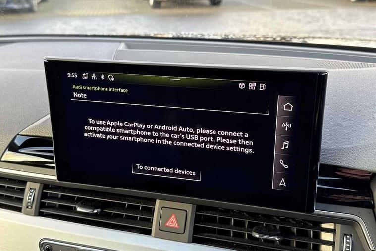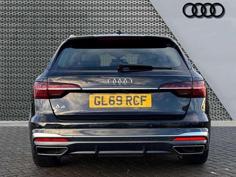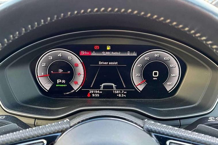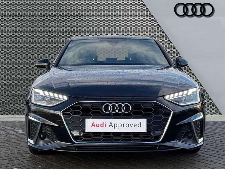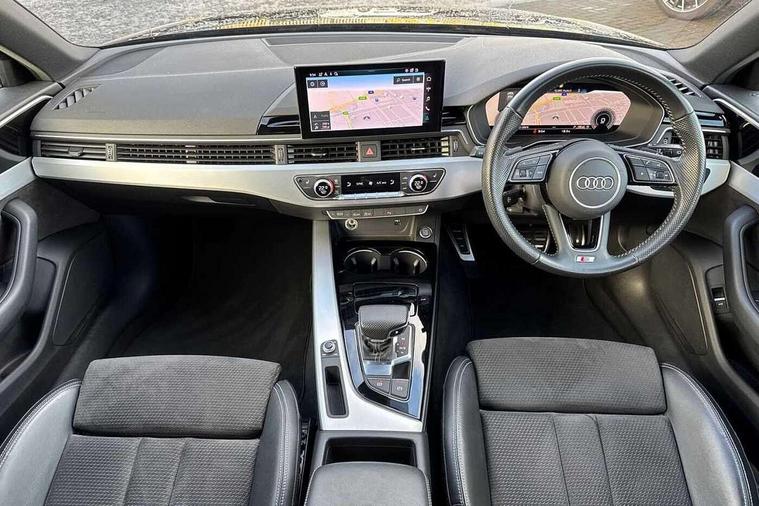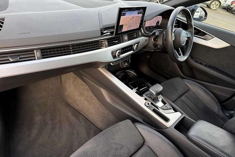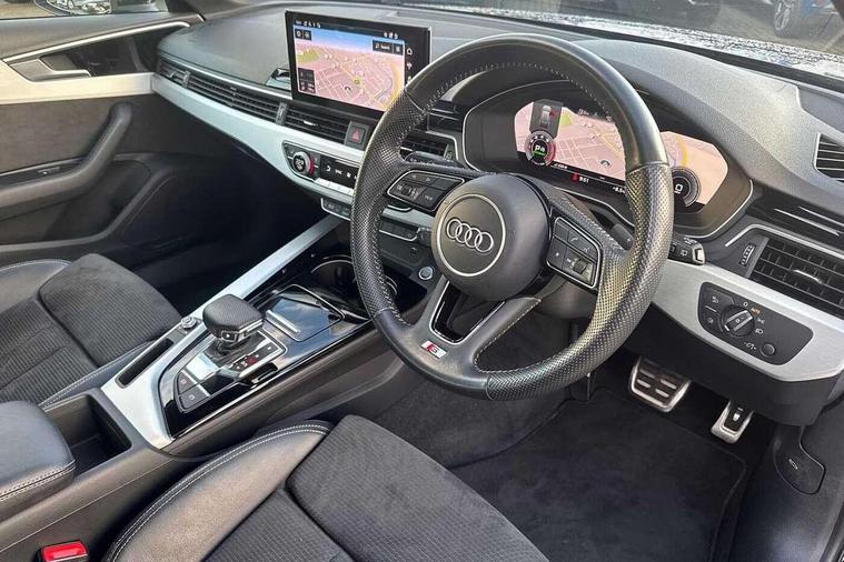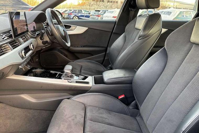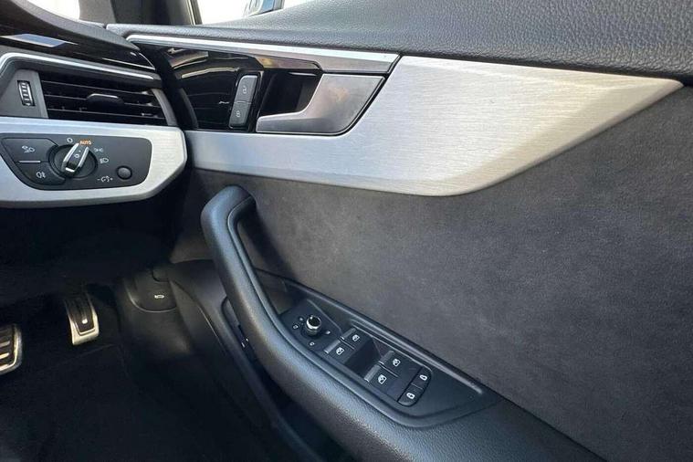 Audi connect safety and service (e-call), Audi drive select, Audi parking system plus with front and rear sensors, Audi smartphone interface, Audi virtual cockpit, Automatic start-stop system with coasting functionality and efficiency programme, Bluetooth interface, Electromechanical power steering, MMI Navigation plus with MMI touch includes 10.1" high resolution colour MMI display, 3D map, Power operated tailgate, Rear view camera, Voice control system, 54 litre fuel tank, Sports suspension lowered by 23mm, 2 USB charging ports, 8 passive loudspeakers, DAB digital radio reception, Aluminium roof rails, Auto dimming rear view mirror, Body colour door handles, Body colour front spoiler lip, Body colour side sill trim, Body coloured door mirrors, Electrically folding auto dimming/adjustable/heated door mirrors with LED side indicators and kerb view function for passenger side, Grained matt black side air inlets with matt aluminium silver inlay, High beam assistant, Honeycomb structure radiator grille in grained matt black, LED headlights with LED rear lights + dynamic rear indicators + headlight adjustment and high beam, turning light + LED daytime running lights, Matt aluminium silver tailpipe trim, New design rear diffuser, Privacy glass, Rain and light sensors, S Line badges on the front wings, S line front and rear bumpers with side skirts, S Line rear diffuser in matt titanium black with trim strip in matt aluminium silver, S Line roof edge spoiler, Windscreen with acoustic glazing, 4 way electric lumbar support for driver and front passenger, 40/20/40 split folding 3 rear seat bench in 3 parts with rear centre armrest, Black cloth headlining, Black perforated leather gearknob, Contrast stitching on seats, steering wheel and gear lever gaiter, Deluxe 3 zone electronic climate control, Door sill trims with aluminium inlay, Electric load area cover, Front and rear head restraints, Front centre armrest, Heated front seats, Illuminated door sill trims with S logo, ISOFIX child seat mounting and top tether, Manual seat adjustment, Stainless steel pedals and foot rest, High gloss package - A4, LED Interior light pack - A4/S4, 3 rear seatbelts, 6 airbags - Driver, front passenger, curtain and side windows, Electronic Stabilisation Control (ESC) including ABS, ASR and EDL, Hill hold assist, Multi collision brake assist, Pop-up bonnet for pedestrian protection, Pre sense city, Seatbelt monitoring, Warning triangle and first aid kit, Anti theft alarm, Anti theft wheel bolts, Keyless Go, Matt brushed aluminium inlays, Tool kit, Tyre repair kit,
