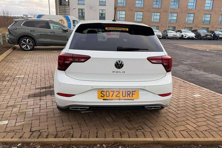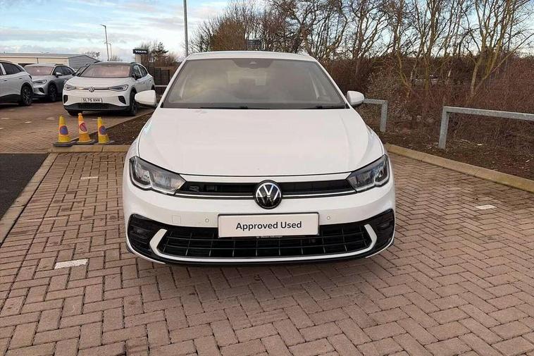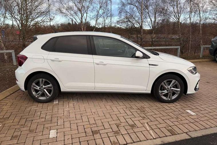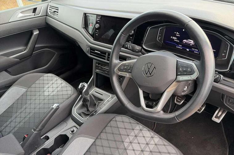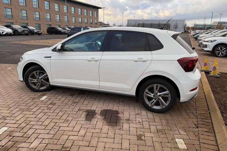 Adaptive cruise control without follow-to-stop and speed limiter, Bluetooth mobile phone interface, Digital Cockpit Pro with 10.25" Display, Driver alert system, Dynamic road sign display, Emergency call service, Power assisted speed sensitive steering, Preparation for We connect and We connect plus, Speedo and rev counter, electronic odometer, trip, service interval display and fuel gauge, Standard rear axle, Travel Assist - Lane keeping system and traffic jam assist, Travel assist including emergency assist, Trip computer, Warning signal and warning light for front and rear seatbelts not fastened, Washer fluid level indicator, Wireless app connect, Front wheel drive, Rear shock absorpion, Start-stop system with battery regeneration (recuperation - energy recovery during braking), DAB Digital radio, Diversity antenna for FM reception, Front and rear 6 speakers, Body colour bumpers, Body colour door handles, Body colour door mirrors, Electric front windows, Front scuff plates with R-Line logo, Heat insulating darkened glass in side and rear windows, Heat insulating glass windscreen, Power folding adjustable/heated exterior mirrors and front passenger exterior mirror lowering function, Rear electric windows, Rear fog light, Rear side wing doors, Rear tinted glass from B-pillar backwards approx 65% tinted, Rear windscreen washer and wiper with interval delay, Third brake light, 12V power socket in centre console, 2 USB-C ports in the front, 2 USB-C charging sockets on the center console in the rear, 3 rear head restraints, 60/40 split folding rear seat and rear seat bench not split, Air care climatronic air conditoning system with active combination filter and 2-zone temperature control, Black roof lining, Ceramique headliner, Chrome plated radiator grille inserts, air vent surrounds and light switch surrounds, Door and side trim panel, Driver and front passenger seat height adjustment, Driver/passenger sunvisors with illuminated vanity mirrors, Front + rear carpet mats, Front centre armrest, Front footwell illumination, Front seat backrest storage pockets, Front sports comfort seats, Handbrake lever handle in leather, Isofix child seat preparation easy-fit (for two outer rear seats, and front passenger seat) compatible with I-size, Karoso artvelours cloth upholstery, Leather trimmed gear knob, LED interior light with switch off delay and dimmer, 2 reading lights front and rear, Luggage compartment cover, Luggage compartment floor, Luggage compartment lighting, Lumbar adjustment for front seats, Multifunction steering wheel, Single front passenger seat, Stainless steel pedals, Standard pedal cluster, Light and sight pack - Polo R-Line/Black Edition, 3 point height adj front seatbelts + pretensioners, 3x3 point rear seatbelts, ABS, Driver and front passenger airbag with front passenger airbag deactivation, Drivers and front passengers safety optimised head restraints, ESC (Electronic stability control) + EDL (Electronic Differntial lock) and ASR (Traction control), Extended and predictive pedestrian/ cyclist protection, Front curtain and side airbags with center airbag, Hill hold control, Manual child lock in rear doors, Single tone horn, Tyre pressure loss indicator, Alarm with interior protection, Anti-theft alarm system with interior monitoring, backup horn, and towing protection, Anti-theft wheel bolts, Electronic engine immobiliser, Chrome applications on rotary light, mirror adjustment, window regulator switches, outlet with frame in black, Dark grey anodised matt decorative inserts in dash and front door panels, Low rolling resistance tyres,