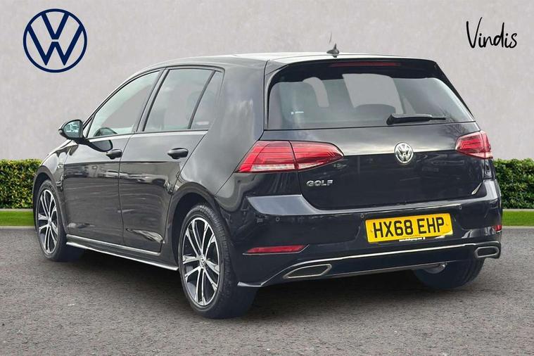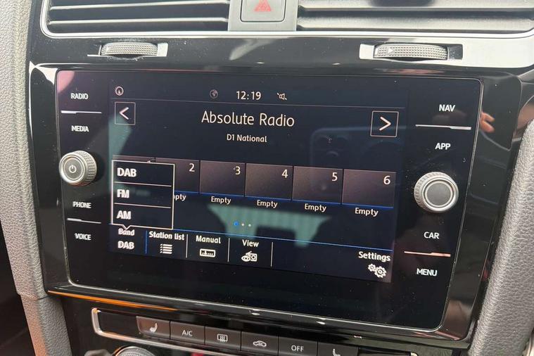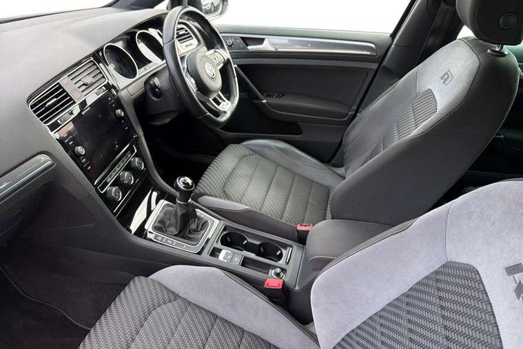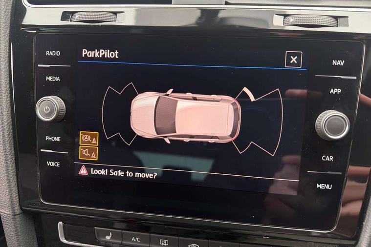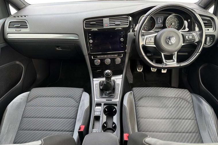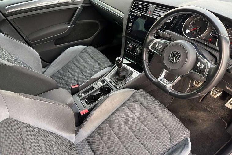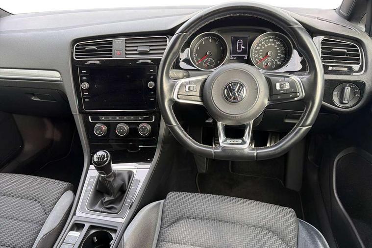 'Lights On' Reminder warning buzzer, 8" colour touch screen, ACC - Adaptive cruise control with front assist, forward collision warning, distance monitoring, city emergency brake and speed limiter, App-Connect, Bluetooth hands free telephone connection, Brake pad wear indicator warning light, Driver alert system, Driver profile selection, Exterior temperature gauge, Front assistant collision mitigation, Instrument cluster in white, Multifunction computer, PAS - speed related, Power assisted speed sensitive electro-mechanical steering, Rev counter, Stop/start system, Trip and service interval display, Ultrasonic front and rear optical and audible parking sensors, Warning buzzer and light for front seatbelts unfastened, Battery regeneration during braking, Lowered sports suspension, XDS electronic differential lock, CD/MP3/WMA, USB and SD card reader, aux-in, Composition media system, DAB Digital radio receiver, Automatic coming/leaving home lighting function and rain sensor, Automatic dimming rear view mirror/rain sensor, Automatic headlights, Black front air intake and radiator grille with chrome insert, Black sports rear diffuser, Body colour bumpers, Body colour door handles, Body colour door mirrors with integrated indicators, Body colour rear roof spoiler, Chrome grille surround, Chrome trapezoidal exhaust, Electric front windows, Electric rear windows, Electrically adjustable and heated door mirrors, Halogen headlights range adjustable via infotainment system with LED daytime running lights, Heated rear windscreen, High level 3rd brake light incorporating LED Technology, LED rear lights, Rain sensor, Rear number plate lights incorporating LED technology, Rear tinted glass 65% light absorbing from B pillar backwards, Rear window aerial, Rear window wash/wipe with intermittent wipe, Reflectors in all doors, Stainless steel door sill protection, Windscreen wipers/ intermittent wipe + 4 position delay, 12V socket in luggage compartment, 3 rear headrests, 60/40 split folding rear seat backrest, Bag hook in luggage compartment, Black headlining, Boot lashing points, Cooled glovebox, Courtesy light delay, Cover for storage compartment in centre, Dust/pollen filter, Front + rear carpet mats, Front centre armrest with storage compartment and two rear air vents, Front reading lights, Front seat back storage pockets, Grab handles front x 2, rear x 2 with integrated coat hooks, Height/reach adjust steering wheel, Illuminated vanity mirrors, Instrument lighting white adjustable panel illumination, Isofix preparation for 2 rear child seats, Leather gear knob and handbrake grip, Load through provision with rear centre armrest and cupholders x2, Luggage compartment cover, Luggage compartment light, Multifunction leather steering wheel with grey stitching leather trimmed gear knob including paddle shift, Overhead storage box, Stainless steel pedals, Storage box in luggage compartment, Storage compartments in doors, Storage compartments in front doors, Storage compartments in rear doors, Sun visors, Three spoke multi-function leather trimmed steering wheel and gearknob, Three spoke steering wheel, Variable boot floor, height adjustable and removable, Ambient lighting pack - Golf, Mirror pack - Golf, 3 rear three point seatbelts, Anti-lock braking system (ABS), Automatic post collision braking system, Child locks on rear doors, Driver/Passenger optimised head restraints, Drivers and Front Passengers airbags with front passengers airbag deactivation switch, Drivers knee airbag, Electronic stability control (ESC) including Electronic differential lock (EDL) and ASR (Traction control) with deactivation via infotainment system, Front and rear curtain airbags, Front seat side impact airbags, Hydraulic Brake Assist (HBA), Pre crash preventive occupant protection, Three point height adjustable front seatbelts with tensioners, Tyre pressure loss indicator, Alarm with interior protection, Electronic engine immobiliser, Remote central locking with 2 remote folding keys, Dark Diamond decorative inserts in dash and door panels, Piano black centre console with aluminium inlay, Steel space saver spare wheel,