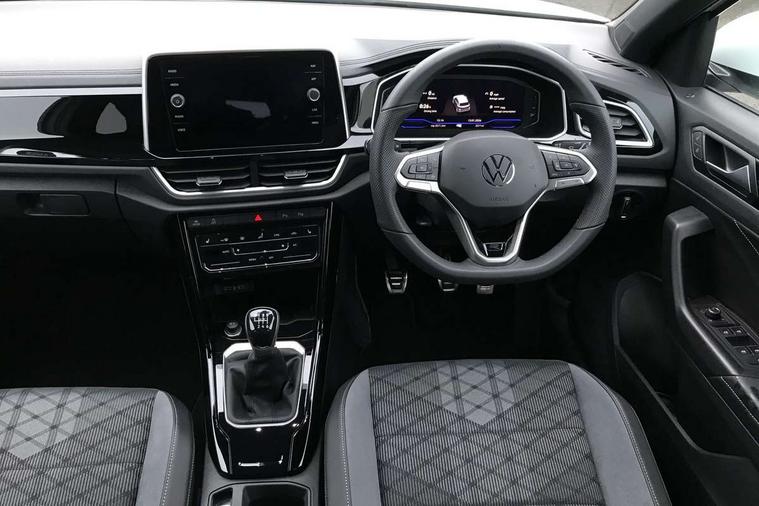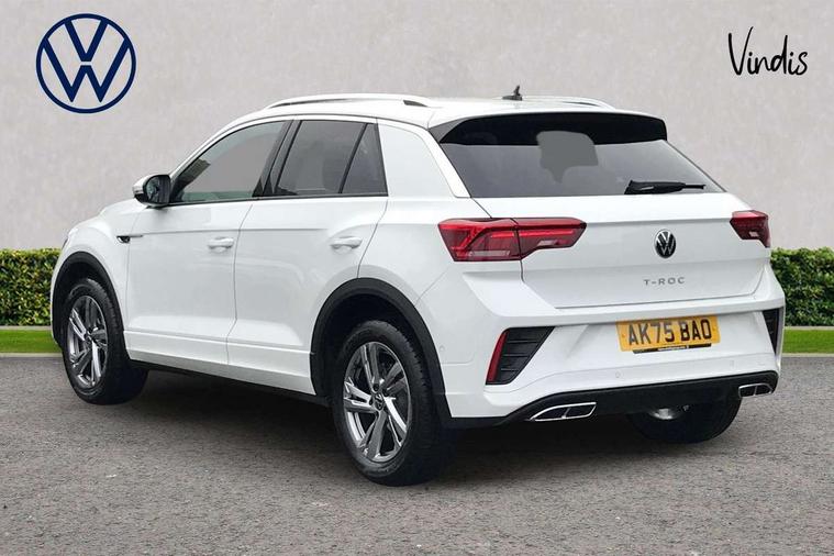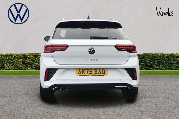 10.25" Digital cockpit pro, Advanced driver attention and drowsiness monitor, Emergency call service, Lane keeping system Lane Assist, Mobile phone interface, Modified key software - reduce switch off time for key status change to Long no motion, Online services, Park assist including front and rear parking sensors, Service interval indicator, Tailgate/trunk lid release from outside, Think blue trainer driver tips and journey analysis, Warning sound and light for front seatbelts unfastened, Wireless app connect, Battery regeneration during braking, Start/stop function with battery regeneration, DAB Digital radio, Diversity antenna for FM reception, Front and rear 6 speakers, Music playback - MP3, WMA and AAC files, Premium USB cable in choice of either Apple or Android smartphone compatibility, SD card slot, Simultaneous pairing of 2 compatible mobile devices, Title and cover art display, We Connect and We Connect Plus functionality, Auto dimming interior rear view mirror, Automatic hazard lights activation under emergency braking, Automatic headlight control with LED separate daytime running lights with coming/leaving home function, Body coloured exterior mirror housings and door handles, Electrically adjustable and heated door mirrors, Extended roof spoiler, Exterior mirrors aspherical on driver side, convex on front passenger side, External USB type C socket and charging sockets, Front windscreen wiper with intermittent wipe and 4 position delay, Heated rear window, LED 3rd brake light, LED rear combination lamps, LED rear number plate lights, Power windows with comfort operation and circuit breaker, Privacy glass for rear side windows and rear window, R-Line design body coloured bumpers, Rain sensor, Rear exhaust tailpipe, Rear fog light on one side and reversing lights on both sides, Rear side wing doors, Rear wash/wipe with intermittent wipe setting, Remote electrically foldable door mirrors, puddle lights and reverse activated passenger's door mirror, 12V power socket in centre console, 3 rear head restraints, 3 seat bench in 2nd row, 4 load lashing points in luggage compartment, Air care climatronic air conditoning system with active combination filter and 2-zone temperature control, Black roof lining, Chrome plated decorative trims, Chrome plated radiator grille inserts, air vent surrounds and light switch surrounds, Door and side trim panel with leatherette insert, Front + rear carpet mats, Front centre armrest, Front cupholders x 2, Front footwell illumination, Front reading light, Front scuff plates with R Line logo, Front seat back storage pockets, Glove compartment door with light, Instrument lighting, white adjustable panel illumination, Interior ambient lighting and surround lighting, Interior light delay, Isofix child seat preparation, Leather gearshift handle, Load-through provision with cup holder when folded down ('Unsplit rear seat bench, split folding backrest, with centre armrest), Luggage compartment lighting, Single front passenger seat, Stainless steel pedals, Storage compartment in left and right luggage area, Storage compartment in rear doors, Storage compartments in driver and front passenger doors, Sunvisors with illuminated vanity mirrors, Variable boot floor, height adjustable and removable, Driver assistance pack without proactive passenger protection - T-Roc, 3 point height adj front seatbelts + pretensioners, 3 point seatbelts in outer rear with ECE label, ABS, Child locks on rear doors, City emergency braking and pedestrian monitoring, Driver and front passenger airbag with front passenger airbag deactivation, Driver and front passenger safety-optimised head restraints, Drivers seatbelt reminder, Electronic parking brake, Electronic Stability Control (ESC) inc EDL (Electronic Differential Lock) and ASR (Traction Control), Front and rear passengers curtain airbag system including front side airbags, Hill start assist, Predictive pedestrian protection, Rear disc brakes, Two tone horn, Tyre pressure loss indicator, Volkswagen roadside assistance, Piano black decorative inserts in dashboard and front door trim panels, Trims for alloy wheels,
