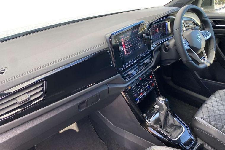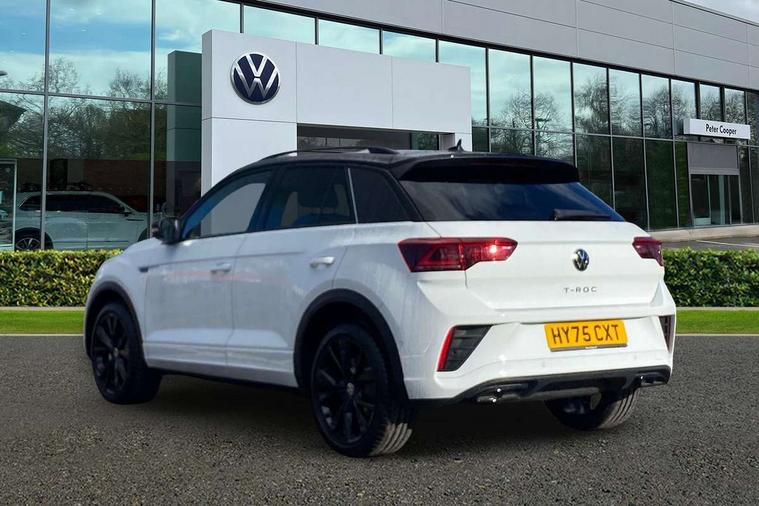 10.25" Digital cockpit pro, Advanced driver attention and drowsiness monitor, Emergency call service, Lane keeping system Lane Assist, Mobile phone interface, Modified key software - reduce switch off time for key status change to Long no motion, Online services, Park assist including front and rear parking sensors, Power assisted speed sensitive steering, Service interval indicator, Tailgate/trunk lid release from outside, Think blue trainer driver tips and journey analysis, Warning sound and light for front seatbelts unfastened, Wireless app connect, Battery regeneration during braking, Rear shock absorption chassis with increased ride height, Start/stop function with battery regeneration, DAB Digital radio, Diversity antenna for FM reception, Front and rear 6 speakers, Music playback - MP3, WMA and AAC files, Premium USB cable in choice of either Apple or Android smartphone compatibility, SD card slot, Simultaneous pairing of 2 compatible mobile devices, Title and cover art display, We Connect and We Connect Plus functionality, Auto dimming interior rear view mirror, Automatic hazard lights activation under emergency braking, Automatic headlight control with LED separate daytime running lights with coming/leaving home function, Dynamic cornering light, Electrically adjustable and heated door mirrors, Extended roof spoiler, Exterior mirrors aspherical on driver side, convex on front passenger side, External USB type C socket and charging sockets, Front windscreen wiper with intermittent wipe and 4 position delay, Heated rear window, Illuminated front grille, IQ LED matrix headlights, LED 3rd brake light, LED rear number plate lights, LED rear tail lights with dynamic turn signal, Light mode for poor weather, rain, fog or snow, Power windows with comfort operation and circuit breaker, R-Line design body coloured bumpers, Rain sensor, Rear exhaust tailpipe, Rear fog light on one side and reversing lights on both sides, Rear side wing doors, Rear wash/wipe with intermittent wipe setting, Remote electrically foldable door mirrors, puddle lights and reverse activated passenger's door mirror, 12V power socket in centre console, 3 rear head restraints, 3 seat bench in 2nd row, 4 load lashing points in luggage compartment, Air care climatronic air conditoning system with active combination filter and 2-zone temperature control, Artvelours cloth upholstery, Black roof lining, Chrome plated radiator grille inserts, air vent surrounds and light switch surrounds, Door and side trim panel with leatherette insert, Drawer under drivers seat, Driver seat height adjust, Driver's seat lumbar support, Front + rear carpet mats, Front centre armrest, Front comfort sports seats, Front cupholders x 2, Front footwell illumination, Front reading light, Front scuff plates with R Line logo, Front seat back storage pockets, Glove compartment door with light, Instrument lighting, white adjustable panel illumination, Interior ambient lighting and surround lighting, Interior light delay, Isofix child seat preparation, Leather gearshift handle, Leather wrapped multifunction steering wheel with paddle shift, Load-through provision with cup holder when folded down ('Unsplit rear seat bench, split folding backrest, with centre armrest), Luggage compartment lighting, Non-folding front passenger seat backrest, Passenger seat height adjuster, Passenger seat lumbar support, Single front passenger seat, Stainless steel pedals, Storage compartment in left and right luggage area, Storage compartment in rear doors, Storage compartments in driver and front passenger doors, Sunvisors with illuminated vanity mirrors, Variable boot floor, height adjustable and removable, Winter pack without heated windscreen washer jets - T-Roc, 3 point height adj front seatbelts + pretensioners, 3 point seatbelts in outer rear with ECE label, ABS, Child locks on rear doors, City emergency braking and pedestrian monitoring, Driver and front passenger airbag with front passenger airbag deactivation, Driver and front passenger safety-optimised head restraints, Drivers seatbelt reminder, Electronic parking brake, Electronic Stability Control (ESC) inc EDL (Electronic Differential Lock) and ASR (Traction Control), Front and rear passengers curtain airbag system including front side airbags, Front disc brakes, Hill start assist, Predictive pedestrian protection, Rear disc brakes, Two tone horn, Tyre pressure loss indicator, Volkswagen roadside assistance, Tool kit, Trims for alloy wheels, Tyre mobility kit including compressor and sealing foam,