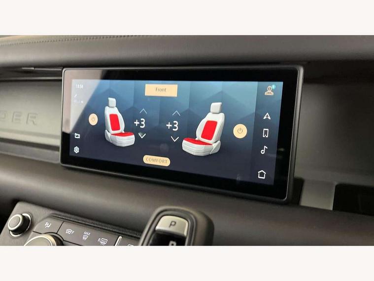 360 degree parking aid, 3D Surround Camera with 360 View, 180 Rear View, Front Traffic Detection, Forward Vehicle Guidance, Tow Hitch Assist and clear sight Ground View, Adaptive cruise control, Android Auto, Apple CarPlay, Assisted tailgate with soft close, Blind spot assist, Bluetooth system, Brake pad wear indicator, Clear exit monitor, Click and go integrated base unit, Connected navigation pro, Driver condition monitor, Electric power assisted steering (EPAS), Interactive driver display, Lane keep assist, Push button start, Rear collision monitor, Rear traffic monitor, Traffic sign recognition with adaptive speed limiter, Trip computer, Wade Sensing, 7 kW onboard charger, Adaptive dynamics, Electronic air suspension, DAB Radio (Digital Audio Broadcasting), Pivi pro connected, Automatic headlight levelling, Automatic headlights, Black exposed rear recovery eyes, Centre high mounted stop light, Electric heated/power fold door mirrors with approach lights and auto dimming driver side, Electric windows with one touch open/close and anti-trap, Follow me home lighting, Front fog lights, Heated rear window with timer, Heated windscreen, Illuminated metal treadplates with brand name script, LED tail lights, Matrix LED headlights with signature DRL, P400e badge, Privacy glass, Puddle lights, Rain sensing windscreen wipers, Rear fog lights, Solar attenuating windscreen, Trailer stability assist, X-Dynamic badge, 12V power socket in loadspace, 14 way heated and cooled electric adjustable memory front seats with 4 way manual headrests, Air quality sensor, Cabin air ionisation, Cabin lighting, Carpet mats, Durable rubber cabin flooring, Durable rubber loadspace flooring, Electric reach + rake adjustable steering column, Extended leather upgrade, Footwell lights, Front passenger isofix child seat attachment, Heated steering wheel, Leather gearshift, Leather steering wheel, Loadspace cover, Loadspace Hook, Multifunction steering wheel, Overhead stowage for sunglasses, Rear headrests, Rear ISOFIX, Rear reading lights, Storage glovebox, Sunvisors with illuminated vanity mirrors, Three zone climate control, Twin front cupholders with cover, Windsor leather and Robustek upholstery, Online pack with data plan - Defender, X-Dynamic exterior pack - Defender, 5 x 3 point seatbelts, ABS, Brake hold function, Cornering brake control (CBC), Customer configurable autolock, Driver and passenger airbags, DSC - Dynamic Stability Control, EBD - Electronic brakeforce distribution, Electric parking brake (EPB), Emergency braking, ESP + traction control, Front airbags with passenger seat occupant detector, HDC - Hill descent control, Hill launch assist, Low traction launch, Power operated child locks, Remote for (e-Call, Optimised assistance call, InControl app, Climate, beep and flash and door), RSC - Roll stability control, Seat belt reminder, TPMS (Tyre pressure monitoring system), Alarm, Immobiliser, Intrusion sensor, Keyless entry and go, Locking wheel nuts,