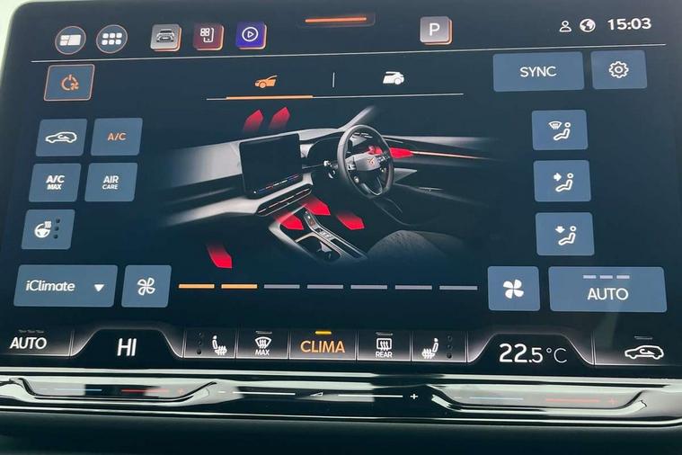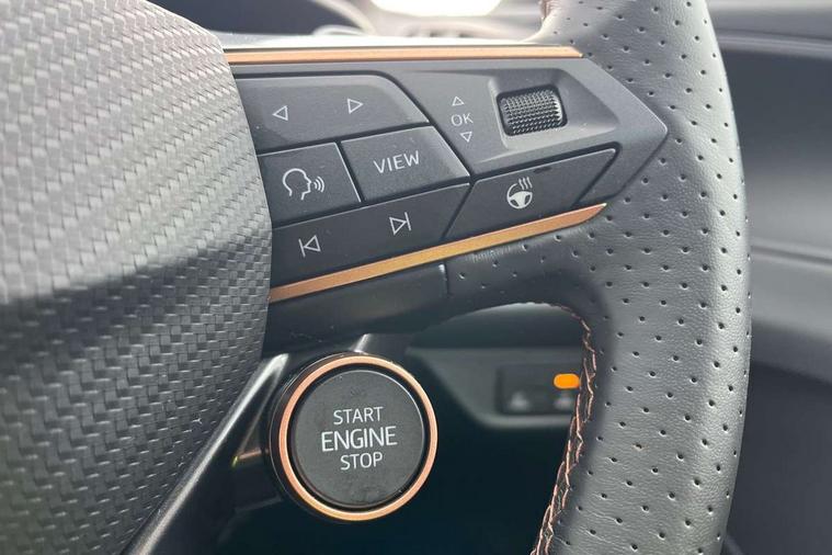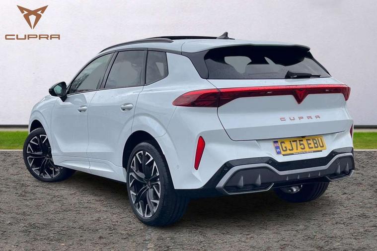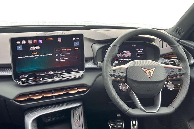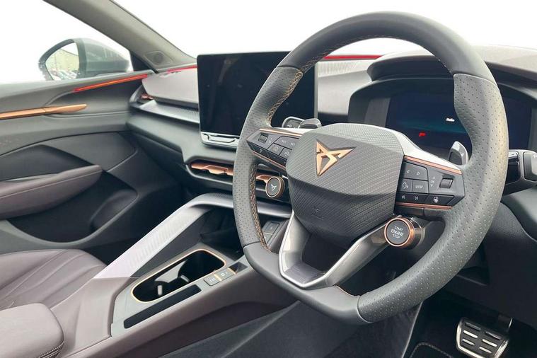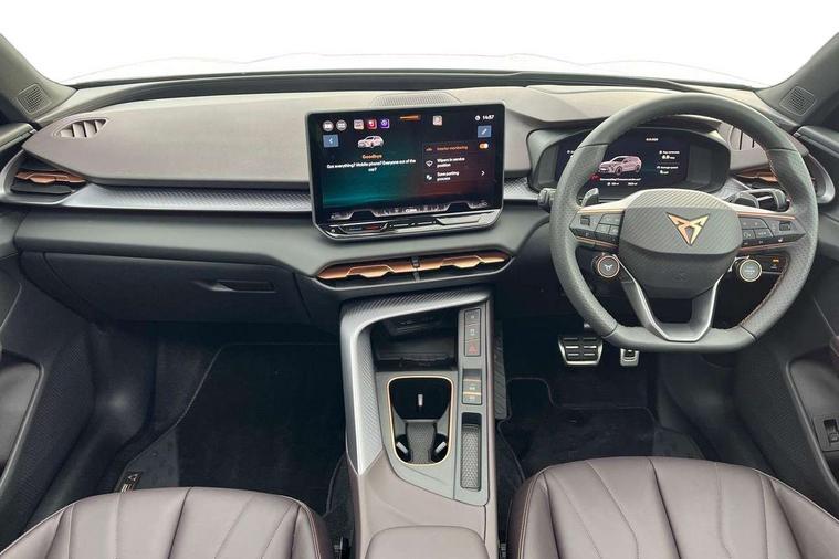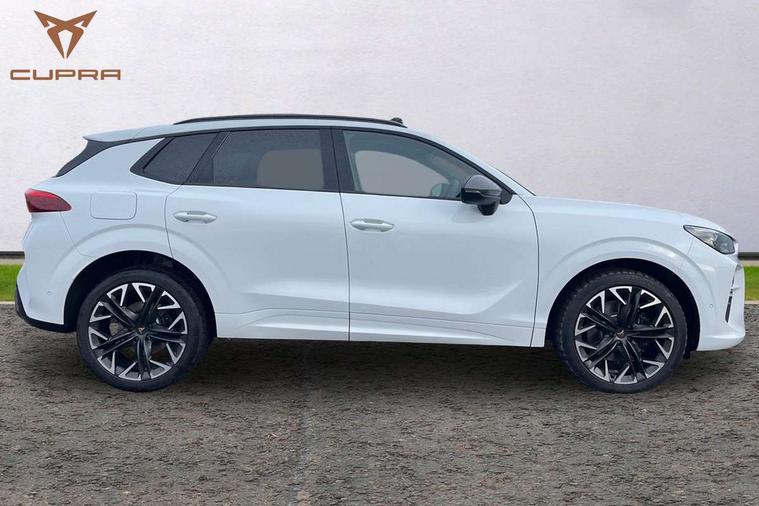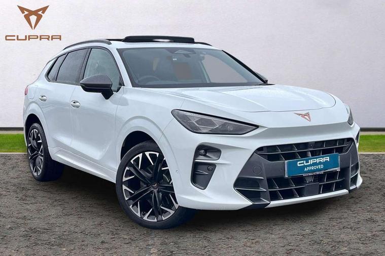 10.25" digital cockpit and configurable dashboard, Adaptive cruise control with follow-to-stop and speed limiter, Advanced driver alert system, Advanced lane assist with semi-automatic vehicle control in a medical emergency and traffic jam assist, Driving profile selection (DCC- Comfort, performance, CUPRA, Individual, Dynamic road sign display, E-call, Electric tailgate with virtual pedal, Emergency steering support with turn assist, Front and rear parking sensors, Front assist (Forward collision warning with automatic braking) with multifunction camera and front cross traffic assist, Head up Display, Intelligent park assist, Media system with Nav - 12.9" touch display, voice control, full link phone (wired/wireless), DAB and Steering wheel mounted controls, Rear traffic assist, Side and exit assist, Speed sensitive power steering, Start/stop system with regenerative braking, Top view camera (front camera, rear camera, 2 side cameras), Wireless phone charger, Adaptive chassis control with a 2-valve shock absorber, Auto dimming rear view mirror, Black roof rails, CUPRA 3D rear lights with ceremony & swiping indicator and illuminated logo, Dark tinted rear windows, Daytime running lights with automatic headlight control and Coming and Leaving home function, Door mirrors with memory function and lowing function on passenger mirror, Electric front/rear windows, Electrically adjustable, heated and folding door mirrors, Front fog lamps with cornering function, Heat reflecting windscreen, High beam assist, Rain sensing wipers, Rear fog light on one side, back up light on both sides, Rear side wing doors, Rear wash/wipe, Third brake light, Welcome lights (within exterior mirror housing), 3 seat bench in 2nd row, Black roof lining, Cupra sports pedals, Driver seat memory function, Electrically adjustable front seats including lumbar support, Four x USB Type C ports (2 in front and 2 in rear), Front and rear head restraints, Front and rear reading lights X 4, Front centre armrest, Heated front seats, Heated leather wrapped multi function sports steering wheel with tiptronic, Illuminated interior front door sills, Isofix, Leather upholstery, Operating voltage 12V, Single front passenger seat, Smart wraparound interior lighting, Sunvisors with illuminated mirror, Three zone climate control with control panel in rear, Unsplit rear seat bench, split folding backrest, with centre armrest, Variable luggage/load compartment floor, Pure performance pack - Terramar, 3 point seatbelts in front with pretensioner and electric height adjustment, 3 point seatbelts on all rear seats, Brake control system - ESC and brake booster, Child proof door locks, Driver and front passenger airbags, Electronic parking brake, Front and rear disc brakes, Front interaction airbag, Front passenger airbag deactivation switch, Front side airbags with curtain airbags, Pre-crash front and rear seat belt tensioner, window closure and hazard lights, Tyre pressure monitoring system, Visual and acoustic seat belt reminder, electric contact in front and rear, Anti theft alarm, Keyless locking and starting system with keyless access, Locking wheel bolts, Black decorative trims, Chrome interior detailing, Performance tyres in polmer coating, Tool kit,