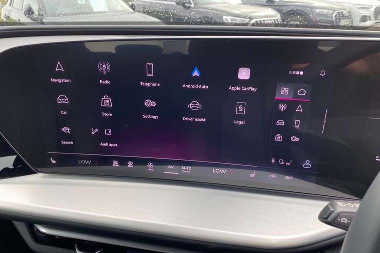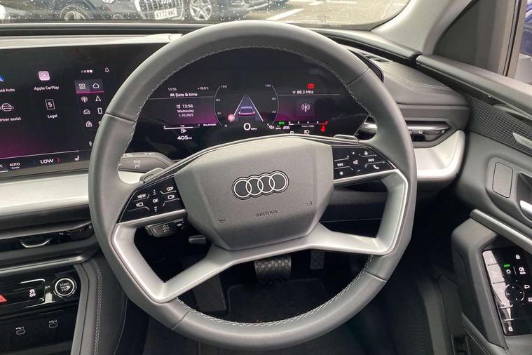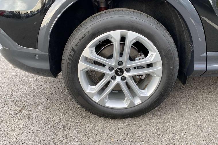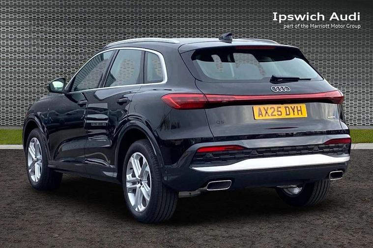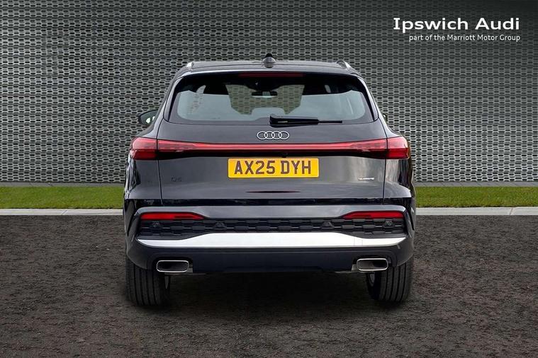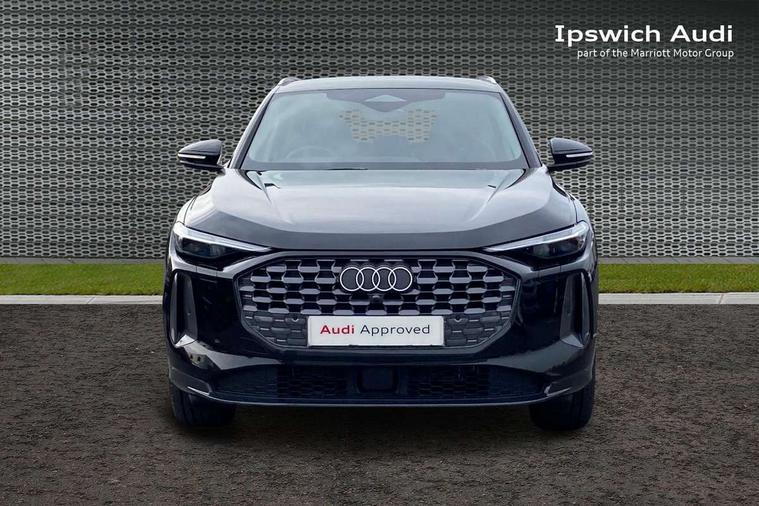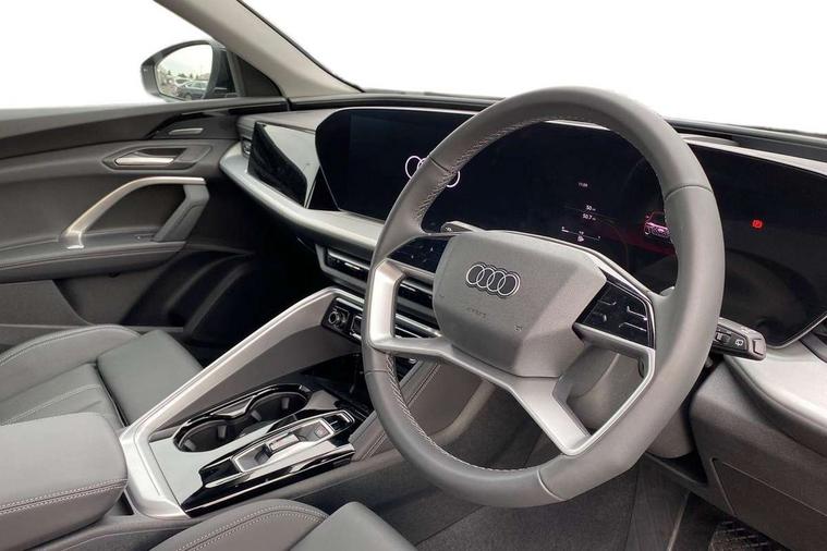 Adaptive cruise control, Advanced driver attention alert, Audi application store, Audi connect emergency call and service, Audi drive select, Audi smartphone interface, Audi virtual cockpit plus with 11.9" OLED colour display, Camera based traffic sign recognition, Fatigue monitor, Front cross traffic intersection assist, Lane departure warning system, MMI navigation plus with high resolution 14.5" OLED touchscreen colour display, Park assist plus, Parking system plus with 360 display, PAS, Reversing camera, Swerve assist and turn assist, Traffic sign based speed limiter, Comfort suspension, 2 USB-C ports in both the front and rear, Audi sound system impressive sound with 8 loudspeakers including centre speaker and subwoofer, 6-channel amplifier with a total output of 180 watts, DAB Digital radio, Smartphone compartment with wireless charging, Aluminium roof rails, Auto dimming rear view mirror, Body coloured door mirrors, Coming/leaving home lighting function, Contrast bumpers in Volcano grey metallic paint finish, Electrically adjustable heated and folding + automatically dimming exterior mirrors, Front and rear electric windows, Front door sill trims with aluminium inlays, illuminated, Headlight cleaning system, Heated rear window, High beam assist, High gloss window surrounds, LED headlights plus incl. digital DRL, dynamic coming and leaving home function with turning/all weather/motorway/manouevring and intersection lights, LED rear lights pro incl. dynamic rear indicators and illuminated light strip with animated coming and leaving home function, LED third brake light, Logo projection light in exterior mirrors, Rear and side windows with heat insulating glass, Rear side wing doors, Rear wash/wipe, Towbar preparation, Windscreen with acoustic glazing, 3 rear head restraints, 3 seat bench in 2nd row, 40:20:40 split folding rear seat bench with centre armrest and cup holders, Comfort centre armrest front, Deluxe 3 zone electronic climate control, Front and rear floor mats, Front seats with manual adjustment for position and 4-way electric lumbar support, Front sport seats with integrated head restraints, Heated front seats, i-Size child seat mounting on the front passenger side and outer rear seats, i-Size and top tether on the outer rear seats, Interior trim in aluminium look, Luggage compartment lid, electrically opening and closing, Manual steering column adjustment, Rock grey cloth headlining, Single front passenger seat, Softwrap in leatherette, Twin leather upholstery, Twin spoke leather steering wheel with multi-function buttons with touch control, shift paddles and trim in chrome look, Ambient lighting package plus - Q5, 3x3 point rear seatbelts, ABS, Acoustic vehicle alerting system, Driver and front passenger airbag with passenger airbag deactivation, Electric child safety locks, First aid kit with warning triangle and high visibility vests, Front emergency brake assist, Front side airbags with head airbag system and front interaction airbag, Hill hold assist, Rear seat occupant reminder, Tyre pressure loss indicator, Anti theft alarm, Anti-theft wheel bolts, Remote control key with SAFELOCK and keyless go, Accent surfaces and control buttons in gloss black, Black dashboard with contrast stitching, Matt brushed aluminium inlays, Steel grey seat stitching, Upper and lower interior elements in artificial leather, Tyre repair kit,
