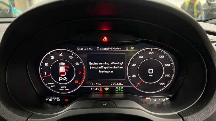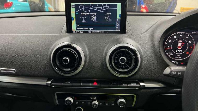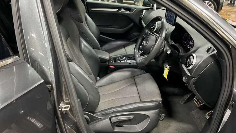 Audi drive select, Audi smartphone interface, Automatic start/stop system, Colour driver's information system display, Electro - mechanical power assisted steering, Mobile telephone preparation - bluetooth interface, SD card based MMI navigation, Service interval indicator, Speed limit display, Voice control system, Voice recognition for navigation system, Sports suspension, 2 USB interfaces and Aux-In jack, Audi music interface, CD player, DAB Digital radio, MMI radio plus with 7" colour MMI screen and MMI controller, Online entertainment, Aluminium window trim, Auto dimming interior rear view mirror, Body colour door mirrors, Chrome exhaust tailpipes, Electric front windows, Electric rear windows, Electrically adjustable and heated door mirrors with integrated LED side indicators, Heated windscreen washer jets, LED daytime running lights, Light and rain sensors, Matt black radiator grille, Rear wiper, S line badges on front wings, S Line body styling with front & rear bumpers and side skirts, radiator grille and rear diffuser insert, roof spoiler, Sport specific side air inlet grille and diffuser insert, 3 adjustable rear headrests, 60/40 split folding rear seat, Adjustable front centre armrest, Black cloth headlining, Dual zone electronic climate control, Flat bottom 3 spoke multifunction leather sport steering wheel with gear-shift paddles plus S badging and grips in perforated leather, Front and rear interior lights with delay, Front/rear floor mats, Height and reach adjustable steering wheel, Illuminated door sill trims with S logo, Isofix child seat preparation for front passenger/outer rear seats inc passenger airbag deactivation including top tether, Lashing point in luggage compartment, Manual height adjustable front seats, Stainless steel pedals, Storage compartments in doors side trims, centre console and under front drivers seat, LED interior light pack - A3/RS3, Non smoking pack - A3, Storage and luggage pack - A3/RS3, 3 point seatbelts on all seats, ABS/EBD, Active bonnet, Active front headrests, Airbags - front driver/passenger, front & rear side, curtain, drivers knee, ASR, EDL, Electromechanical parking brake, ESC - Electronic Stability Control + traction control, Front passenger airbag deactivation, Hill hold assist, Manual rear child locks, Multi-Collision braking, Seatbelt warning, Tyre pressure warning, Warning triangle and first aid kit, Anti theft alarm, Anti-theft wheel bolts, Remote control central locking, Thatcham category 1 alarm + immobiliser, Aluminium air vent surrounds, Aluminium trim elements, Matt brushed aluminium inlays, Tool kit, Tyre repair kit,