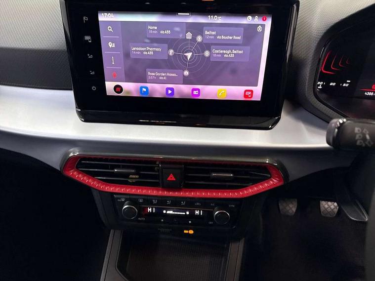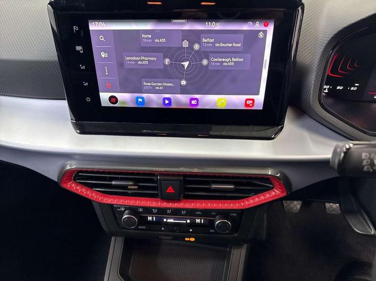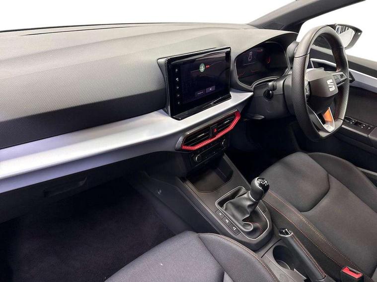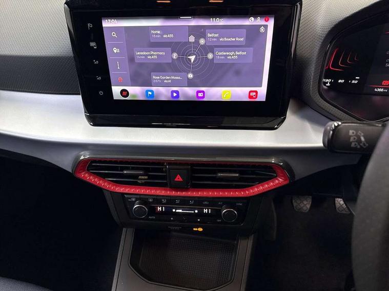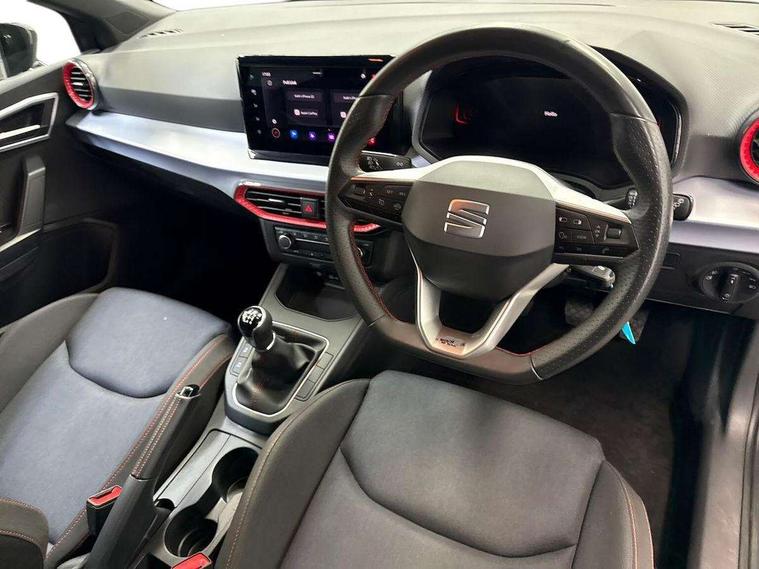 'Lights On' Reminder warning buzzer, 8" Digital cockpit, 9.2" touchscreen navigation system with type C USB socket, Voice control and DAB/AM/FM radio, Auto start and stop system, Bluetooth audio streaming with handsfree system, Digital clock, E-call, Full link smartphone integration with mirror link, wireless apple carplay, Google android auto + USB Type C cable for apple and android devices, Lane assist, Low fuel warning light, Outside temperature gauge, Power Steering, Rear parking sensor, Seat connect plus with safety, service, remote and online, SEAT drive profiles and ECO function, SEAT logo boot release, Speed limiter, Traffic sign recognition, Trip computer, Sports suspension, 6 speakers, Auxiliary input socket, Radio/MP3 player, SD card slot, Steering wheel mounted controls, Anti theft roof antenna, Auto dimming rear view mirror, Automatic rain sensing wipers, Black door mirror caps, Body colour bumpers, Body colour door handles, Brilliant black window surrounds, Dark tinted rear windows, Electric adjustable/heated/folding door mirrors, Electric front windows, Electric headlight adjustment, Electric rear windows, Front/rear fog lights, FULL LED automatic headlights with dynamic headlight range control, coming and leaving home, LED daytime running lights, LED 3rd brake light, LED tail lights, Rear roof spoiler with FR twin exhausts, Rear side wing doors, Rear wiper, 3 seat bench in 2nd row, 60/40 split folding rear seat, Ambient interior lighting, Chrome detailing and black headlining, Cloth upholstery, Dual zone climate control with combination filter, Front courtesy lights, Front cupholders x 2, Front reading lights, Gear shift indicator, Glovebox, Height adjustable front and rear headrests (five), Height adjustable front seats, Height/reach adjust steering wheel, Illuminated air vent surrounds, Illuminated boot, Instrument lighting with brightness control, Isofix, Leather multifunction flat bottomed sports steering wheel, Passenger sunvisor, Single front passenger seat, Sports seats, Sunvisors with mirror and driver side card holder, Safety and driving pack (S) - Ibiza, 3 point seatbelts on all 3 rear seats, ABS, Active front headrests, Child locks on rear doors, Electronic stability control, Energy recovery system, Front driver and passenger side airbags with curtain airbag and front passenger airbag deactivation, Hill hold control, Multi-Collision braking, Seat belt reminder for front and rear seats, Tiredness recognition system, Tyre pressure monitoring system, Locking wheel bolts, Perimeter alarm and interior monitoring with backup horn and tow away protection, Remote central locking + deadlocks, 17" Alloy wheels in Brilliant silver,