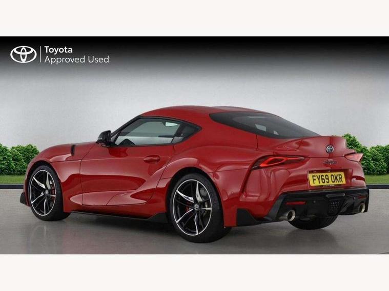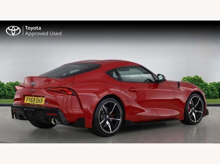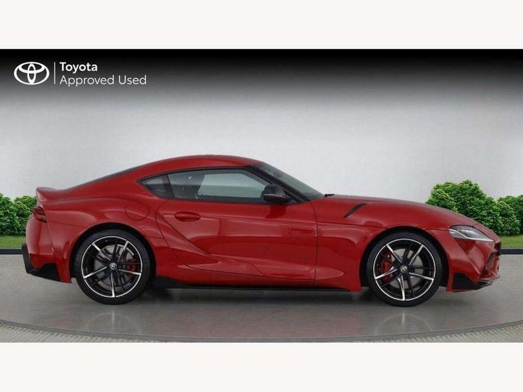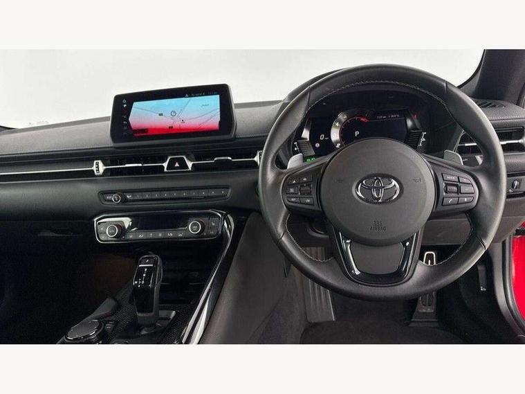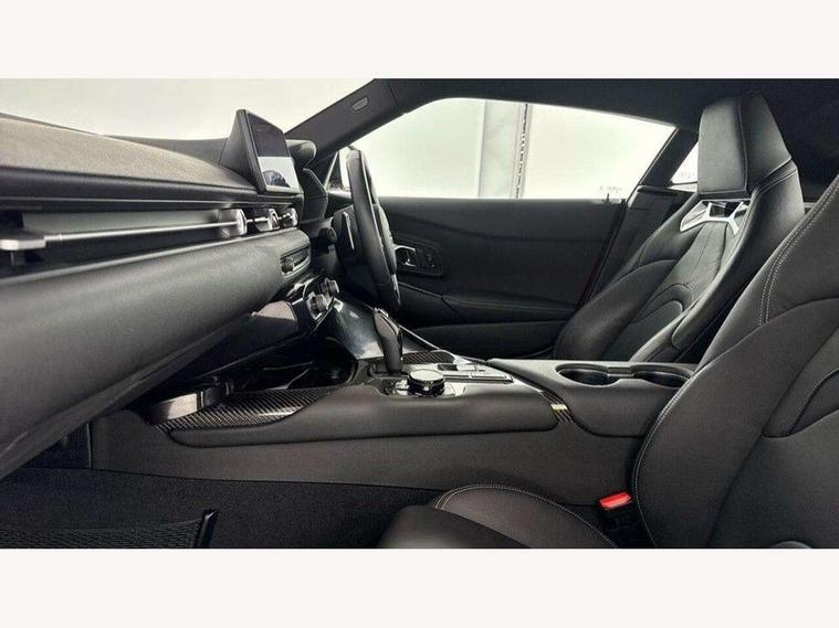 8.8" multimedia control screen Navigation system with connected services, Blind spot monitor, Bluetooth connectivity, E-call, Head up Display, PAS, Push button start, Rear cross traffic alert, Rear view camera, Smartphone integration with Apple CarPlay, Toyota Supra Safety+ system with pre-collision, adaptive cruise control, lane departure alert with steering assist, Wireless charger, Active sports differential, Adaptive variable suspension, JBL premium sound system with 12 speakers, USB port, Adaptive LED Headlights, Auto dimming inside rear view mirror, LED daytime running lamp, LED rear lights, Power adjustable auto dimming door mirrors, Rain sensing wipers, Dual zone automatic air conditioning, Electric adjustable heated leather sports seats with memory, Front headrests, Leather steering wheel, Leather upholstery, Tyre pressure monitoring system, Alarm, Smart entry, 19" Forged alloy wheels,