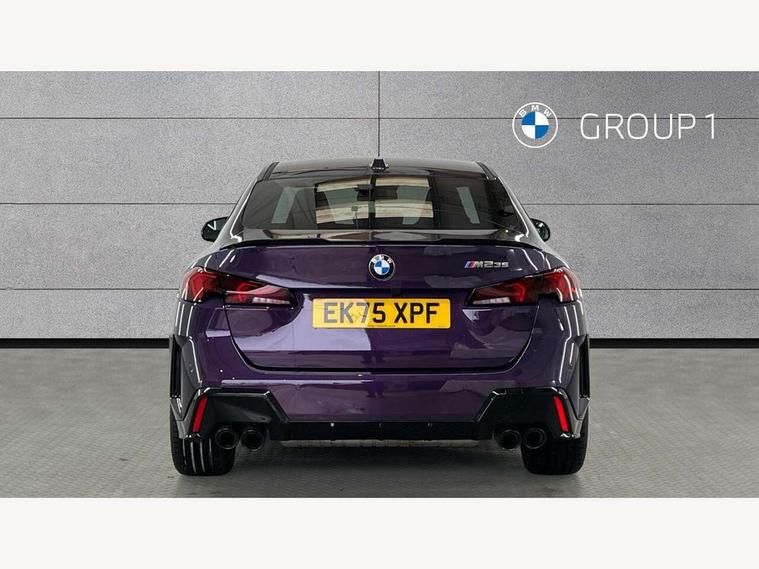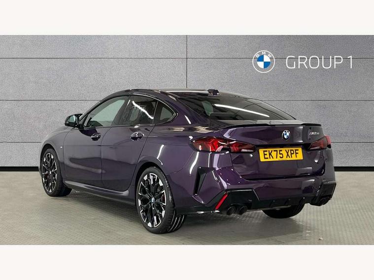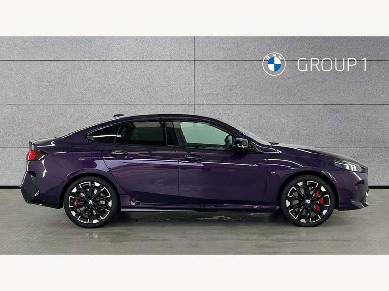 3 driving modes Normal, Eco, Sport, Active guard plus, Attentiveness assist, Auto start-stop, Bluetooth / WiFi interface for wireless connection of mobile terminal devices and audio streaming, BMW ConnectedDrive online services, BMW Intelligent Personal Assistant, BMW Live cockpit plus with widescreen display 10.25" instrument cluster and 10.7" control display, BMW Online services, BMW operating system with 7.0 mid interface, BMW Teleservices, Check Control warning system for monitoring of lights and door/luggage compartment open warning, Cruise control with braking function, Electric power steering, Front and rear parking sensors, Gearshift time display in manual mode, Integrated navigation data with map data via USB +features such as 3D landmarks and micro city models, Integrated owners handbook, Intelligent voice assistant, Lane departure warning system, Oil sensor for level and grade, On board computer - average speed+fuel consumption, service interval, clock/date, odometer/trip meter, outside temperature display and ice warning, Optimum shift indicator, Park assist including reversing assistant, lateral parking aid and reversing assist camera, Personal e-SIM, Personal Profile, Pull away assistant, Speed limit Info including no-overtaking indicator, Speed limiting function, Sporty fast gear shifting in sport mode, 49 litre fuel tank, Automatic transmission with gearshift paddles, Drive Performance Control, Electronic differential lock, M Adaptive suspension, Performance Control, Petrol Particulate Filter, VALVETRONIC engine management, 2x USB Type C ports (for charging and data transfer), 4G LTE Connectivity with hard wied 4G network sim card, DAB Digital radio, HiFi Loudspeaker system Harman Kardon with 12 speakers, Auto wipers, Automatic headlight beam throw control, Automatically dimming rear view mirror, Body colour door handles, Body colour mirror caps, Direction indicator side lights integrated exterior mirrors, Exterior M sport design elements, Folding side mirrors with auto dimming/folding wing mirrors with auto dimming, Follow me home headlights, Front and rear bumper panel with M specific design, in body colour with inserts in black high gloss, Heated door mirrors, High level third brake light, Key with M identification, LED daytime running lights, LED eyebrow turn indicators, M identification on the sides, M rear boot spoiler, Rain sensor with automatic headlight activation, Rear boot, Rear fog lights, Rear side wing doors, Rear window heating, Roof trim strip in vehicle colour, Shark fin antenna, Side sill covers with M specific design in body colour, Sun protection glass, Trailer stabilisation logic, Visible VIN plate, Welcome lighting, 12V power socket in centre console, 2 cupholders in front centre console, 3 rear seat head restraints, 3 seat bench in 2nd row, 3 spoke sports black walknappa leather steering, decorative stitch in Mcolour, shaped thumb rest, highlited trim pearl chrome detailing, specific M Badge, Anthracite headlining, Child seat ISOFIX attachment for two outer rear seats and front passenger seat with anchorage points, Conditioned based service, Driver and front passenger backrest net on rear, Driver and front passenger seat heating, Four grab handles integrated in roof lining, Front and rear door pockets including bottle trays, Front and rear side armrest integrated into door trim, Front head restraints, Height adjustable front head restraints, Luggage compartment lighting, Rear seat backrest with manual 60:40 split folding with 3 top tether clips integrated on rear of seat panels, Single front passenger seat, Stainless steel pedal covers, Steering 12-o Clock centre mark in red and paddles in back high gloss with red highlight, Sun visors with vanity mirrors and insert tab, Connected pack professional - 2 Series Gran Coupe, 2 tone horn, Airbag - Front driver and passenger, front and rear head, front side, curtain head protection, manual deactivation of front passenger airbag possible, Anti lock braking system (ABS) with cornering brake control, BMW emergency call, Brake drying, Braking readiness, City braking function, Crash sensor activating of airbags, Unlocking doors, hazard warning lights, interior light, safety battery terminal, Dynamic stability control + (DSC+), Dynamic Traction Control - DTC, Electrically operated hand brake, Front and rear disc brakes, PC iBrake (Post crash approach control warning with light braking function), Rear brake discs, Rear child proof door locks, Seat belt security check for driver and front passenger, Seatbelt warning, Side impact protection, Three point seat belts on all seats including front belt stopper, pyrotechnic belt tensioners and belt force limiters, Trailer stability control, Tyre pressure monitoring system, Ventilated front disc brakes, Warning triangle and first aid kit, Central locking switch for all doors, fuel filler cap and luggage compartment, Deadlocking function system to all doors, Drive away locking system on all doors and luggage compartment, Locking wheel bolts, Start/Stop button (illuminated) in centre console with keyless engine start and Auto Start-Stop deactivation button, Thatcham Cat.1 alarm and immobiliser, Two remote control key with integrated key - open/close doors/fuel flap/tailgate +1 button for unlock compartment with M design high gloss black inlay, Reduced rolling resistance tyres, Tyre repair kit,
