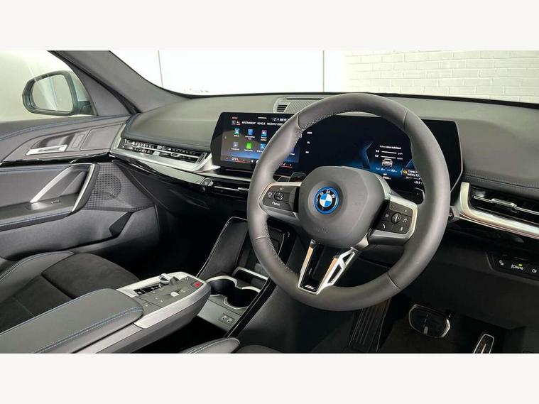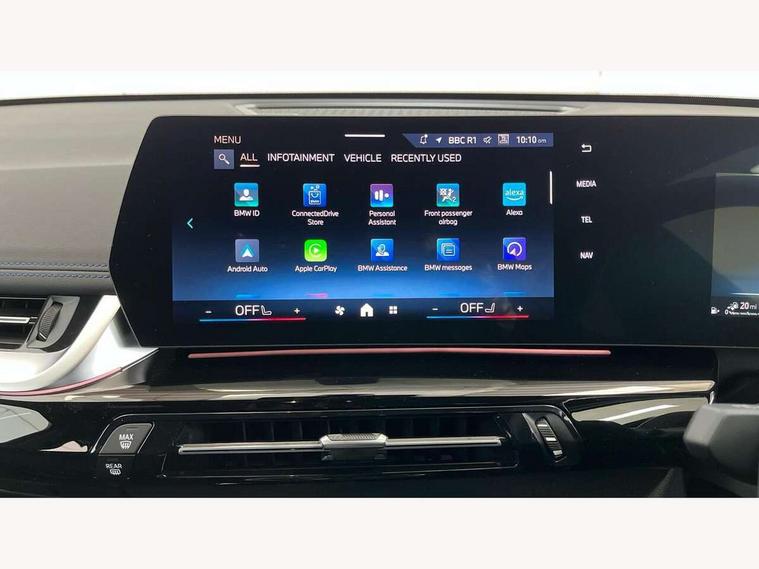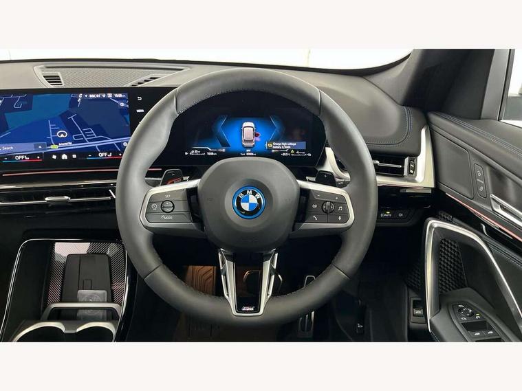 Attentiveness assist, Automatic start/stop function, BMW Live Cockpit Plus with 10.25" instrument cluster and 10.7" display, BMW Operating system 9 with BMW Maps, real-time traffic information, in-car experiences, remote services and smartphone integration, BMW Teleservices, Brake pad wear indicator, Condition based service, Connected eDrive Services, Drive off assistant, Electrically opening/closing tailgate with opening/closing with remote control and contactless opening and closing, iDrive controller, Language version English, My Modes, Parking Assistant with Reversing Assistant, active PDC, Lateral Parking Aid, Rear View Camera and Park Distance Control, Personal Profile - automatic lock when driving away selectable, Servotronic PAS, Tyre puncture warning system, Widescreen display, 11 kW AC charging power, eDrive exterior sound, EU6 emissions management, Fast charging cable professional mode 3 for public charging, M Adaptive suspension, Performance Control, Petrol Particulate Filter, Steptronic transmission with double clutch and gear shift paddles, xDrive intelligent four wheel drive system, BMW Personal eSim, DAB Digital radio, Badge on engine compartment lid and tailgate, Body colour door mirrors, Dynamic brake lights, Electric adjustable heated door mirrors, Electric windows - front and rear, with open/close fingertip control, anti-trap facility and comfort closing, Folding door handles integrated flush with surface, Follow me home headlights, Front and rear bumper panel with M specific design, in body colour with inserts in black high gloss, Front door exit lights, Heated rear window, High gloss shadowline, Invisible exhaust tailpipe, Key with M identification, LED 3rd brake light integrated in rear spoiler, LED daytime running lights, LED number plate light, M identification on the sides, M roof rails high gloss shadow line, M specific radiator grille in satinated aluminium, Matt black roof strips, Model inscription on right tailgate, Rain sensor including auto headlights activation, Rear side wing doors, Rear wiper, Sill cover in body colour, Trailer stabilisation logic, Windscreen washer nozzle for rear view camera, Windscreen wipers front with heated washer nozzles, 12V - Power sockets with front centre console and luggage compartment, 2 bag hooks in luggage compartment, 2 cup holders in front, 2 x USB Type C ports for charging in front centre console + 1 x USB Type C ports for charging in rear centre console, 3 rear headrests, 3 seat bench in 2nd row, 3 upper retaining strap clips integrated into rear panels of seat backrests, 4 grab handles, 40:20:40 split folding rear seats, Ambient interior lighting, Anthracite headlining, Anthracite Velour front and rear floormats, Bottle trays in all doors, Child seat ISOFIX attachment for two outer rear seats and front passenger seat with anchorage points, Clothes hook rear, Driver and front passenger heated seats, Dual zone automatic air conditioning, Front and rear door pockets, Front and rear footwell lighting, Front centre console storage compartment, Front/rear adjustable head restraints, Glove compartment, Interior door handle recess light on all doors, Light on right in luggage compartment, M sport leather steering wheel, Manual steering column height and depth adjustment, Middle centre console storage compartment, One piece parcel shelf opens together with tailgate and removable, Rear armrest in door trim panel, Single front passenger seat, Sport leather multifunction steering wheel with thumbrests and operation of instrument display, audio, telephone and driver assistance, Storage compartment net in left side trim panel, Storage compartment with folding cover under centre console armrest cushion, Storage tray in right side trim panel, Tilt adjustment incl. cargo function of 2nd row of seats, Vanity mirror lights, ABS/EBD, Automatic hold function, Automatic Stability Control (ASC), BMW emergency call, Braking readiness, Cornering brake control (CBC), Crash Sensor - activates hazard/interior lighting + unlocks doors, Driver/Front Passenger airbags, Driver/front passenger side airbags, Dry braking, Dynamic brake control, Dynamic stability control + (DSC+), Electromechanical parking brake, Energy recovery system, First aid kit, Front and rear brake discs, Front and rear head airbags, Front passenger airbag deactivation, Integrated brake system, PC iBrake PostCrash approach control warning with light braking function, Rear door child safety locks, Three point seat belts in all seats, Tyre pressure monitor, Warning triangle, Alarm system with tilt sensor, monitoring doors, bonnet interior and tailgate, Closing system with central locking, Locking wheel bolts, Luxury instrument panel, Tyre repair kit plus,