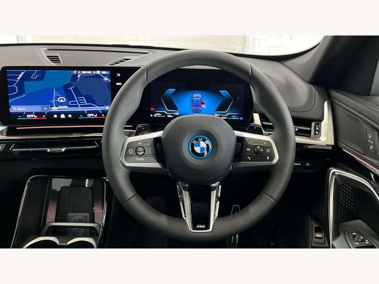 Attentiveness assist, Automatic start/stop function, BMW Live Cockpit Plus with 10.25" instrument cluster and 10.7" display, BMW Operating system 9 with BMW Maps, real-time traffic information, in-car experiences, remote services and smartphone integration, BMW Teleservices, Brake pad wear indicator, Condition based service, Connected eDrive Services, Drive off assistant, Electrically opening/closing tailgate with opening/closing with remote control and contactless opening and closing, iDrive controller, Language version English, My Modes, Parking Assistant with Reversing Assistant, active PDC, Lateral Parking Aid, Rear View Camera and Park Distance Control, Personal Profile - automatic lock when driving away selectable, Servotronic PAS, Tyre puncture warning system, Widescreen display, 11 kW AC charging power, eDrive exterior sound, EU6 emissions management, Fast charging cable professional mode 3 for public charging, M Adaptive suspension, Performance Control, Petrol Particulate Filter, Steptronic transmission with double clutch and gear shift paddles, xDrive intelligent four wheel drive system, BMW Personal eSim, DAB Digital radio, Badge on engine compartment lid and tailgate, Body colour door mirrors, Dynamic brake lights, Electric adjustable heated door mirrors, Electric windows - front and rear, with open/close fingertip control, anti-trap facility and comfort closing, Folding door handles integrated flush with surface, Follow me home headlights, Front and rear bumper panel with M specific design, in body colour with inserts in black high gloss, Front door exit lights, Heated rear window, High gloss shadowline, Invisible exhaust tailpipe, Key with M identification, LED 3rd brake light integrated in rear spoiler, LED daytime running lights, LED number plate light, M identification on the sides, M roof rails high gloss shadow line, M specific radiator grille in satinated aluminium, Matt black roof strips, Model inscription on right tailgate, Rain sensor including auto headlights activation, Rear side wing doors, Rear wiper, Sill cover in body colour, Trailer stabilisation logic, Windscreen washer nozzle for rear view camera, Windscreen wipers front with heated washer nozzles, 12V - Power sockets with front centre console and luggage compartment, 2 bag hooks in luggage compartment, 2 cup holders in front, 2 x USB Type C ports for charging in front centre console + 1 x USB Type C ports for charging in rear centre console, 3 rear headrests, 3 seat bench in 2nd row, 3 upper retaining strap clips integrated into rear panels of seat backrests, 4 grab handles, 40:20:40 split folding rear seats, Ambient interior lighting, Anthracite headlining, Anthracite Velour front and rear floormats, Bottle trays in all doors, Child seat ISOFIX attachment for two outer rear seats and front passenger seat with anchorage points, Clothes hook rear, Driver and front passenger heated seats, Dual zone automatic air conditioning, Front and rear door pockets, Front and rear footwell lighting, Front centre console storage compartment, Front/rear adjustable head restraints, Glove compartment, Interior door handle recess light on all doors, Light on right in luggage compartment, M sport leather steering wheel, Manual steering column height and depth adjustment, Middle centre console storage compartment, One piece parcel shelf opens together with tailgate and removable, Rear armrest in door trim panel, Single front passenger seat, Sport leather multifunction steering wheel with thumbrests and operation of instrument display, audio, telephone and driver assistance, Storage compartment net in left side trim panel, Storage compartment with folding cover under centre console armrest cushion, Storage tray in right side trim panel, Tilt adjustment incl. cargo function of 2nd row of seats, Vanity mirror lights, ABS/EBD, Automatic hold function, Automatic Stability Control (ASC), BMW emergency call, Braking readiness, Cornering brake control (CBC), Crash Sensor - activates hazard/interior lighting + unlocks doors, Driver/Front Passenger airbags, Driver/front passenger side airbags, Dry braking, Dynamic brake control, Dynamic stability control + (DSC+), Electromechanical parking brake, Energy recovery system, First aid kit, Front and rear brake discs, Front and rear head airbags, Front passenger airbag deactivation, Integrated brake system, PC iBrake PostCrash approach control warning with light braking function, Rear door child safety locks, Three point seat belts in all seats, Tyre pressure monitor, Warning triangle, Alarm system with tilt sensor, monitoring doors, bonnet interior and tailgate, Closing system with central locking, Locking wheel bolts, Luxury instrument panel, Tyre repair kit plus,
