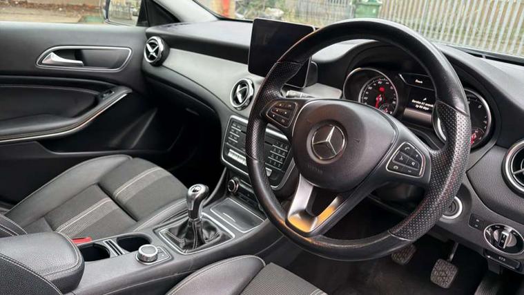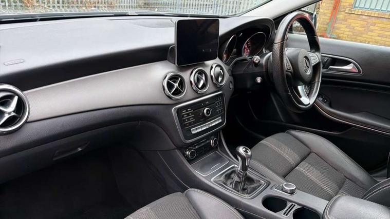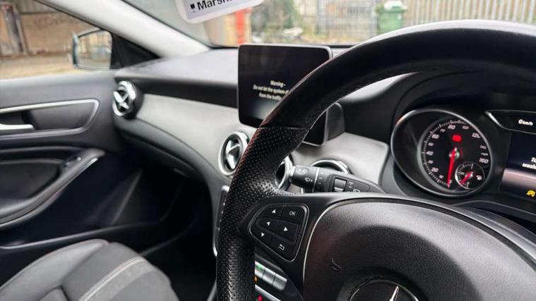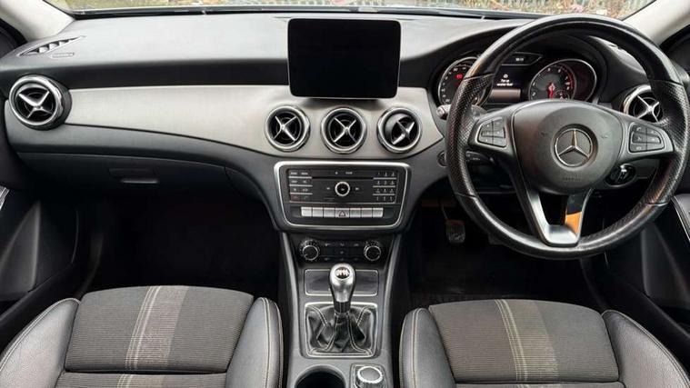 8" colour display screen, Attention assist, Coolant level warning indicator, Cruise control + speed limiter, DYNAMIC SELECT with a choice of driving modes (ECO, Comfort, Sport, Sport+ and Individual), Instrument cluster, Low fuel level warning light, Mercedes connect me, Multi function trip computer, Oil level warning, Outside temperature gauge, Reversing camera, Service indicator (ASSYST), Smartphone integration with Apple CarPlay, Speed sensitive power steering, Stop/start system, Washer fluid reminder, Comfort suspension, 6 speakers, Bluetooth connectivity including audio streaming, Media interface, Mercedes Audio 20 radio/single CD, SD card slot, USB port, Adaptive brake lights, Automatic headlamp activation, Body colour door handles, Dark privacy glass from B-pillar backwards, Electric front windows, Electric heated + adjustable door mirrors, Front fog lights, Gloss black bumper inserts, Heated rear window with timer, Heated windscreen wash system, High gloss black front splitter, High gloss black rear apron, High gloss black roof rails, LED Headlights, LED tail lights, LED third brake light, Radiator grille with 2 louvres in Silver with chrome trim, Rain sensor windscreen wipers, Rear windscreen wiper with auto activation when reversing, Roof mounted radio aerial, Roof spoiler, Twin chrome exhaust tailpipes, 1/3 to 2/3 split folding rear seats, 12V power socket in centre console, 12V socket in luggage compartment, 3 spoke multifunction nappa leather steering wheel, Air conditioning, Ambient lighting in front headrests, Artico man-made leather/Maringa fabric upholstery, Auto Mercedes-Benz child seat recognition sensor, Centre console storage, Centre console with cupholders, Courtesy light in boot, Footwell lights, Front centre armrest with storage compartment, Front seat cushion length adjustment, Grey headlining, Height adjustable front seats, Height/reach adjustable steering column, Illuminated door sills, Illuminated glovebox, Integrated head restraints, Interior door handle illumination, Isofix rear child seat preparation, Luggage compartment cover, Luggage compartment lighting, Rear Reading Lamps, Sports seats, Sunvisors with illuminated vanity mirrors, 3 rear 3 point seatbelts, ABS with Brake Assist, Active bonnet, Adaptive brake system, Black seat belts, Child proof door locks, Crash responsive emergency lighting, Drivers knee airbag, Electronic parking brake, ESP with ASR, Front and rear seatbelt reminder, Front passenger seat occupancy sensor, Front side airbags, Hill start assist, Tyre pressure monitoring system, Warning triangle and first aid kit, Window airbags, Alarm system/interior protection/immobiliser, Chrome surround electric key, Keyless Start, Remote central locking, Chrome air vent surrounds, Sail pattern dash trim, 18" 5 twin spoke alloy wheels painted black with high sheen finish, Tirefit sealant with electric air pump,