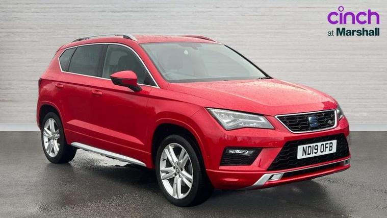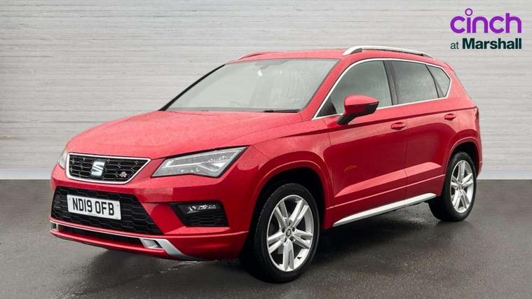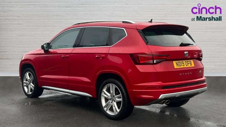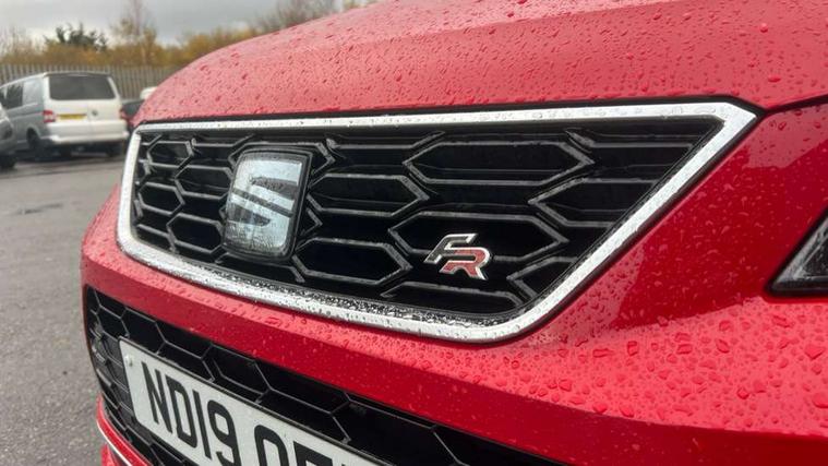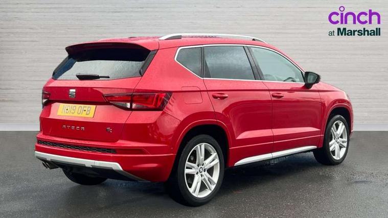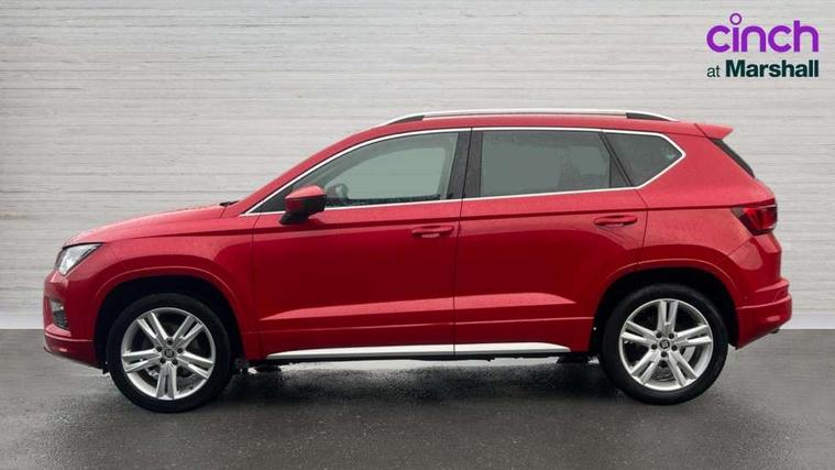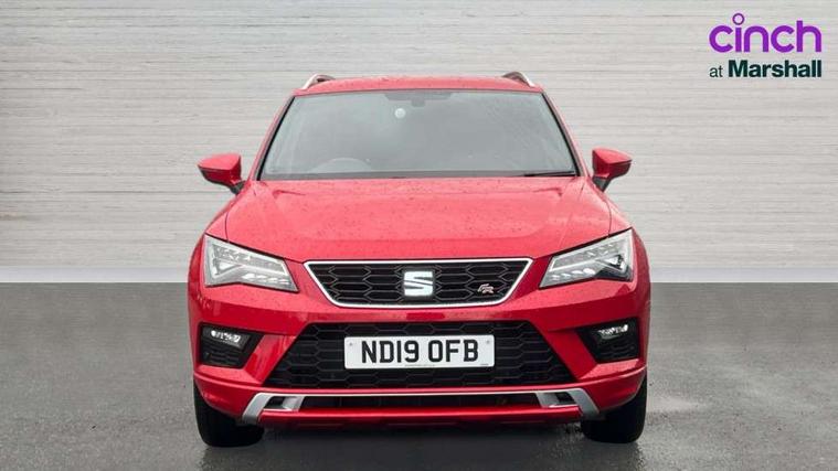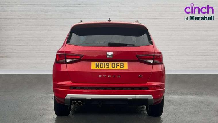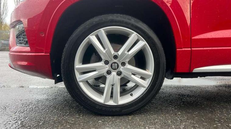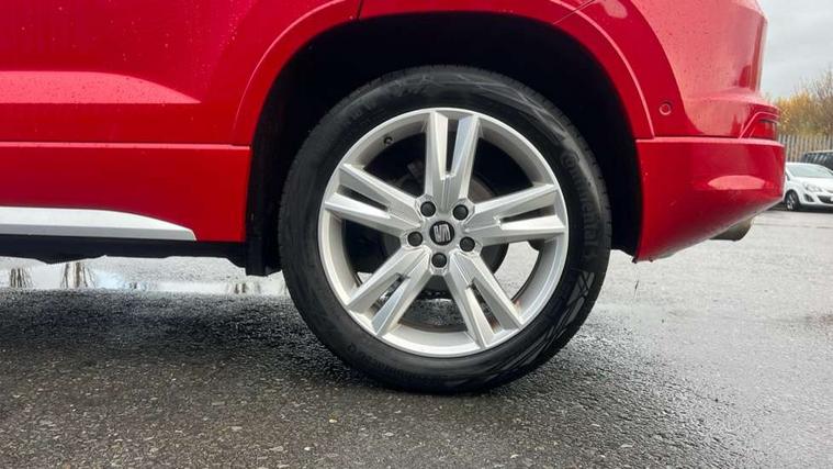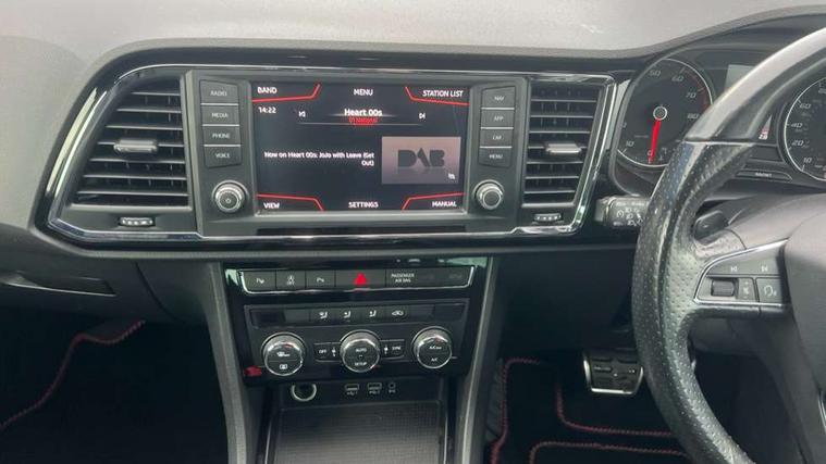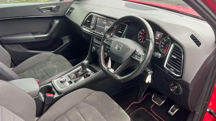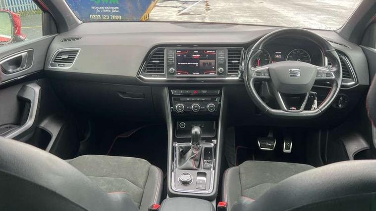 'Lights On' Reminder warning buzzer, 3.5" driver's display, 8.0" colour touchscreen with proximity sensor, Cruise control, Digital clock, Driver alert system, Full Link Smartphone Integration with Mirror Link, Apple Car Play, Google Android Auto, Low fuel warning light, Multi function display, Outside temperature gauge, Park assist system with steering assist, Progressive power assisted steering, Remote fuel flap release, RPM counter, Satellite navigation system, SEAT Drive profile, SEAT logo boot release, Self parking functionality (includes front and rear parking sensors), Trip computer, Comfort suspension, XDS electronic differential lock, SEAT USB media cable, Steering wheel mounted audio/phone controls, Aluminium front door sills, Auto dimming rear view mirror, Automatic headlights, Body colour bumpers, Body colour door handles, Body colour door mirrors, Body coloured wheel arches, Chrome roof rails, Chrome side window trim, Chromed centre radiator grille surround, Dark tinted rear windows, Door mirrors with welcome CUPRA light silhouette, Electric folding door mirrors, Electrically adjustable and heated door mirrors, Front and rear electric windows, Full LED headlights, Hidden exhaust pipe, High gloss black grille, LED daytime running lights, LED front fog lights with static cornering light function, LED Headlights, LED tail lights, Rear fog lights, Rear spoiler, Rear wash/wipe, Twin chromed exhaust pipes, Welcome lighting, 12V power point front, 3 height adjustable rear headrests, 4 Lashing eyes in boot, 60/40 split folding rear seat, Active head restraints, Adjustable front armrest with storage compartment, Advanced multicolour ambient light with LED interior light and LED illuminated glovebox, Alcantara/leather upholstery, Aluminium pedals, Black roof lining, Driver sunvisor with covered mirror + card holder, Driver/passenger lumbar adjustment, Driver/passenger sunvisors with illuminated vanity mirrors, Dual zone climate control, Footwell illumination, Front courtesy lights, Front cupholders, Front reading lights, Front seat back storage pockets, Gear shift indicator, Height adjustable driver's seat, Height adjustable front headrests, Height adjustable passenger seat, Illuminated boot, Instrument lighting with brightness control, Isofix child seat preparation, Leather steering wheel and gear knob, Rear armrest, Rear central air outlet, Rear reading lights, Sports seats, Steering wheel gearshift paddles, Storage box under drivers seat, Convenience pack - Ateca, Navigation system pack - Ateca, 3x3 point rear seatbelts, ABS, Auto hold function, Automatic post collision braking, Driver/Front Passenger airbags, Drivers knee airbag, Electronic parking brake, Electronic stability control, ESP+EBA, Front and rear seatbelt reminder, Front assist including city emergency braking, Front passenger airbag deactivation, Front side airbags, Hill hold control, Predictive pedestrian protection, Tiredness recognition system, Traction control, Twin curtain airbags, Tyre pressure monitoring system, 2 folding remote keys with window open/close function, Immobiliser, Locking wheel bolts, Remote central locking, Volumetric alarm with back up horn, Chrome effect dashboard facia, 18" Performance alloy wheels,