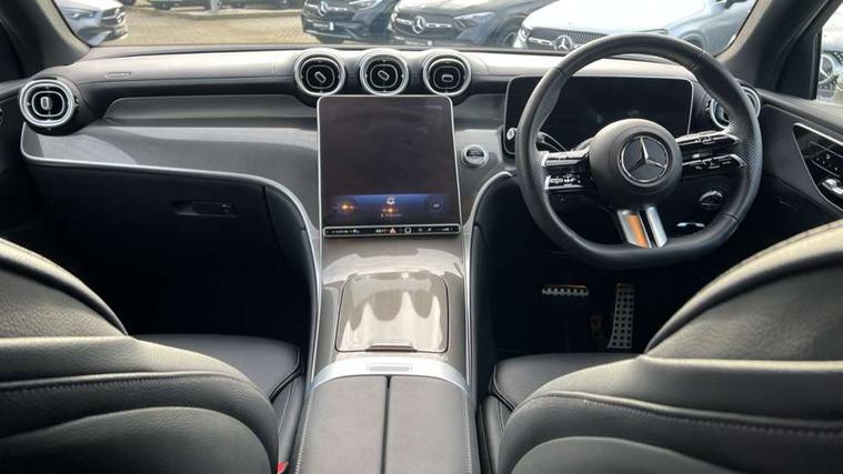 11.9" high resolution multimedia colour display, 12.3" Digital individually configurable instrument display, Acoustic presence indicator, Active lane keeping assist, Attention assist, Blind spot assist, Bluetooth interface for hands free telephone, Collision prevention assist plus, Cruise control with speedtronic variable speed limiter, Dashcam - front camera for video recording, Direct steer speed sensitive steering, DYNAMIC SELECT with a choice of driving modes (ECO, Comfort, Sport, Sport+ and Individual), eCall emergency call system, ECO start/stop function, Fingerprint scanner, Fluorescent jacket for driver, Hard disc navigation, Instrument display in miles with English lettering, MBUX augmented reality for navigation, MBUX navigation premium, MBUX voice control activated by keywords "Hey Mercedes", Mercedes me connect, Multi function trip computer, Outside temperature display, Remote boot release, Remote services, Road sign recognition system, Service indicator (ASSYST), Smartphone integration, Status display for rear seat belts in instrument cluster, Traffic sign assist, Wireless charging, 48V Mild hybrid technology, 4MATIC permanent four wheel drive, 62 litre fuel tank, 9G TRONIC plus automatic transmission, Diesel particulate filter, Sport suspension, DAB digital radio tuner, MBUX extended functions, Mercedes benz sound system, Pre installation for Mercedes Benz Link, Adaptive brake lights, Adaptive high beam assist plus, Aluminium look running boards with rubber studs, AMG bodystyling front apron, rear apron and side skirts, AMG Line exterior, Auto headlights, Body colour bumpers, Body colour door mirrors, Digital light LED headlights, Electrically adjustable door mirrors, Front and rear electric windows, Headlight washers, Heat insulating dark tinted glass, Heated rear window, High level LED brake light, Integrated LED daytime running lights, LED indicator lights, LED rear fog lights, LED tail lamp, Motor way mode function and locator lighting, Noise acoustic glass, Radiator grille with Mercedes Benz pattern and integreated Mercedes star and louvre in dark grey matt with chrome inlay and black frame, Rain sensor windscreen wipers, Range adjustable headlights, Rear side wing doors, Rear wiper, Two chrome plated tailpipe trim elements, Variable front intermittent wipers, Welcome and follow-me home light functionality, Wider wheel arch for AMG wheels, 3 seat bench in 2nd row, 40:20:40 split folding rear seats, Ambient lighting premium, AMG line interior, Artico man-made leather upholstery, Audio and onboard settings control on multifunction steering wheel, Automatic child seat recognition sensor, Black fabric roof lining, Black floor mats with AMG lettering, Double cup holder in centre console, Easy-pack removable load compartment cover, Electrically height/reach adjustable steering column, Front centre armrest with stowage compartment, Front head restraints, Galvanised steering wheel gearshift paddles, Heated front seats, Illuminated door sill panels with Mercedes Benz lettering, Illuminated glove compartment, Instrument panel and beltlines in ARTICO manmade leather in nappa look, Multifunction sports steering wheel in nappa leather, Rear centre headrest, Rear head restraints, Rear top tether child seat ISOFIX attachment, Single front passenger seat, Sports pedals with stainless steel surfaces and rubber studs, Sports seats, Sun visors, THERMATIC 2 zone automatic climate control, Anti theft protection package - GLC, Boot comfort package - GLC, Exterior chrome package - GLC, Interior chrome package - GLC, Interior lighting pack - GLC, Keyless-Go comfort package - GLC, Memory pack - GLC, Mirror pack - GLC, Parking package with 360 degree camera - GLC, Seat comfort package - GLC, Stowage space package - GLC, USB Plus Pack - GLC, 3 rear 3 point seatbelts, Active braking assist, Anti-lock braking system (ABS), ASR traction control, Automatic front passenger airbag deactivation, Black seat belts, Brake calipers with Mercedes-Benz lettering + perforated brake discs, Braking system with larger brake discs on the front axle, Child proof door locks, Dual-stage airbags - driver and front passenger, driver knee bag and window bags for driver, front passenger and rear passengers, Electronic parking brake, Electronic stability programme (ESP) with curve dynamic assist and cross wind assist, Front and rear seatbelt reminder, Front passenger seat occupancy sensor, Front seatbelt pretensioners, Hill start assist, Transparent Bonnet, Tyre pressure monitoring system, Warning triangle and first aid kit, Automatic door locking, Guard 360 degree vehicle protection plus, Interior protection/immobiliser, Remote central locking, Centre console in metal structure finish, Metal structure trim, 20" AMG 5 spoke aerodynamically optimised light alloy wheels in painted black with high sheen finish, Summer tyres, TIREFIT with tyre inflation compressor,