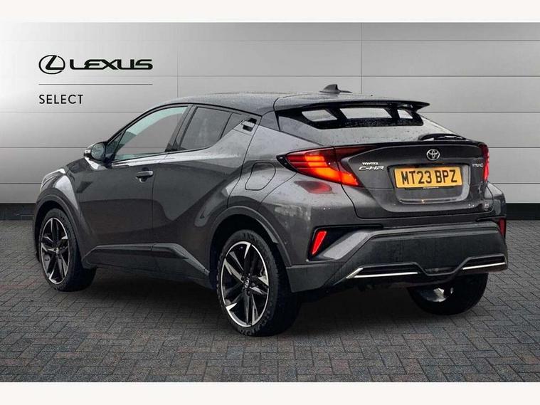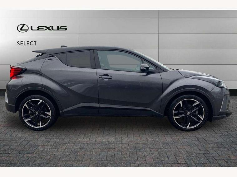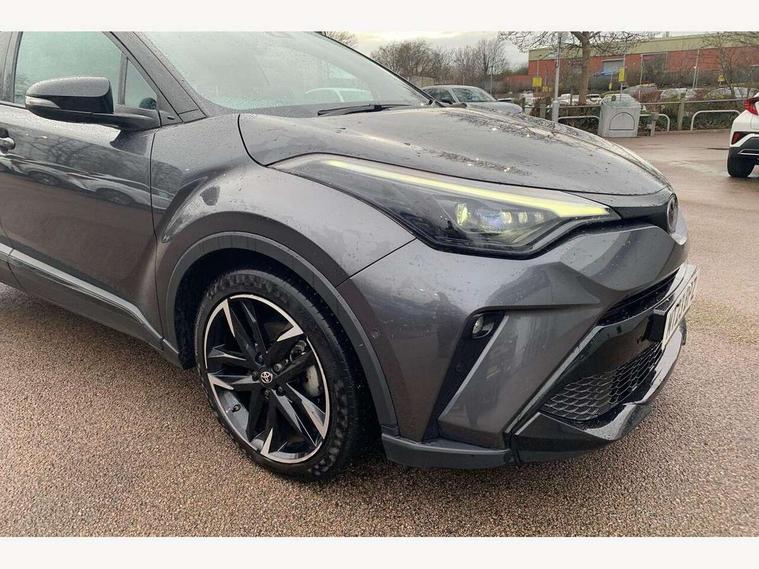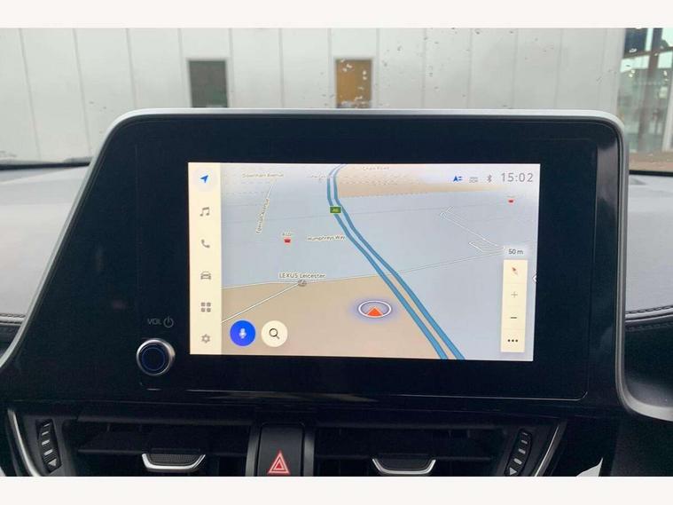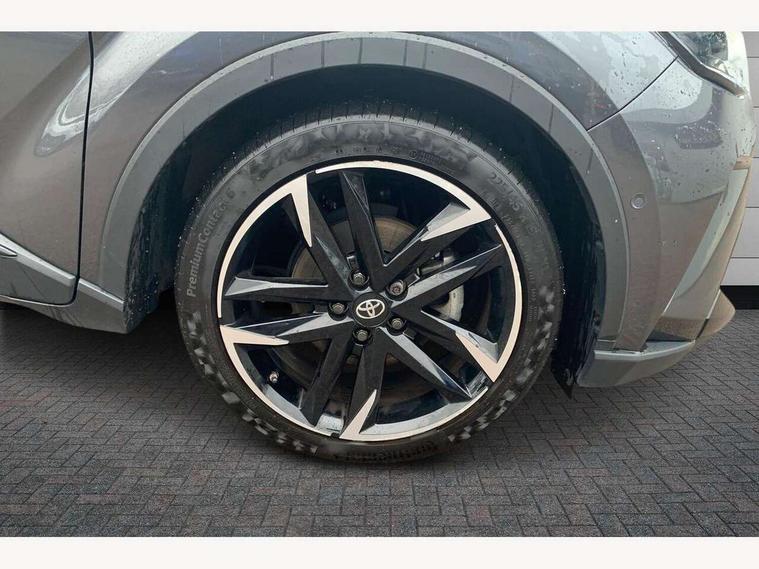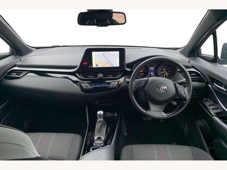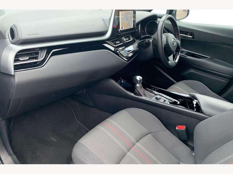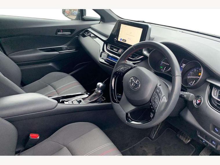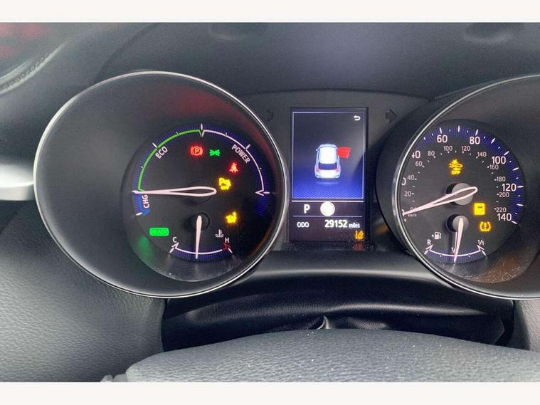 4.2" coloured TFT screen for multi-information display, Adaptive cruise control, Apple car play and Android auto, Bluetooth connectivity, E-call, Electric power steering, Hybrid system indicator, Lane departure alert with steering control, Lane trace assist, Push button tailgate release, Remote boot door release in cabin, Remote boot door release in key, Reversing camera, Road sign assist - RSA, Simple Intelligent parking assist, Smart voice assist, Touch 2 Go navigation system, Trip computer, Voice recognition, Wireless smartphone integration, Vehicle Stability Control (VSC), 6 speakers, AM/FM radio, DAB Radio (Digital Audio Broadcasting), Toyota touch 2 multimedia system with 8" display, USB connector, Wi-fi connectivity, Adaptive front light system, Adaptive LED Headlights, Anti-jam protection on power windows, Auto high beam, Auto up and down function on all power windows, Automatic headlight levelling, Automatic headlights, Automatic headlights cut-off, Black and body coloured rear bumper, Black upper front grille, Body colour door handles, Body colour door mirrors, Body coloured front bumper, Boot door release with push button, Chrome front lower bumper, Electric heated door mirrors, Follow me home headlights, Front and rear power windows, Front spoiler lip in black, Headlight cut off reminder, Honeycomb lower front grille, LED daytime running lights, LED fog lights, LED front light guide, LED High mounted stop light, LED rear brake lights, LED rear combination lights, Noise reduction layer on front windows and windscreen, Power adjustable door mirrors, Privacy glass, Rain sensor, Rear sequential indicators, Rear side wing doors, Rear spoiler, Rear tailgate, Rear window defogger, Rear window wiper, Shark fin antenna, UV-filter on driver and passenger windows, UV-filter on rear windows, Variable front intermittent wipers, 12v power outlet - front, 3 rear headrests, 3 seat bench in 2nd row, 3 spoke perforated leather steering wheel, 60/40 split folding 2nd row rear seats, Adjustable rear headrests, Adjustable speed limiter switch on steering wheel, Assist grips front and centre pillar, Audio and telephone switches on steering wheel, Black front door assist grips, Blue ambient lighting on front cup holders, Blue ambient lighting on front doors, Boot light, Chrome interior door handles, Cloth upholstery, Driver and front passenger personal light, Driver and front passenger Whiplash Injury Lessening seats, Driver and passenger seatback pockets, Dual zone automatic air conditioning, Floor mats, Front cupholders, Front head restraints, Front sports seats, Glovebox with internal light, Hard tonneau cover, Heated driver and front passenger seats, Hooks for luggage holding net, Humidifying Nanoe air purifier, Illuminated entry system, Isofix attachments on outer rear seats, Leather gearshift, Light on driver sun visor, Light on passenger sun visor, Manual telescopic steering wheel, Manual tilt steering wheel, Manually height adjustable driver seat, Manually height adjustable front passenger seat, Manually reclining driver seat, Manually reclining front passenger seat, Manually sliding driver seat, Manually sliding front passenger seat, Microphone on front personal light, Mirror on driver sun visor, Mirror on passenger sun visor, Multimedia switches on steering wheel, Pollen filter, Power adjustable lumbar support on driver seat, Shopping bag hooks, Single front passenger seat, Slow opening on lower glovebox, Voice recognition switch on steering wheel, Tech with parking sensor pack - C-HR, 16 Disk front wheel brake, 3x3 point rear seatbelts, ABS+EBD+Brake assist, Electronic parking brake, Front and rear seatbelt reminder, Front passenger airbag on/off switch, Hill start assist control (HAC), Pre collision system with pedestrian detection, Pre-tensioners and force limiters, Rear door child safety locks, SRS Airbags - Driver + Front passenger, front side, front and rear curtain and driver's knee airbags, Toyota safety sense, Tyre pressure monitoring system, Tyre pressure warning system, Acoustic vehicle alert system (AVAS), Glass-breaking alarm sensors, Immobiliser, Intrusion alarm, Intrusion sensor, Motion sensor alarm, Power door locks, Power passenger window lock, Remote central locking, Black lower dashboard, Black upper dashboard, Piano black console, Silver deco line on upper dashboard, 19" Black machined alloy wheels, Tyre repair kit,