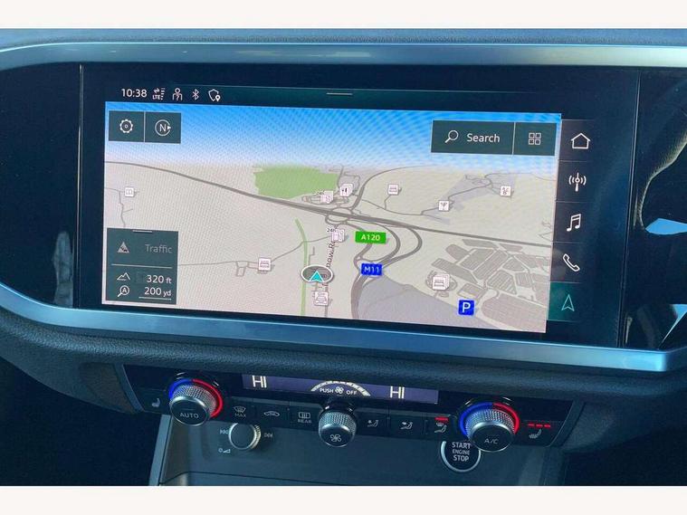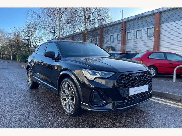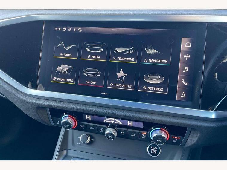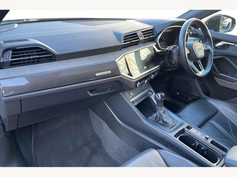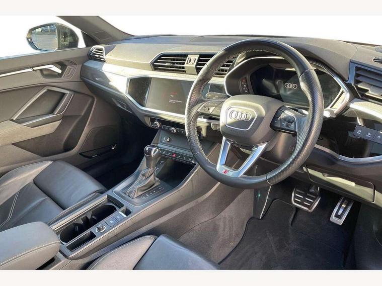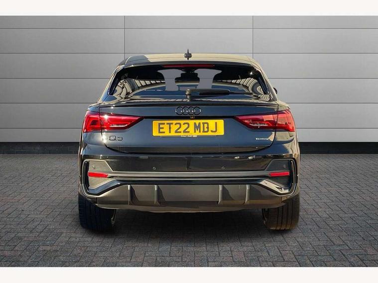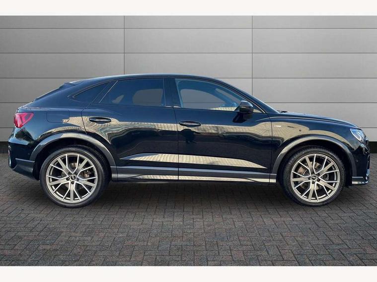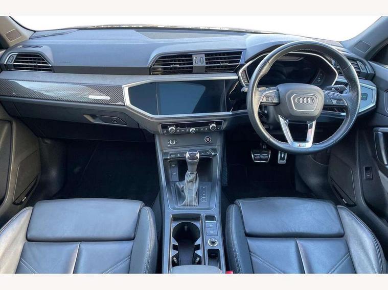 360 degree parking camera, Audi connect safety and service (e-call), Audi drive select, Audi lane departure warning, Audi phone box with wireless charging, Audi virtual cockpit plus, Bluetooth interface, Camera based traffic sign recognition, MMI Navigation Plus with high resolution 10.1 inch touchscreen colour display, Power operated tailgate, Progressive steering, Rear cross traffic assist, Service interval indicator, Smartphone interface includes wireless Apple carplay/Android Auto, Start stop system with recuperation, Voice control system with natural language interaction, Adaptive suspension with damping control, 2 USB-C ports with charge and data functions, DAB digital radio module, SONOS premium sound system, Acoustic windscreen, Audi Beam uses LEDs to project Vorsprung logo, Auto dimming door mirrors, Auto dimming frameless rear view mirror, Bumpers and underbody protection in contrasting manhattan grey paint finish, Diffuser grille in grained matt black, Diffuser trim in selenite silver, Electrically folding, adjustable and heated door mirrors with integrated LED side indicators and kerb view function for passenger side, Front and rear electric windows, Front fog lights, Front side air inlets in selenite silver, Headlight washers, High gloss black finish B and C pillars, LED daytime running lights, Matrix LED headlights with LED rear lights and dynamic front and rear indicator, Panoramic opening glass sunroof, Privacy glass dark tinted rear and rear-side windows (from B-pillar backwards), Rain and light sensors, Rear side wing doors, Rear underbody protection in matt black, Rear wiper, Third brake light, 12V socket in rear centre console, 3 seat bench in 2nd row, 4 way electric lumbar support for driver and front passenger, 40:20:40 folding with manual adjustment for 60:40 forwards/backwards position and backrest angle, Adjustable rear seat bench/backrest with centre armrest and cupholder, Black cloth headlining, Dual zone electronic climate control, Electrically adjustable front seats, Front and rear black floor mats with contrast stitching, Front and rear headrests, Front and rear roof module including reading lights, Front centre armrest, Glove compartment lighting, Heated front seats, Height and reach adjustable steering wheel, Illuminated door sill trims with S logo, ISOFIX child seat mounting for front passenger with airbag deactivation and outer rear seat including top tether attachment point for outer rear seats, Leather steering wheel in 3-spoke design with multifunction plus and shift paddles, Luggage compartment light, Perforated leather gearknob, Single front passenger seat, Stainless steel luggage compartment sill finisher, Stainless steel pedals, Black styling pack - Q3 Sportback Vorsprung, Driver Assistance Pack - Q3, Multi coloured extended ambient interior lighting pack - Q3, Non smoking pack - Q3, 3x3 point rear seatbelts, 6 airbags - Driver, front passenger, curtain and side windows, Audi pre-sense front with pedestrain and cyclist recognition, Electrically operated child locks on rear doors, Electromechanical parking brake, Electronic stabilisation control including ABS, ASR and EDL, Hill descent control, Hill hold assist, Pre sense basic, Seatbelt monitoring, Tyre pressure warning, Warning triangle and first aid kit, Advanced key, Anti theft alarm, Anti theft wheel bolts, Remote central locking, Black dashboard, Detail dashboard around MMI touch colour display in glass look, black with surround in aluminium look, Leatherette door armrest,