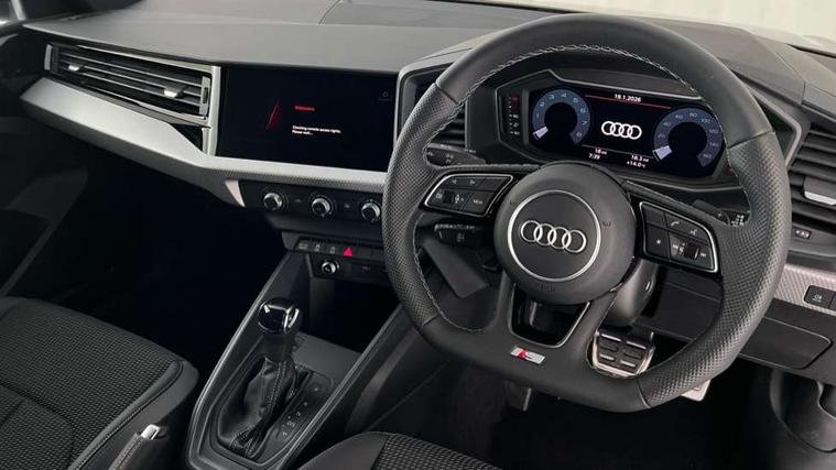 10.25" Digital instrument cluster display classis style instrument dials + speed, odometer, time, outside temperature, telephone menu + fuel level warning, Advanced driver attention and drowsiness monitor, Audi connect emergency call and service, Audi drive select, Audi remote connect and control, Bluetooth interface, Camera based traffic sign recognition, Cruise control, Driver's information system, Electromechanical power steering, Lane departure warning system, Rear parking sensor, Service interval indicator, Smartphone interface, Speed limiter, Start stop system with recuperation, Voice control system, Washer fluid level indicator, Sports suspension, 2 x USB type C connection points, 6 loudspeakers, DAB Digital radio, MMI radio plus with 10.1" colour MMI display screen and MMI touch, Auto dimming rear view mirror, Black door mirror housings, Black side skirts, Body coloured bumpers, Door sill trims with aluminium inlays and logo, Electric front and rear windows, Electrically adjustable, heated, folding door mirrors with integrated LED side indicator, Front side air inlets in grained matt black and C frame in anthracite black, Front wing badges, Headlight cleaning system, Heat insulating glass windscreen and side windows, Heated rear windscreen, High level LED brake light, LED daytime running lights, LED headlights with range control LED rear lights + dynamic rear indicators, Light and rain sensors, Privacy glass, Radiator grille and rear diffuser in matt anthracite black, Radiator protective grille frame in matt aluminium silver, Rear fog lights, Rear side wing doors, Rear wiper, Side front spoiler lips in grained matt black, 12V socket in centre console with two cup holders, 3 rear seats with headrests, 3 seat bench in 2nd row, 3 spoke flat bottomed multi-function plus leather steering wheel with S badging, grips in preforated leather, contrast stitching and paddle shift, 40:60 Split folding rear seat or fully collapsed, Black carpets, Black cloth headlining, Front and rear velour black floor mats with contrast stitching in fine silver, Front head restraints, Front passenger seat, Height and reach adjustable steering wheel, Interior lighting includes roof module, front and rear reading lights and right luggage compartment lighting, ISOFIX child seat mounting for front passenger and outer rear seats including top tether attachment point of outer rear seats, Leather gear knob with aluminium trim, Leather handbrake grip, Manual air conditioning, Manual height adjustable for driver and front passenger seat, Manually adjustable lumbar support in front seats, Stainless steel pedals, Ambient lighting package - A1, Black styling pack - A1 Sportback Black Edition, Luggage compartment pack - A1, 3x3 point rear seatbelts, Audi pre-sense front with pedestrain and cyclist recognition, Brake assist function, Driver and front passenger airbag with front side and head airbags, Electronic Stability Control including ABS, EBD, ASR and EDL, Front passenger airbag deactivation switch, Hill hold assist, Manual rear child locks, Seatbelt height adjustment for front seats, Seatbelt monitoring, Tyre pressure loss indicator, Warning triangle and first aid kit, Anti theft alarm, Anti theft wheel bolts, Immobiliser, Remote control key with safelock, Aluminium trim for control switches, air vents and digital instrument cluster, Black dashboard, Silver grey inlays polygon structure in diamond paint finish, Structured grey accent surfaces insert of air vents, interior door handle recesses and centre console in quartz paint finish,