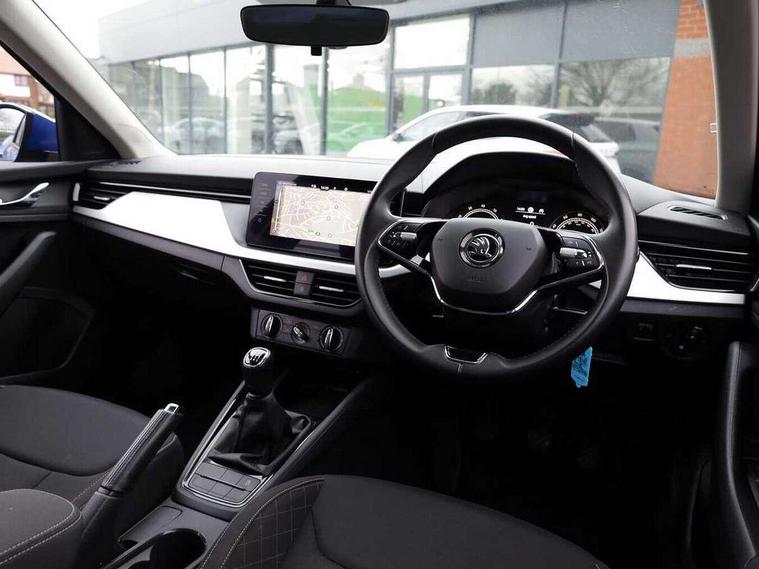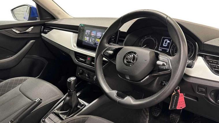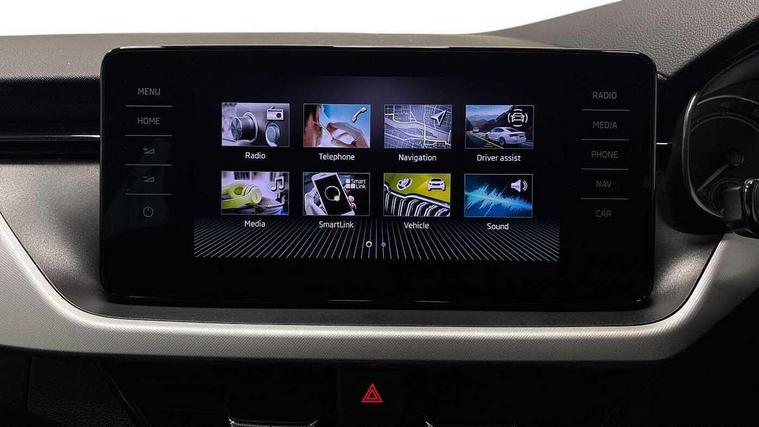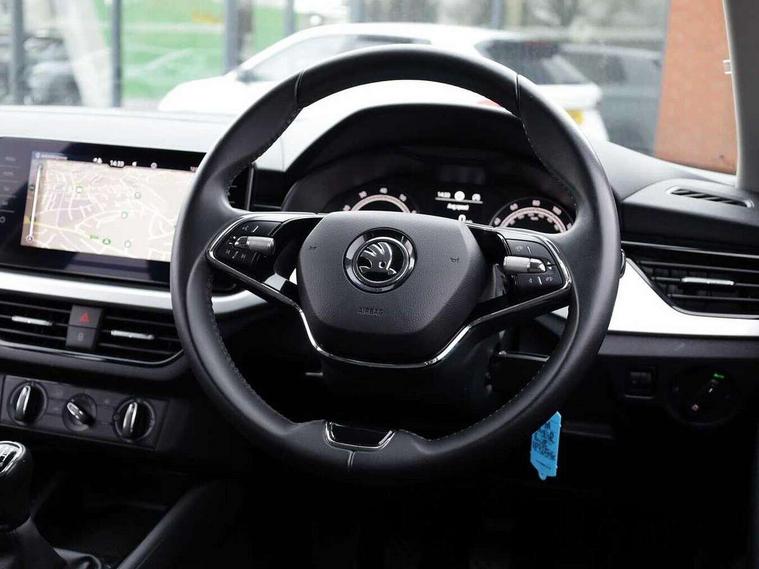 Amundsen satellite navigation with 9.2" glass colour touchscreen display, web radio, voice control and traffic sign recognition, Bluetooth system, E-call, Front assist system, Gesture control, PAS, Service indicator, Speed limiter, Wireless SmartLink for apple car play, android auto and mirrorlink, 8 Speakers, Auxiliary input socket, DAB Digital radio, Body colour bumpers, Body colour door mirrors and handles, Chrome grille surround, Dimming rear view mirror with black surround, Electrically adjustable and heated door mirrors, Front and rear electric windows, Headlight range control, Heated rear window, LED rear lights - low functionality, Light sensors, Privacy glass, Rear fog lights, Rear side wing doors, Rear wiper, 12V Accessory socket in centre console, 3 seat bench in 2nd row, Chrome inner door handles, Cloth upholstery, Front head restraints, Glove compartment with illumination, Height adjustable driver and front passenger seats - manual, Ice scraper, Isofix child seat fittings on outer rear seats, ISOFIX on front passenger seat, Manual lumbar support for front seats, Rake/reach adjustable steering wheel, Reading lights, Single front passenger seat, Sun visors with illumination on front passenger, Textile floor mats, Third rear headrest, Top tether for front passenger seat, Umbrella in driver's door, 3x3 point rear seatbelts, Airbags - driver and front passenger, ESP, Front passenger airbag deactivation switch, Front side airbags with curtain airbags, Hill hold control, Manual parking brake, Manual rear child locks, One tone horn, Rear disc brakes, Seatbelt reminder for driver an co-driver, Traction control, Tyre pressure monitor, Anti-theft alarm system with interior monitoring, backup horn, towing protection and remote central locking with SAFE system, Anti-theft wheel bolts, Electronic engine immobilizer, Silver haptic decorative insert on the dashboard with hot stamping in glossy black,