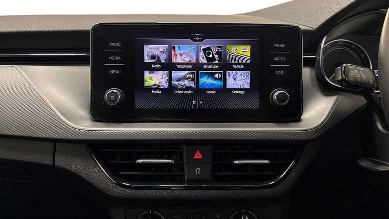 Bluetooth system, E-call, Front assist system, PAS, Service indicator, Speed limiter, Wireless Smartlink for Apple CarPlay (wired for Android Auto), 8 Speakers, Auxiliary input socket, DAB Digital radio, Body colour bumpers, Body colour door mirrors and handles, Chrome grille surround, Dimming rear view mirror with black surround, Electrically adjustable and heated door mirrors, Front and rear electric windows, Headlight range control, Heated rear window, LED rear lights - low functionality, LED third brake light, Light sensors, Rain sensor, Rear fog lights, Rear side wing doors, Rear wiper, 12V Accessory socket in centre console, 3 seat bench in 2nd row, Chrome inner door handles, Cloth upholstery, Front head restraints, Glove compartment with illumination, Ice scraper, Isofix child seat fittings on outer rear seats, ISOFIX on front passenger seat, Manual lumbar support for front seats, Rake/reach adjustable steering wheel, Reading lights, Single front passenger seat, Sun visors with illumination on front passenger, Textile floor mats, Third rear headrest, Top tether for front passenger seat, Umbrella in driver's door, 3x3 point rear seatbelts, Airbags - driver and front passenger, ESP, Front passenger airbag deactivation switch, Front side airbags with curtain airbags, Hill hold control, Manual parking brake, Manual rear child locks, One tone horn, Rear disc brakes, Seatbelt reminder for driver an co-driver, Traction control, Tyre pressure monitor, Anti-theft alarm system with interior monitoring, backup horn, towing protection and remote central locking with SAFE system, Anti-theft wheel bolts, Electronic engine immobilizer,