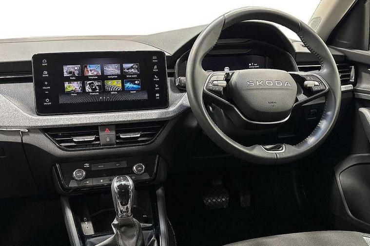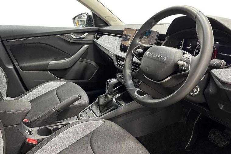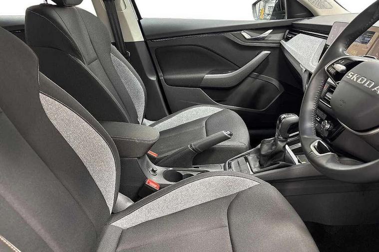 Advanced driver attention and drowsiness monitor, Bluetooth, e-Call (emergency call), Front assist system, PAS, Rear parking sensors, Rear view camera, Speed limiter, Tailgate, Traffic sign recognition, Virtual Cockpit - 10.25" digital display, Voice control system, Wireless smartlink, 4 USB C ports, 8 Speakers, 9.2" Skoda navigation display, DAB radio, Auto dimming rear view mirror, Automatic headlamp activation with Coming home and Leaving home feature, Automatic high/low beam, Body colour bumpers, Body colour door mirrors and handles, Chrome moulding around grille, Front and rear electric windows, Full LED headlights, Heated rear window, LED 3rd brake light, LED brake lights, LED daytime running lights, LED front turning lights, LED high beam, LED low beam, LED taillights, Rear LED fog light, Rear side wing doors, Rear wiper, Tinted windows, Unique dark chrome design logo on alloy wheels, 12V socket in luggage compartment, 3 seat bench in 2nd row, Black / Grey armrest stitching, Black hotstamping, Cargo elements, Chrome inner door handles, Door inserts in satin black, Driver and passenger sun visors with vanity mirror, Dual zone climate control, Front and rear roof lights, Front centre armrest, Front head restraints, Glasses storage in roof liner, Height adjustable driver seat, Height adjustable passenger seat, Ice scraper, Illuminated glove compartment, Inner circulation control with pollen filter, ISOFIX for front passenger seat, Isofix preparation for back seats, Leather gearknob and handbrake lever, Loft cloth upholstery, Luggage net under rear parcel shelf, Manual lumbar support for front seats, Net package and top tether hooks in boot space, Pearl grey ceiling, Pocket on the back of both front seats, incl. mobile phone pockets, Single front passenger seat, Skoda lettering on steering wheel, Textile floor mats, Third rear headrest, Ticket holder, Top tether for front passenger seat, Umbrella in driver's door, 3x3 point rear seatbelts, ABS, Child locks, Curtain airbags and front side airbags, Disc brakes, Driver and front passenger airbags, ESP, Hill hold control, Manual leather parking brake, One tone horn, Passenger airbag switch off function, Seatbelt reminder for driver and front passenger, Tyre pressure monitoring system, Anti theft alarm system with interior monitoring, backup horn and towing protection, Anti-theft wheel bolts, Remote central locking with 2 remote folding keys, SAFE function for remote central locking, Decord pad, door inserts Kota uni,