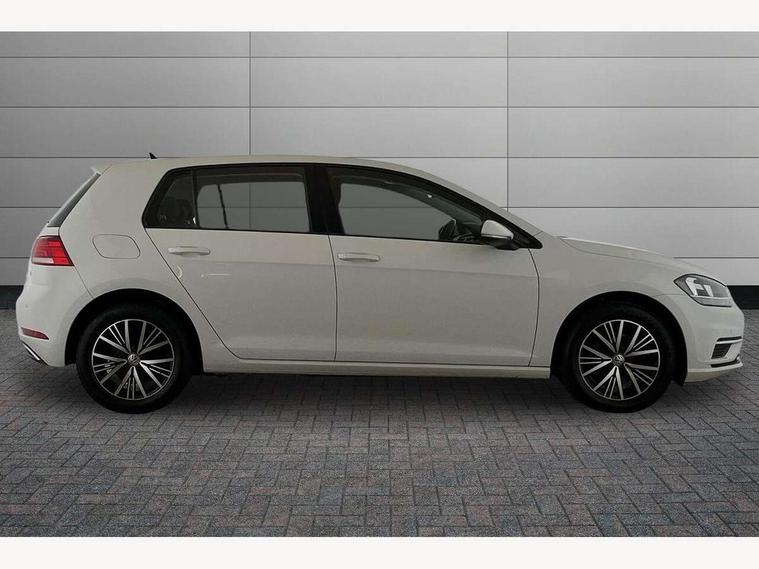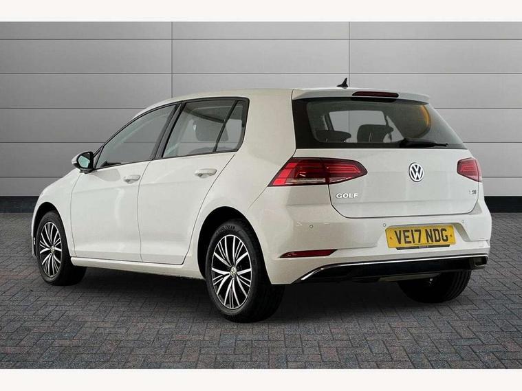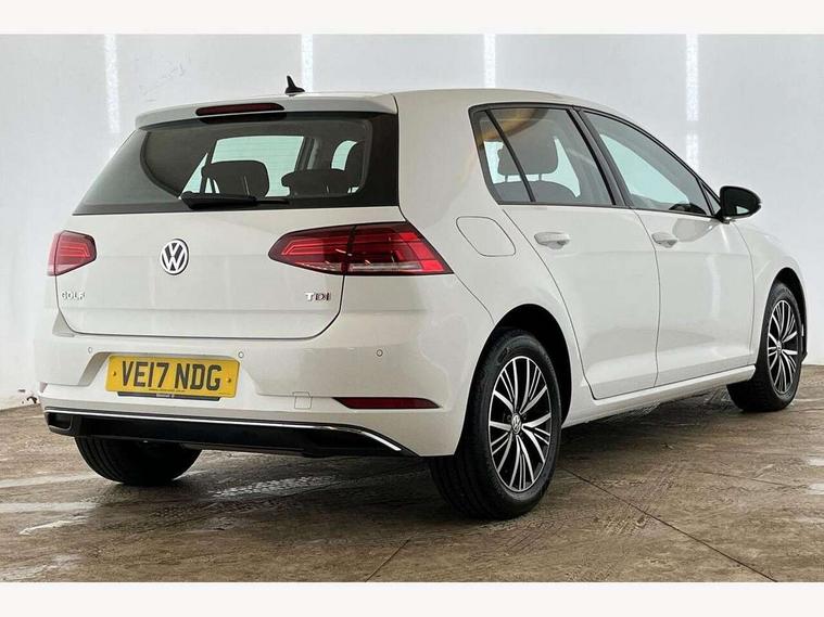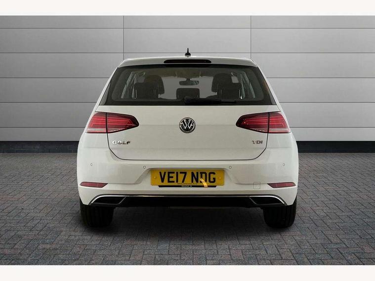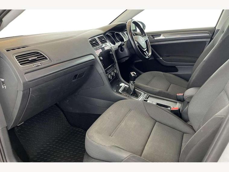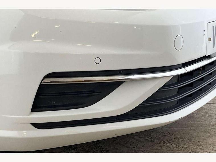 'Lights On' Reminder warning buzzer, 8" touch screen, Adaptive Cruise Control with pedestrian detection and speed limiter, App-Connect, Bluetooth hands free telephone connection, Brake pad wear indicator warning light, Driver alert system, Driver profile selection, Exterior temperature gauge, Front assistant collision mitigation, Instrument cluster in white, Multifunction computer, PAS - speed related, Rev counter, Trip and service interval display, Ultrasonic front and rear optical and audible parking sensors, Warning buzzer and light for front seatbelts unfastened, Diesel particulate filter, XDS electronic differential lock, CD/MP3/WMA, USB and SD card reader, aux-in, Composition media system, DAB Digital radio, Auto dimming rear view mirror, Automatic coming/leaving home lighting function, Automatic headlights, Black front air intake and radiator grille with chrome insert, Black rear diffuser, Body colour bumpers, Body colour door handles, Body colour door mirrors, Electric front windows, Electric rear windows, Electrically adjustable and heated door mirrors, Heated rear windscreen, LED daytime running lights, LED rear lights, Rain sensor, Rear roof spoiler, Rear windscreen washer and wiper with interval delay, 12V socket in luggage compartment, 3 rear headrests, 3 spoke steering wheel, 60/40 split folding rear seat, Bag hook in luggage compartment, Boot lashing points, Cooled glovebox, Courtesy light delay, Cover for storage compartment in centre, Dust/pollen filter, Front and rear reading lights, Front centre armrest with storage box and rear air vents, Front passenger drawer stowage, Front passenger seat height adjust, Front seat back storage pockets, Grab handles, Height adjustable driver's seat, Height/reach adjust steering wheel, Illuminated vanity mirrors, Isofix preparation for 2 rear child seats, Load through provision with rear centre armrest and cupholders x2, Luggage compartment cover, Luggage compartment lighting, Multifunction leather steering wheel with leather gear knob/handbrake grip, Overhead storage box, Pearl grey headlining, Storage box in luggage compartment, Storage compartments in doors, Sun visors, Variable boot floor, height adjustable and removable, Mirror pack - Golf, 3 point height adj front seatbelts + pretensioners, 3 rear 3 point seatbelts, ABS, Automatic post collision braking, Child locks on rear doors, Driver/Front Passenger airbags, Driver/Passenger whiplash optimised head restraints, Drivers knee airbag, Electronic parking brake with auto hold, ESP with EDL + ASR, Front and rear curtain airbags, Front passenger airbag deactivation, Front side airbags, Pre crash system, Tyre pressure monitor, Alarm with interior protection, Electronic engine immobiliser, Remote central locking with 2 remote folding keys, Brushed dark metal decorative inserts in dash and front door panels, Chrome-plated light switch surround, Polar night black centre console, Steel space saver spare wheel,