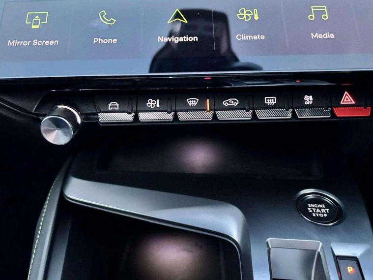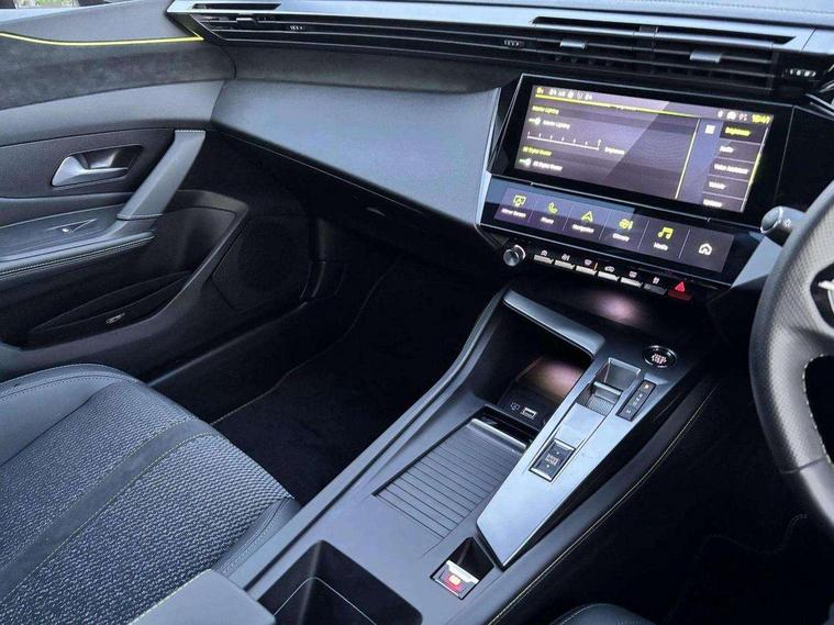 Bluetooth telephone facility, Compact drive selector, Driver attention warning, Emergency call service, Exterior temperature indicator with ice warning, Front and rear parking sensors, Intelligent speed adaptation, Lane keep assist, Mirror screen with wireless apple carplay and android auto, Multi driving mode selector - Eco / Normal / Sport mode selector, Multi function trip computer, Peugeot connect advanced with connected 3D navigation, PEUGEOT i-Cockpit - compact steering wheel, 10" HD colour touchscreen with configurable 3D headup instrument panel, PEUGEOT SOS and assistance, Service interval indicator, Speed limit recognition and recommendation, Sport pedals with foot rest, DAB Digital radio, Peugeot customisable iToggles, Voice recognition for radio, navigation and telephony features, 2 X LED rear number plate lights, Acoustic and tinted windscreen, Acoustic laminated front side windows, Automatic hazard light activation upon heavy brake application, Automatic triggered rear windscreen wiper in reverse gear, Bi-tone roof rails, Body colour door handles, Body colour rear roof spoiler, Dark chrome chequered radiator grille, Dark tinted rear side and tailgate windows, Electric operated/heated door mirrors, Extended lower body sills to the front and side, Frameless electrochrome rear view mirror, Front and rear electric windows with one touch/anti pinch, Full LED matrix headlights with automatic adjustment, Gloss black finish B pillar, Gloss black rear cluster connecting strip, GT model designation badging on tailgate, High beam assist, LED 3rd brake light, LED side indicator lights integrated into door mirrors, Lion emblem badging on front wings, Model designation badges on front and rear, Nera black door mirrors, Peugeot aluminium door sills, Peugeot signature LED daytime running lights, Power folding door mirrors, Rear full LED 3D Peugeot new claw effect lights with sequential welcome sequence upon unlocking the vehicle, Rear lower bumper gloss black diffuser effect trim, Rear reversing lights, Rear side wing doors, Tailgate with heated rear windscreen and wiper blade, Twin exhaust pipes with chrome surround, 12V socket, 2 front USB socket including 1 USB type c, 3 seat bench in 2nd row, 40/20/40 flat folding rear seats, 8 Colour personalisable ambient lighting, Automatic air conditioning with AQS 3, Carpet mats, Central front armrest with storage compartment, Dynamic front seats, Electric power steering with reach and rake adjustable steering column, Front central console with two cup holders, LED Glovebox light, Manual driving mode - change gear manually via steering mounted paddles, Multifunction full grain leather steering wheel with admite green stitching & GT badging, Piano keys gloss black plated toggle switches to access main functions of the vehicle, Rear centre armrest with cupholders, Roof lining - Mistral black, Seatbelt unfastened on the move audible and visual alert for front and rear seats, Single front passenger seat, Sunvisor with concealable mirrors and LED lighting, Twin USB charging ports in the rear (Type C), Two position boot floor, Driver sport pack with sports power steering - 308, Visibility pack with automatic magic wash windscreen wipers - 308, 2x Isofix child seat fitting on outer rear seats, 3x Rear three-point retractable seatbelts with force limiters in the outer rear seats, ABS + EBD + EBA, Active safety brake with night function/cyclists/pedestrians, Adaptive driver and front passenger airbags with passenger airbag deactivation function, Automatic post collision braking, Child locks on rear doors, Driver/front passenger side airbags, Electronic parking brake, ESP, Front and rear curtain airbags, Front optimised safety headrests and rear retractable headrests (x3), height adjustable, Front three point retractable seatbelts with force limiters, Front/rear disc brakes, Hill start assist, Tyre pressure sensor, Automatic door locking when moving off, Deadlocking system, Electronic code immobiliser, Locking wheel nuts, PEUGEOT Open and Go keyless entry system, Thatcham cat. 1 alarm with anti lift sensor, Tyre repair kit,