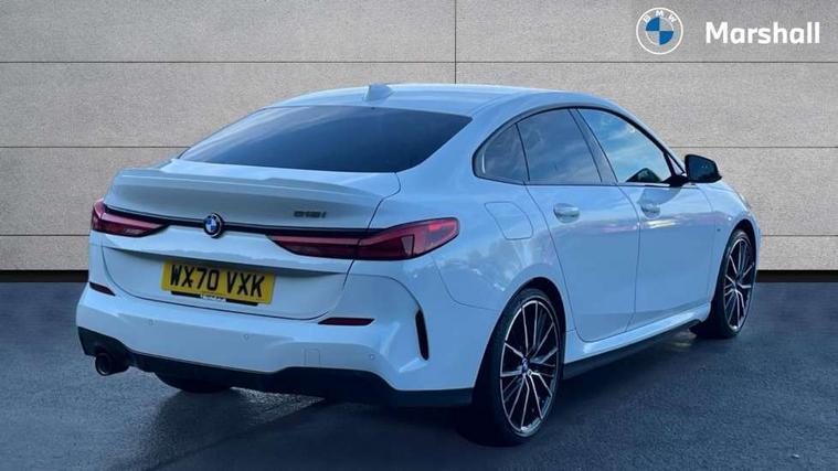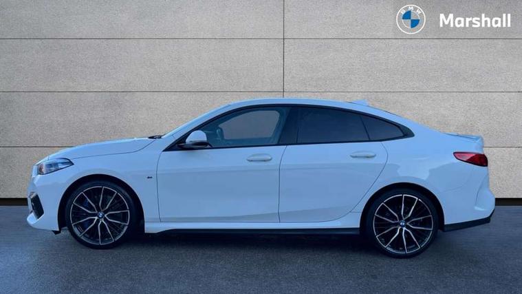 Contrast stitching on instrument panel, Connected pack professional - 2 Series Gran Coupe, Extended Lighting pack - 2 Series Gran Coupe, Extended storage pack - 2 Series Gran Coupe, M Sport aerodynamics pack - 2 Series Gran Coupe, 18" Burnished M double spoke alloy wheels finished in orbit grey - style 819M, Reduced rolling resistance tyres, Central locking switch for all doors, fuel filler cap and luggage compartment, Deadlocking function system to all doors, Drive away locking system on all doors and luggage compartment, Locking wheel bolts, Remote control with integrated key with High-gloss Black inlay and M designation and 1 button for open/ close lock, window, open luggage compartment, Start/stop button with Comfort Go keyless engine start and auto Start/stop deactivation button, Thatcham Cat.1 alarm and immobiliser, Two remote control key with integrated key - one button for open and close doors/fuel flap/tailgate and separate button for unlock luggage compartment, 4G LTE Connectivity with hard wied 4G network sim card, Bluetooth audio streaming, BMW Music, Connected music, DAB digital radio, MP3 players and RDS double tuner, 2 tone horn, Airbag - Front driver and passenger, front and rear head, front side, curtain head protection, manual deactivation of front passenger airbag possible, Anti lock braking system (ABS) with cornering brake control, BMW emergency call, Brake drying, Braking readiness, Crash sensor activating of airbags, Unlocking doors, hazard warning lights, fuel cut off, interior lighting+activation of safety battery terminal clamp, Dynamic stability control + (DSC+), Dynamic Traction Control - DTC, Electrically operated hand brake, Rear brake discs, Rear child proof door locks, Seat belt security check for driver and front passenger, Seatbelt warning, Side impact protection, Three point seat belts on all seats including front belt stopper, pyrotechnic belt tensioners and belt force limiters, Trailer stability control, Tyre pressure monitoring system, Ventilated front disc brakes, Warning triangle and first aid kit, Automatic headlight beam throw control, Automatically dimming rear view mirror, Body colour door handles, Body colour mirror caps, Chrome 'M' logo side designation, Chrome exhaust single tailpipe, round, Direction indicator side lights integrated exterior mirrors, Electric windows - front and rear, with open/close fingertip control and trap release, Exterior mirrors - electrically folding with anti-dazzle, Fading support, Follow me home headlights, Front and rear bumper system with replaceable deformation elements, Front door sill finishers in black plastic with M designation in metallic look, Heated, electrically adjustable exterior mirror aspheric on driver side, convex on passenger side, High gloss black B pillar finish, High gloss shadow line exterior trim, High level third brake light, LED daytime running lights, LED front fog lights, Lightweight engineering, Model designation on right side of tailgate, Preparation for high beam assistant, Rain sensor with automatic headlight activation, Rear boot, Rear fog lights, Rear side wing doors, Reversing light in rear light cluster, Welcome lighting, 12V power socket in centre console, 2 cupholders in front centre console, 3 rear seat head restraints, 3 rear seats, 3 spoke M sports design leather steering wheel finished in nappa leather with specific M badge, Anthracite floor mats, Anthracite headlining, Automatic two zone climate control air conditioning, Child seat ISOFIX attachment for two outer rear seats and front passenger seat with anchorage points, Conditioned based service, Dakota leather upholstery with perforation and contrast stitching, Driver and front passenger seat heating, Front and rear door pockets, Front and rear side armrests integrated into door trim, Front Armrest foldable with integrated storage compartment, Front centre interior light over interior mirror and rear centre automatic interior light when door is opened/ignition switched off or via remote key, Front head restraints, Front passenger seat, Front sports seats with electric side bolster adjustment, Glove compartment, Glovebox with light, Luggage compartment lighting, Manually adjustment steering wheel column, Multi-function controls for steering wheel, Sun visors with vanity mirrors and insert tab, Through loading system with 40/20/40 split folding rear seat, Two lashing eyes, 2x USB Type C ports (for charging and data transfer), Active guard plus, Attentiveness assist, Auto start-stop, BMW Intelligent Personal Assistant, BMW Live Cockpit Professional with 10.25" high resolution instrument and control display, BMW Online services, BMW operating system with 7.0 mid interface, BMW Teleservices, Check Control warning system for monitoring of lights and door/luggage compartment open warning, Connected eDrive Services, Eco pro mode, Electric Power Steering (EPS) with Servotronic, iDrive controller on centre console, Integrated navigation data with map data via USB +features such as 3D landmarks and micro city models, Integrated owners handbook, Intelligent voice assistant, On board computer - average speed+fuel consumption, service interval, clock/date, odometer/trip meter, outside temperature display and ice warning, Optimum shift indicator, Personal Profile, Pull away assistant, Smartphone integration, Speed limiting function, Anti roll bar front and rear, Balancer shaft, Double VANOS, Drive performance control with ECO PRO comfort + sport mode, Dual clutch automatic transmission, Electronic differential lock, High precision injection, M sport suspension, Performance Control, Petrol Particulate Filter, Twin tube gas filled shock absorbers with degressive characteristic curve, VALVETRONIC engine management,