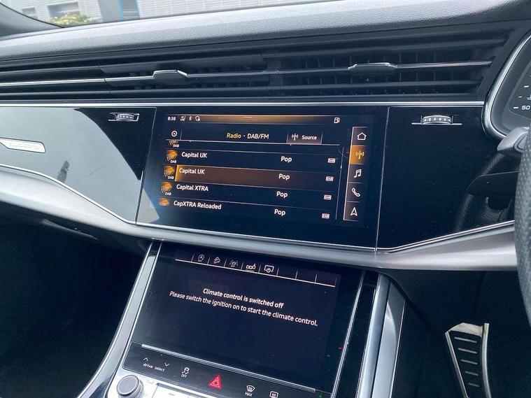 10.1" and 8.6" Dual colour touchscreens, Audi connect safety and service (e-call), Audi drive select, Audi lane departure warning, Audi phone box with wireless charging, Audi smartphone interface, Automatic start/stop system, Electro-mechanical PAS, Low washer fluid indicator, MMI - Multi Media Interface control system, MMI navigation plus with MMI touch, On board computer, Operating buttons in black, glass look with haptic feedback, Power operated tailgate, Rear view camera, Service interval indicator, Virtual cockpit, Voice control system, Adaptive air suspension, Diesel particulate filter, 2 USB ports, Audi music interface, Aux-in socket, DAB Digital radio, Acoustic windscreen, Auto dimming rear view mirror, Coming/leaving home lighting function, Electric front+rear windows, Electric/heated/folding door mirrors with memory, HD Matrix LED headlights with dynamic front and rear indicators, Headlight washers, Heat insulating glass, LED daytime running lights, LED signature DRL, Privacy glass, Rain and light sensors, Rear wiper, S line badges on front wings, S Line body styling, S line front and rear bumpers, air inlets and door trim strips, 4 way electrically adjustable lumbar support for drivers seat, 4 way electrically adjustable lumbar support for front passenger seat, 40:20:40 split folding rear bench seat, Black cloth headlining, Door sill trims with S line logo, Front centre armrest with storage compartment and angle adjustment, Front head restraints, ISOFIX on front passenger and rear outer seats, Luggage compartment sill protection in stainless steel, Rear centre armrest with 2 cupholders, Rear headrests, Self-locking centre differential, Stainless steel pedals, Sunvisors with illuminated vanity mirrors, Tool kit, Top tether anchor plate for isofix child seat, 3 point seatbelts on all seats, ABS, Curtain airbags, Driver and passenger airbags, EDL + ASR, Electromechanical parking brake, Electronic stability control, ESP, Front passenger airbag deactivation, Front side airbags, Hill descent control, Hill hold assist, Pre sense front, Predictive pedestrian protection, Seatbelt warning, Traction control, Tyre pressure monitoring system, Warning triangle and first aid kit, Anti theft alarm, Anti-theft wheel bolts and wheel loosening detection, Immobiliser, Keyless Go access/ignition system, Remote central locking, Tyre repair kit,