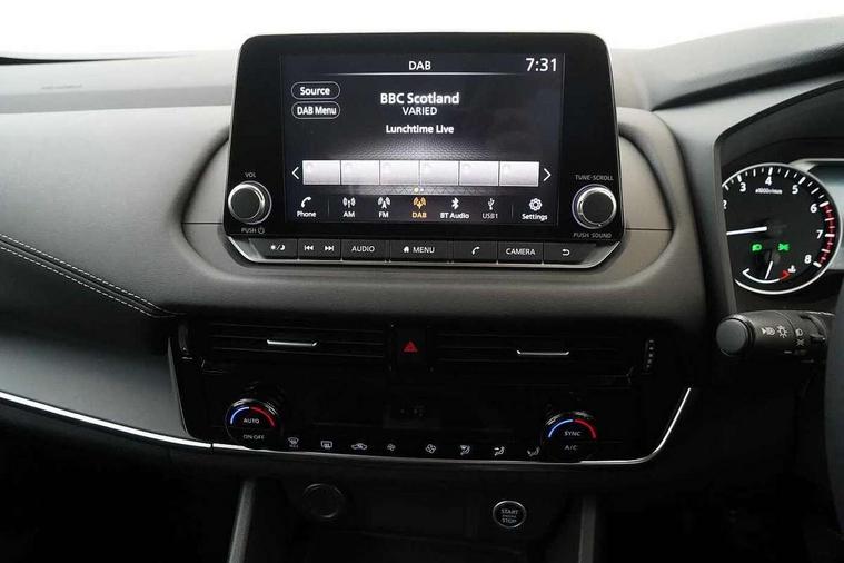 7" High definition full colour TFT screen combimeter, Android auto/Apple CarPlay (Wired), Blind spot warning, Drive modes (sport, normal, eco), Electric speed sensitive power steering, Emergency and breakdown call, Idle stop/start system, Intelligent Cruise control (ICC), Intelligent driver alert system, Intelligent forward collision warning, Intelligent lane intervention, Lane departure prevention, Lane departure warning system, Maximum speed limiter, Nissan connect 8" touchscreen infotainment system, Push button starter, Rear cross traffic alert, Rear parking sensors, Rear view camera, Traffic sign recognition with legal speed adjustment, Trip computer, 6 speakers, AM/FM audio system with DAB, Bluetooth audio streaming, Front USB connections (Type-A and Type-C), Auto dimming rear view mirror, Auto rear wiper when reversing, Automatic hazard signal with emergency stop signal, Body colour mirror caps, Body coloured door handles, Bodyside mouldings, Chrome side window finisher, Door handle with button, Electric auto folding door mirrors, Electrically adjustable and heated door mirrors with LED turn indicator, Follow me home headlights, High beam assist, Intelligent auto headlights, LED daytime running lights, LED Headlights, LED rear lights, One touch front and rear electric windows with remote opening and closing, Partially body coloured bumpers, Rear reversing light (bulb lighting), Rear roof spoiler, Rear side wing doors, Shark fin antenna, Splash free rain sensing wipers, Three blink turn signal, 12v power socket in dashboard and luggage, 2x Rear coat hooks, 3 bench rear seats in 2nd row, 3 rear headrests, 4 folding assist grip, 6-way manually adjustable driver's seat, 60/40 split folding rear seat bench, Centre console storage tray, Chrome interior door handles, Cloth monoform upholstery, Driver and front passenger sunvisors with illuminated vanity mirrors, Driver seat back pocket, Dual zone automatic climate control with pollen filter, Electrically adjustable lumbar support for driver, Front and rear door storage, Front centre console and armrest, Front cupholders x 2, Front door with bottle holders, Glovebox with light, Hard trunk cover, Height adjustable driver's seat, Height adjustable front headrests, Height adjustable passenger seat, Leather steering wheel, Luggage space lighting, Manually adjustable passenger (slide recline + lifter), Multifunction steering wheel, Passenger seat back pocket, Rear armrest with 2 cupholders, Rear door bottle holders, Single front passenger seat, Steering wheel gearshift paddles, Steering wheel switches, Sunglasses holder, Tilt/telescopic adjustable steering wheel, Two rear isofix child seat anchorage points with top tether, 3x3 point rear seatbelt pretensioners + load limiters, ABS with EBD and brake assist, Active brake limited slip, Auto hold function, Child locks on rear doors, Curtain and front side, far side airbags, Driver and passenger airbags, Driver, passenger and 2nd row rear seat belt reminder, Electronic parking brake, Front seatbelt pretensioners + load limiters, Height adjustable front seatbelts, Hill start assist, Intelligent blind spot intervention, Intelligent front emergency braking with pedestrian, cyclist recognition and junction assist, Intelligent rear automatic braking, Tyre pressure monitoring system, Vehicle dynamic control, Capless fuel filler, Engine immobiliser, Intelligent Key, Remote central door locking with deadlocking, Thatcham Cat.1 alarm, Interior instrumental panel A finisher, 17" Alloy wheels, Tyre puncture repair kit,