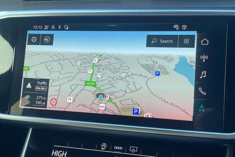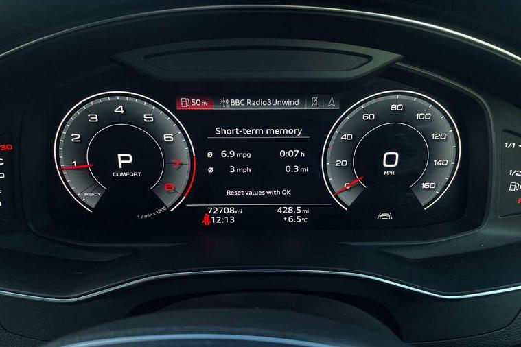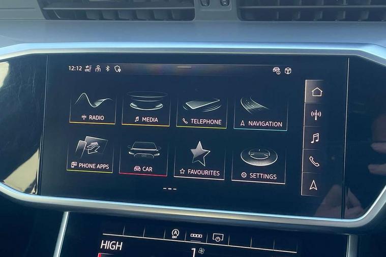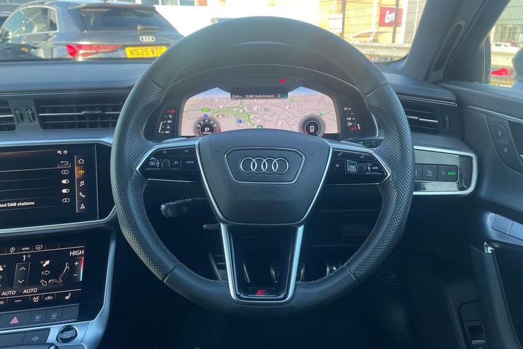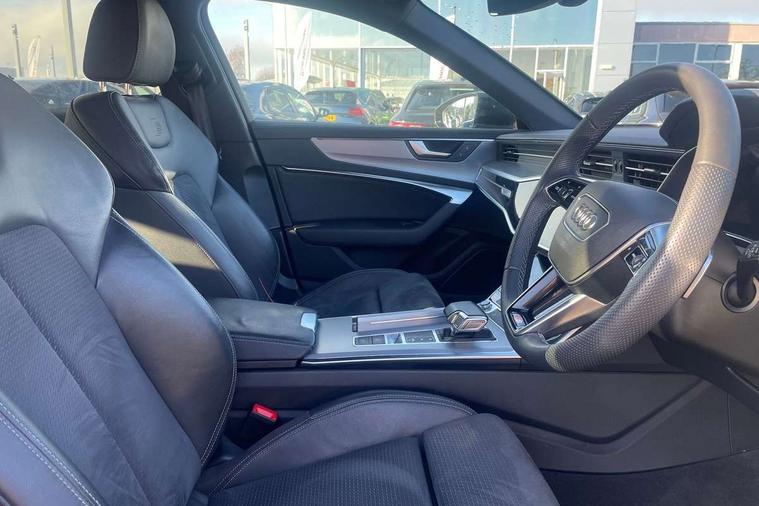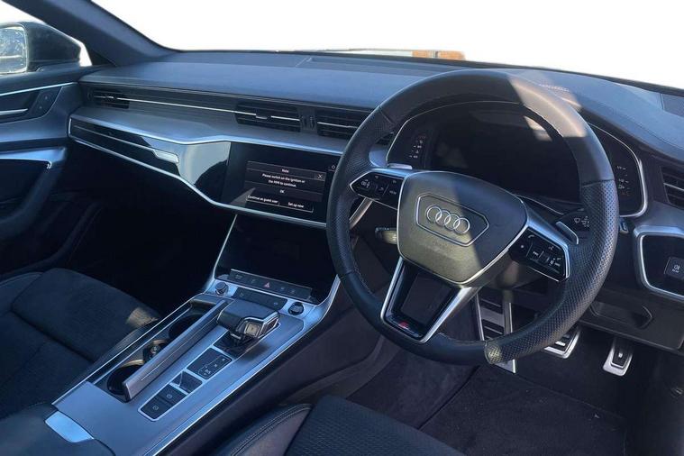 7" high resolution colour driver information display system, Audi connect safety and service (e-call), Audi connect with Amazon Alexa Integration, Audi drive select, Audi parking system plus - acoustic and visual park assist system for front and rear, Automatic start/stop system with coasting functionality, Bluetooth interface, Lane departure warning system, Power operated tailgate, Progressive steering, Rear view camera, Service interval indicator, Smartphone interface includes wireless Apple carplay/Android Auto, Voice control system, Sports suspension, Audi front music interface, Audi sound system, Auxiliary input socket, DAB Digital radio, USB connection, Aluminium roof rails, Body coloured door mirrors, Electric front/rear windows, Frameless auto dimming interior rear view mirror, Front intermittent wipers, Headlight washers, Heat insulating darkened glass in side and rear windows, Heat insulating glass in windshield, LED signature front daytime running light, LED third brake light, Matrix LED headlights, Matt black side air intake grille with inlay in matt aluminium, Privacy glass, Radiator grille in anthracite black matt, single frame in chrome and horizontal struts in matt aluminium silver, Rain and light sensors, Rear side wing doors, Rear wiper, S line air inlet design with inlay in matt aluminium, S Line badge on front fender, S Line front and rear bumpers, S line rear diffuser and grille in matt black with matt aluminium tailpipes, S Line roof edge spoiler, S Line side skirts, Signature rear LED light design, 2 zone deluxe electronic climate control, 4 way electric lumbar support for driver and front passenger, 40/20/40 split folding 3 rear seat bench in 3 parts with rear centre armrest, Black cloth headlining, Black steering wheel insert, Electrically adjustable front seats with driver memory, Front centre armrest, Front head restraints, Heated front seats, Height/reach adjust steering wheel, Illuminated door sill trims with S logo, Illuminated sun visors with vanity mirrors, ISOFIX child seat mounting and Top Tether with front passenger airbag deactivation, Leather gear knob, Luggage compartment system, Perforated leather steering wheel with contrast stitching, Rear headrests, S line front and rear black carpet floor mats with contrast stitching, Single front passenger seat, Stainless steel pedals and foot rest, LED Interior Ambient Lighting Pack - A6, Non smoking pack - A6, Technology pack - A6, 3 point seatbelts on all seats, Airbags - Front side, front and rear including head, Audi pre-sense front, Black seatbelts, EBD - Electronic brakeforce distribution, Electromechanical parking brake, Electronic Stability Control (ESC) including ABS, ASR and EDL, Extended pedestrian protection measures, Manual child proof rear door locks, Seatbelt monitoring, Tyre pressure warning light, Warning triangle and first aid kit, Anti theft alarm with tow away protection, Anti-theft wheel bolts and wheel loosening detection, Immobiliser, Keyless Go, Remote central locking, Matt brushed aluminium dark inlays,