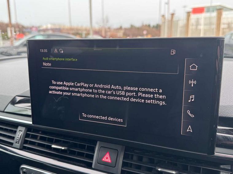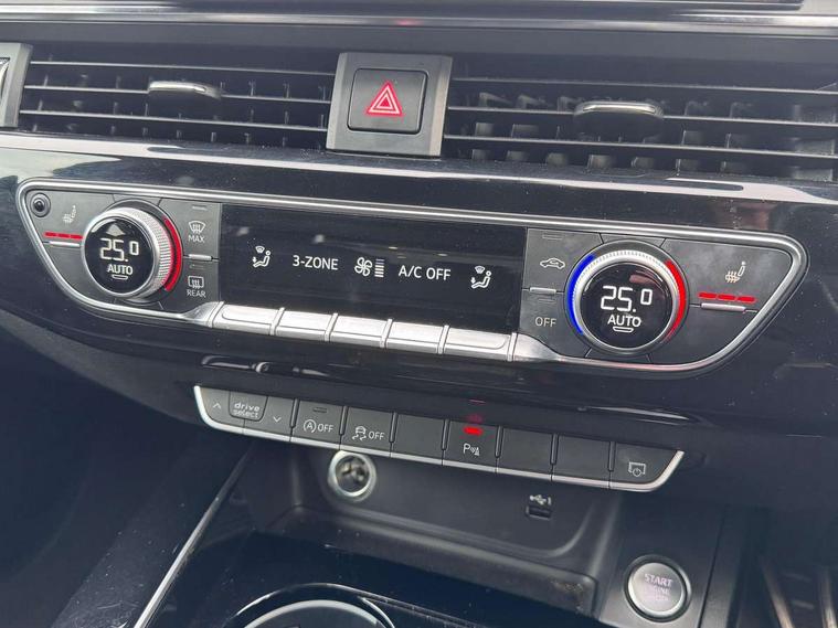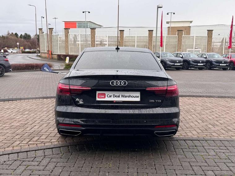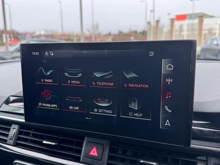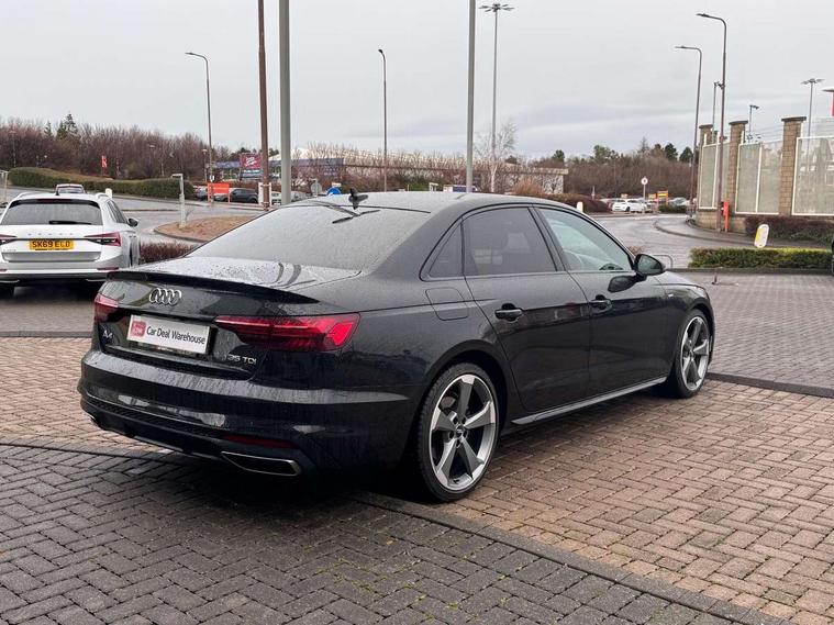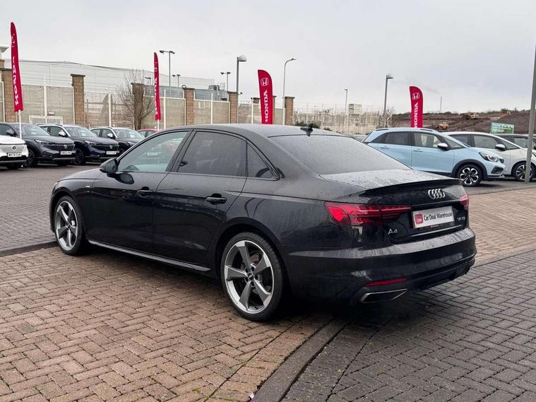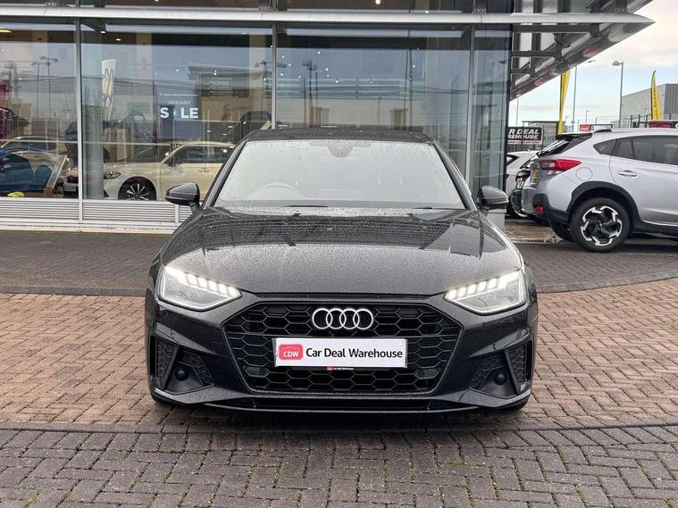 Audi connect safety and service (e-call), Audi drive select, Audi parking system plus with front and rear sensors, Audi smartphone interface, Audi virtual cockpit, Automatic start-stop system with coasting functionality and efficiency programme, Bluetooth interface, Electric boot lid release, Electromechanical power steering, MMI Navigation plus with MMI touch includes 10.1" high resolution colour MMI display, 3D map, Rear view camera, Voice control system, Sports suspension lowered by 23mm, 2 USB charging ports, 8 passive loudspeakers, DAB digital radio reception, Auto dimming rear view mirror, Body colour door handles, Body colour front spoiler lip, Body colour side sill trim, Electrically folding auto dimming/adjustable/heated door mirrors with LED side indicators and kerb view function for passenger side, Grained matt black side air inlets with matt aluminium silver inlay, High beam assistant, LED headlights with LED rear lights + dynamic rear indicators + headlight adjustment and high beam, turning light + LED daytime running lights, Matt aluminium silver tailpipe trim, Privacy glass, Rain and light sensors, S Line badges on the front wings, S line front and rear bumpers with side skirts, S Line rear diffuser in matt titanium black with trim strip in matt aluminium silver, Windscreen with acoustic glazing, 3 spoke flat bottomed high multi-function leather sport steering wheel with gearshift paddles, 4 way electric lumbar support for driver and front passenger, 40/20/40 split folding 3 rear seat bench in 3 parts with rear centre armrest, Black cloth headlining, Black perforated leather gearknob, Contrast stitching on seats, steering wheel and gear lever gaiter, Deluxe 3 zone electronic climate control, Door sill trims with aluminium inlay, Front and rear head restraints, Front centre armrest, Heated front seats, Illuminated door sill trims with S logo, ISOFIX child seat mounting and top tether, Manual seat adjustment, Stainless steel pedals and foot rest, LED Interior light pack - A4/S4, Titanium black styling pack - A4 Saloon, 3 rear seatbelts, 6 airbags - Driver, front passenger, curtain and side windows, Electronic Stabilisation Control (ESC) including ABS, ASR and EDL, Hill hold assist, Multi collision brake assist, Pop-up bonnet for pedestrian protection, Pre sense city, Seatbelt monitoring, Warning triangle and first aid kit, Anti theft alarm, Anti theft wheel bolts, Keyless Go, Piano black finish inlay, 19" 5 arm rotor design alloy wheels titanium matt look, Tool kit, Tyre repair kit,