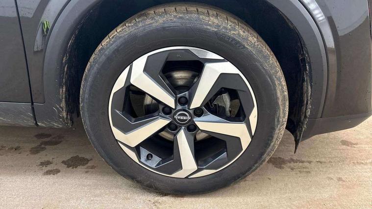 Android auto/Apple CarPlay (Wired), Blind spot warning, Drive modes (sport, normal, eco), Electric speed sensitive power steering, Emergency and breakdown call, Front and rear parking sensors, Full Digital 12.3" TFT Digital Combimeter, Google maps services - search, weather, 3D maps and Google street view, Idle stop/start system, Intelligent around view monitor, Intelligent Cruise control (ICC), Intelligent driver alert system, Intelligent forward collision warning, Intelligent lane intervention, Lane departure prevention, Lane departure warning system, Maximum speed limiter, Moving object detection, Nissan connect 12.3 inch touchscreen infotainment system, Nissan connect navigation, Push button starter, Rear cross traffic alert, Rear view camera, Remote control services - door locks, lights, horn and car locator, Telematics - notifications and connectivity services, TomTom live traffic services, Traffic sign recognition with legal speed adjustment, Trip computer, Virtual personal assistant and firmware over the air capability, Wireless apple carplay, 6 speakers, AM/FM audio system with DAB, Bluetooth audio streaming, Front USB connections (Type-A and Type-C), Rear USB charging only ports (Type-A and Type-C), Auto dimming rear view mirror, Auto rear wiper when reversing, Automatic hazard signal with emergency stop signal, Body colour mirror caps, Body coloured door handles, Bodyside mouldings, Chrome side window finisher, Door handle with button, Electric auto folding door mirrors, Electrically adjustable and heated door mirrors with LED turn indicator, Follow me home headlights, High beam assist, Intelligent auto headlights, LED daytime running lights, LED Headlights, LED rear lights, One touch front and rear electric windows with remote opening and closing, Partially body coloured bumpers, Privacy glass, Rear bumper with graphite insert, Rear reversing light (bulb lighting), Rear roof spoiler, Rear side wing doors, Rear styling plate, Shark fin antenna, Splash free rain sensing wipers, Super UV and infrared cut glass, Three blink turn signal, 12v power socket in dashboard and luggage, 2x Rear coat hooks, 3 bench rear seats in 2nd row, 3 rear headrests, 4 folding assist grip, 6 Luggage hooks - 4 on floor, 2 on side, 6-way manually adjustable driver's seat, 60/40 split folding rear seat bench, Ambient lighting around centre console, Centre console storage tray, Chrome interior door handles, Cloth monoform upholstery, Driver and front passenger sunvisors with illuminated vanity mirrors, Driver seat back pocket, Dual zone automatic climate control with pollen filter, Electrically adjustable lumbar support for driver, Front and rear door storage, Front centre console and armrest, Front cupholders x 2, Front door with bottle holders, Glovebox with light, Hard trunk cover, Height adjustable driver's seat, Height adjustable front headrests, Height adjustable passenger seat, Leather shift knob, Leather steering wheel, Luggage board system, Luggage space lighting, Manually adjustable passenger (slide recline + lifter), Multifunction steering wheel, Passenger seat back pocket, Rear armrest with 2 cupholders, Rear door bottle holders, Single front passenger seat, Soft PVC kneepad, Steering wheel switches, Sunglasses holder, Tilt/telescopic adjustable steering wheel, Two rear isofix child seat anchorage points with top tether, Welcome light and console tray ambient lighting, 3x3 point rear seatbelt pretensioners + load limiters, ABS with EBD and brake assist, Active brake limited slip, Auto hold function, Child locks on rear doors, Curtain and front side, far side airbags, Driver and passenger airbags, Driver, passenger and 2nd row rear seat belt reminder, Electronic parking brake, Front seatbelt pretensioners + load limiters, Height adjustable front seatbelts, Hill start assist, Intelligent blind spot intervention, Intelligent front emergency braking with pedestrian, cyclist recognition and junction assist, Intelligent rear automatic braking, Tyre pressure monitoring system, Vehicle dynamic control, Capless fuel filler, Engine immobiliser, Intelligent Key, Remote central door locking with deadlocking, Thatcham Cat.1 alarm, Interior instrumental panel B finisher, 18" Diamond cut alloy wheels, Tyre puncture repair kit,