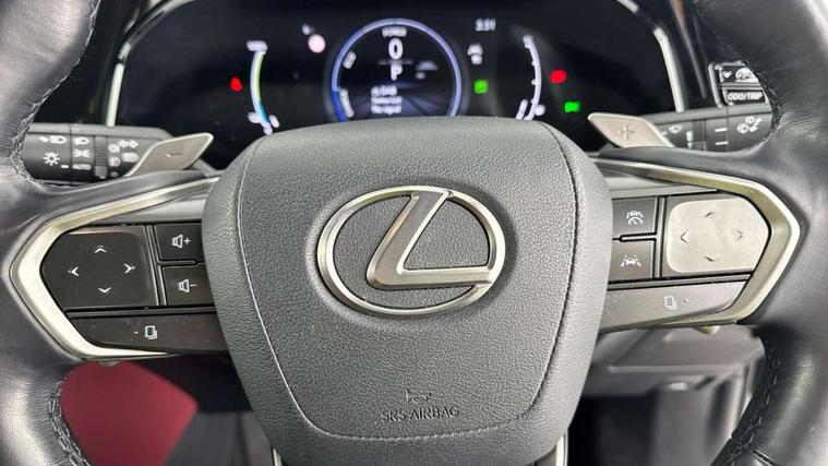 4 driving modes EV/Eco/Normal/Sport, 7" display in instrument binnacle, Blind spot monitoring with rear cross traffic alert, Bluetooth telephone connectivity, eCall emergency system, Electric speed sensitive power steering, Intelligent parking sensors - 4 front and 4 rear, Lane change flasher function, Lexus link connect - Cloud based navigation, cloud based voice assistant, always online and 9.8" VGA touchscreen, Push button starter, Reversing camera with back guidelines, Service interval indicator, Wireless Apple CarPlay and wired Android Auto, Wireless Smartphone charger, 6.6 kW onboard charger, All Wheel Drive (AWD), Hybrid automatic transmission, Vehicle Dynamics Integrated Management (VDIM), Vehicle Stability Control (VSC), 10 speakers, 4 USB ports - 2 front, one USB C, 2 rear USB C, DAB Digital radio, Auto dimming interior rear view mirror, Automatic headlights, Bi LED headlights, Double hidden exhaust pipes, Front and rear one touch power windows, with anti-jam protection, Heated, auto-folding, auto-dimming outside mirrors with reverse tilt function and turn indicators, Illuminated door handles with puddle light, LED brake lights and rear lights with emergency brake signal, LED daytime running lights, LED front fog lights, LED Indicators, Power back door with kick sensor, Privacy glass, rear doors and tailgate, Rain sensor windscreen wipers, Rear side wing doors, Rear wiper, Roof rails, 12V accessory port centre console and luggage compartment, 2 cupholders in front centre console, 2 way electrical lumbar adjustment for driver, 2 x fixed shopping bag hooks in boot, 2 x sun visors with vanity mirror and lamp, 3 seat bench in 2nd row, 4 x tie down hooks in the boot, 6 way manually adjustable front seats, 60/40 split folding rear seat, Adjustable rear seat backrest, Card holder installed in driver and passengers sun visors, Centre armrest with storage box, Dual climate control air conditioning system, Front and rear head restraints, Front and rear textile carpet mats, Front passenger seat, Heated front seats, Heated steering wheel, Leather gear lever, LED interior illumination, Power adjustable leather steering wheel with paddle shifts, Rear centre armrest with 2 cupholders, Tahara leather upholstery, Whiplash Injury Lessening (WIL) feature (active headrest) for seats, 2 x Isofix child rear seat restraints, 3 point ELR front seatbelts with pretensioners, 3x3 point rear seat belts, ABS, Adjustable seat belt anchor points, Driver and front passenger 2 stage airbag, Driver/front passenger side airbags, Drivers knee airbag, E-Latch with safe exit assist, EBD + Brake Assist, ECB (Electronically Controlled Brake System), Electronic parking brake, Front and rear curtain shield airbags, Front center airbag, Front passenger seat cushion airbag, Hill assist control, Lexus safety system - dynamic radar cruise control, pre collision system day and night, lane tracing assist, road sign, automatic high beam, OTA, Manual rear child locks, Passenger airbag cut-off device, Traction control, Tyre pressure warning, 2 x remote key fobs, Anti-theft system with alarm, intrusion sensor, glass breakage sensor, tilt sensor and engine immobiliser, Locking wheel nuts, Smart keyless entry, Speed sensitive auto door locking, Two motion door lock with double lock, VIN Window etching, 3D prism black Inlay, Tyre repair kit,