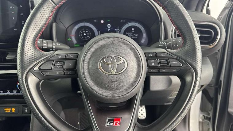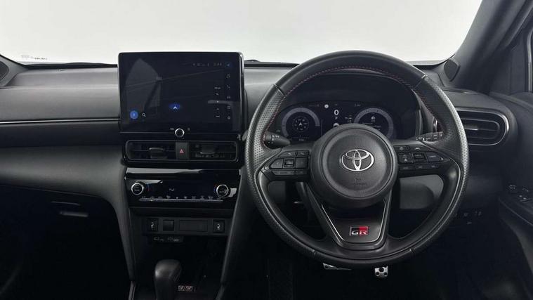 10.5" Multimedia display screen, 10.5" Toyota smart connect+ with navi multimedia system with wireless Smartphone integration incl Apple CarPlay, 12.3" Multi information display screen, Adaptive cruise control, multi info switches on steering wheel, Adjustable speed limiter, Bluetooth connectivity, Color multi-information display, Digital speedometer, Digital tachometer, Drive mode selector, Driver attention alert system, eCall emergency system, Electric power steering, Emergency driving stop system, Full range intelligent adaptive cruise control, Hybrid system indicator, Intersection turn assist, Key reminder warning, Lane trace assist, My T Connected services, Pre-collision system enhanced with emergency steering assist, Reversing camera, Road sign assist - RSA, Static guide lines on reversing camera, Telephone switch on steering wheel, Wireless Mobile Phone Charger, Steering assisted vehicle stability control, 6 speakers, DAB Digital radio, Front USB Type-C connector, Front USB-C device charger, 3rd brake light, Acoustic windscreen glass, Anti-jam protection on power windows, Auto dimming rear view mirror, Auto high beam [AHB] with on/off switch, Auto intermittent windscreen wipers, Automatic headlights, Automatic headlights cut-off, Black door moulding, Black lower front grille, Black protection moulding on side doors, Black rear bumper with diffuser, Black rear under run, Black roof rails, Black wheel arch mouldings, Body colour door handles, Body colour front bumper, Electric adjustable heated door mirrors, Follow me home headlights, Front and rear electric windows with auto up/down function, Gloss black upper front grille, GR Sport meshed lower front grille, GR Sport meshed upper front grille, GR sport scuff plates, Headlight cut off reminder, Indicators integrated on door mirrors, Intermittent rear wiper, LED daytime running lights guide, LED front fog lights, LED front light guide, LED Indicators, LED projector headlights, LED rear lights with sequential indicators, Manual headlight levelling, Noise reduction layer on windscreen, Privacy glass, Rain sensor, Rear side wing doors, Rear spoiler, Rear window defogger, Shark fin antenna, 12v power outlet - front, 12V power point in boot, 2x Rear coat hooks, 3 seat bench in 2nd row, 3 Spoke GR Sport leather steering wheel, 40/60 split deckboard, 40:20:40 split folding rear bench seat, Adjustable rear headrests, Adjustable speed limiter switch on steering wheel, Black roof lining, Boot light, Driver and front passenger personal lights, Driver and front passenger Whiplash injury Lesseing seats, Driver and passenger seatback pockets, Dual zone automatic air conditioning, Fabric door trim, Front console box, Front cup holders, Front door pockets, Front head restraints, Front sport seats, Front/rear assist grips, Gear shift indicator, GR sport floor mats, Heated driver and passenger seats, Height adjustable driver's seat, Height adjustable front passenger seat, Hooks for luggage holding belts, ISOFIX child restraint system, Lane departure alert switch on steering control, Leather gearshift, LED centre room light, Light on driver and passenger sun visor, Manual telescopic and tilting steering wheel, Mirror on driver and passenger sun visor, Nanoe-X air purifier, Pollen air filter, Power adjustable lumbar support on driver seat, Rear cup holders, Rear door pockets, Rear head restraints, Remote air-conditioning system, Single compartment glovebox, Single front passenger seat, Soft tonneau cover, Storage box under boot floor, Ultra suede cloth upholstery, Voice recognition switch on steering wheel, White ambient lighting in centre console, White ambient lighting in footwell, White ambient lighting on front doors, 3x3 point rear seat belts, ABS+EBD+Brake assist, Driver and passenger central airbags, Driver and passenger front airbags, Driver and passenger side airbags, Electronic parking brake, Emergency brake light system (EBS), Front seat belt reminder, Hill start assist control (HAC), Passenger airbag on/off switch, Pre-collision system with pedestrian and cyclist detection, Rear door child safety locks, Rear passenger side airbags, Rear seat belt reminder, Traction control, Tyre pressure warning system, Immobiliser, Intrusion alarm, Keyless smart entry with push button start, Power door locks, Power passenger window lock, Remote door lock, Tyre repair kit,