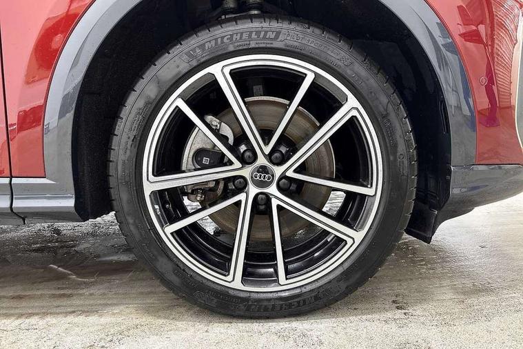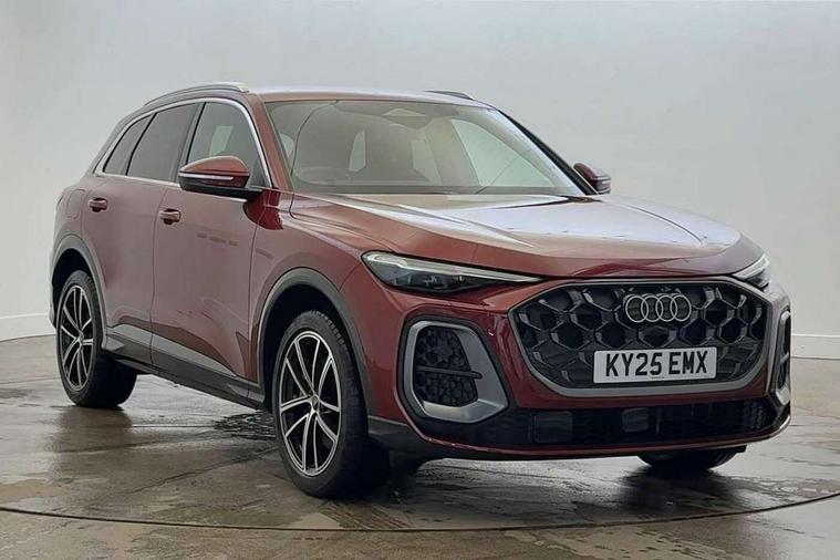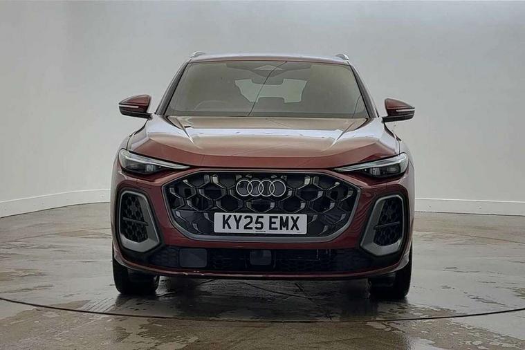 Adaptive cruise assist plus with steering intervention, Advanced driver attention alert, Audi application store, Audi connect emergency call and service, Audi digital key, Audi drive select, Audi smartphone interface, Audi virtual cockpit plus with 11.9" OLED colour display, Camera based traffic sign recognition, Fatigue monitor, Front cross traffic intersection assist, Garage door opener, Lane change assistant with exit warning system, rear cross traffic alert and rear turn assist, Lane departure warning with emergency assist, MMI 10.9" front passenger touch display, MMI navigation plus with high resolution 14.5" OLED touchscreen colour display, Park assist plus, Parking system plus with 360 display, PAS, Reversing camera, Swerve assist and turn assist, Top view camera, Traffic sign based speed limiter, Adaptive air suspension, 2 USB-C ports in both the front and rear, DAB Digital radio, Smartphone compartment with wireless charging, Acoustic glass for front door windows, Active digital light signatures - Six additional combinations of active daytime running light signature, Aluminium roof rails, Auto dimming rear view mirror, Body coloured door mirrors, Coming/leaving home lighting function, Digital OLED tail lights including communication light, Electrically adjustable heated and folding + automatically dimming exterior mirrors, Front and rear electric windows, Front door sill trims with aluminium inlays, illuminated with 'S' logo, Grill frame, inlay and front air inlets in matt anthracite chrome, Headlight cleaning system, Heated rear window, High beam assist, High gloss window surrounds, Logo projection light in exterior mirrors, Matrix LED headlights, Privacy glass, Projection third brake light for rear window in LED, Radiator grille in phantom black, Rear and side windows with heat insulating glass, Rear honeycombe grille in matt black with inlay in matt anthracite chrome, Rear side wing doors, Rear wash/wipe, S Line badge on the front wings, S line bumpers in contrasting Volcano grey metallic paint finish, Towbar preparation, Windscreen with acoustic glazing, 3 rear head restraints, 3 seat bench in 2nd row, 3 spoke leather steering wheel with multi-function buttons with touch control, flattened on top and bottom, with S badging and contrast stitching, 4 way electric lumbar support for driver and front passenger, 40:20:40 split folding rear seat bench with centre armrest and cup holders, Comfort centre armrest front, Deluxe 3 zone electronic climate control, Electric steering wheel adjustment, Electrically adjustable front seats with memory function for driver's side, Front and rear floor mats, Front sport seats with integrated head restraints, Headlining in black cloth, Heated front seats, Heated outer rear seats, Heated steering wheel, i-Size child seat mounting on the front passenger side and outer rear seats, i-Size and top tether on the outer rear seats, Interior trim in aluminium look, Luggage compartment lid, electrically opening and closing, Single front passenger seat, Softwrap in leatherette, Stainless steel pedals and footrest, Steering wheel grips in perforated leather and shift paddles, Twin leather upholstery, Ambient lighting package plus - Q5, Sound and Vision pack - Q5, Storage and luggage compartment pack - Q5, Vanadium pack - Q5, 3x3 point rear seatbelts, ABS, Acoustic vehicle alerting system, Convenience key with safelock, Driver and front passenger airbag with passenger airbag deactivation, Electric child safety locks, First aid kit with warning triangle and high visibility vests, Front emergency brake assist, Front side airbags with head airbag system and front interaction airbag, Hill hold assist, Occupant detection in rear seat area, Proactive passenger protection system for front, sides and rear, Side airbags in front and rear with head airbag system and front interaction airbag, Tyre pressure loss indicator, Anti theft alarm, Anti-theft wheel bolts, Remote control key with SAFELOCK and keyless go, Anthracite matt brushed aluminium inlays with linear embossing, Black dashboard with contrast stitching, Steel grey seat stitching, Upper and lower interior elements in artificial leather, 20" 5 twin spoke black metallic, gloss turned finish Audi Sport alloy wheels, Tyre repair kit,