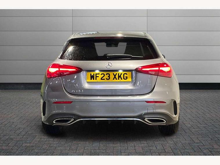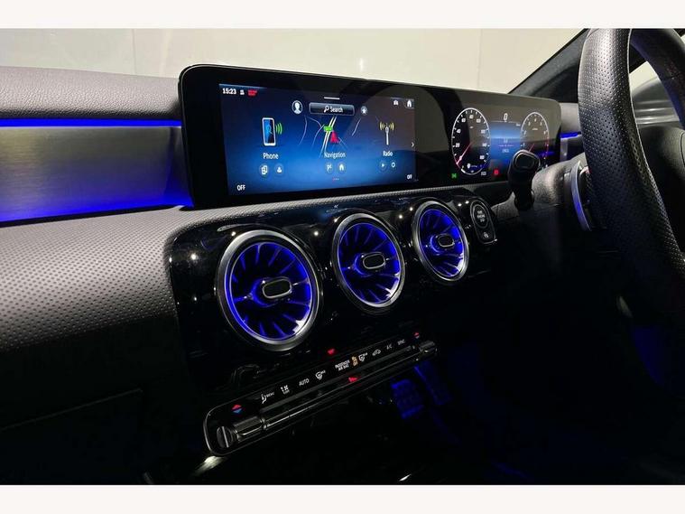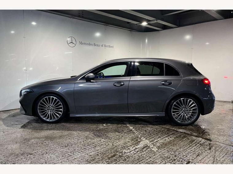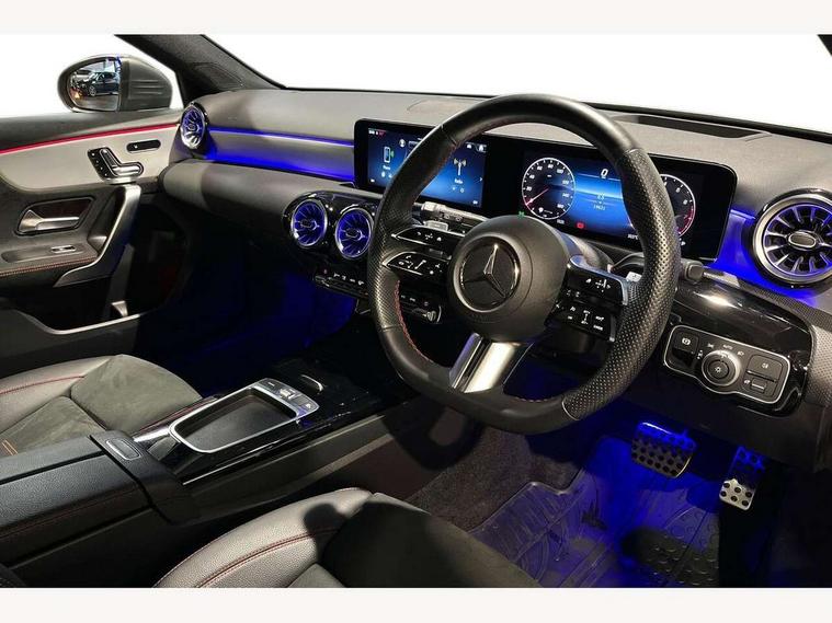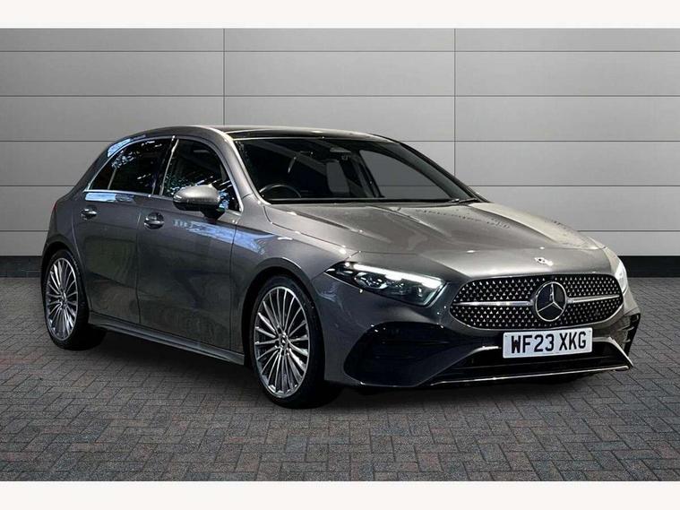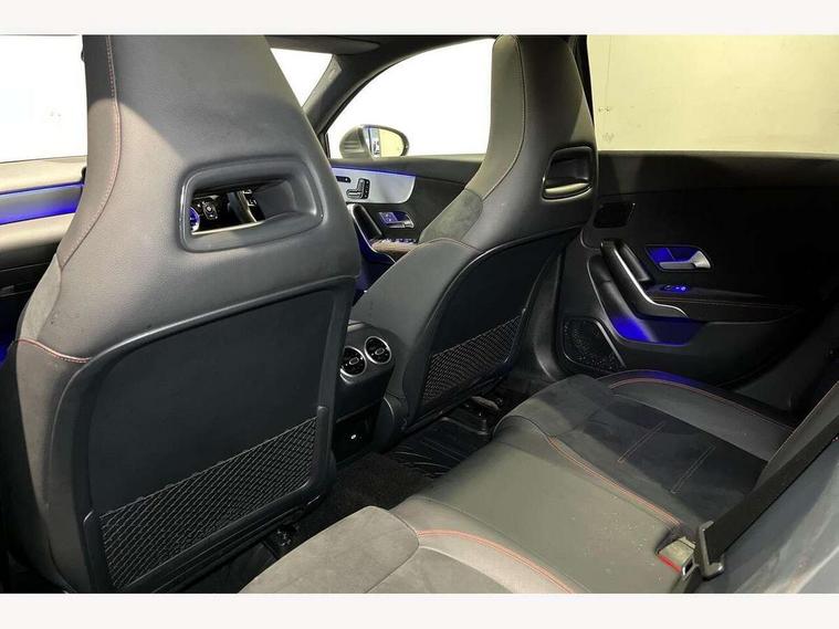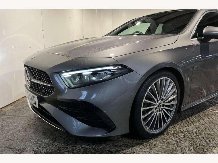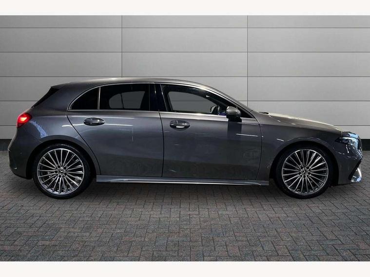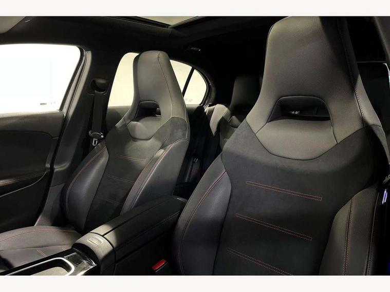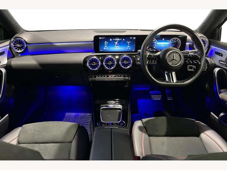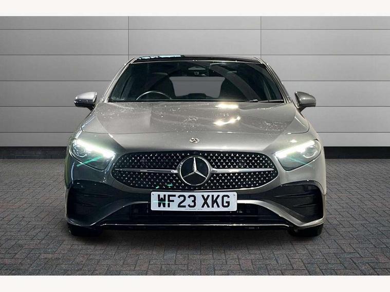 10.25 inch touchscreen central media display, 10.25" Digital instrument cluster display screen, Attention assist, Brake pad wear indicator warning light, Car wash mode, Cruise control + speed limiter, Direct steering, Direction indicators with lane change function, Dual bluetooth interfaces, DYNAMIC SELECT with a choice of driving modes (ECO, Comfort, Sport and Individual), Easy pack tailgate hands-free access, ECO start/stop function, Engine start/stop button, Fluid level warning indicator for fuel, oil, coolant and washer fluid, Hard-disk navigation, Head up Display, Hey Mercedes Voice activation, Lamp failure indicator, MBUX augmented reality for navigation, MBUX Interior assistant, Mercedes me connect including emergency call system, accident recovery, breakdown and maintenance management, Mercedes me remote services, Outside temperature gauge, Owners manual in English, Pre-installation of private car share, Preinstallation for Mercedes Benz link, Remote boot closing, Service indicator (ASSYST), Smartphone integration with Apple CarPlay and Android auto, Speed sensitive power steering, Trip computer in multifunction display with current consumption indicator, Wireless charging, Lowered comfort suspension, DAB Digital radio, MBUX multimedia system, Mercedes Benz advanced sound system (225 W) with 10 speakers, 1 central speaker, speakers on doors, a tweeter on door, one sub woofer + boost amplifier, 4 Electric Front and Rear windows, Adaptive brake lights, AMG body styling - AMG front apron with front splitter and AMG rear apron and visible exhaust tailpipe trim elements, Body colour bumpers, Body colour door handles with chrome inserts, Body colour side skirt, Body coloured door mirrors, Chrome beltline strips, Diamond radiator grille with pins in fine star pattern, Electric adjustable and heated door mirrors with integrated LED side indicators, Exhaust system with 2 visible tailpipe trim elements and rear apron, Headlamp assist automatic headlamp activation, Heat insulating dark tinted rear and rear side windows, Heated glass rear windscreen + timer control, LED daytime running lights, LED High level third brake light, LED tail lamp, Multibeam LED headlamps with adaptive highbeam assist and cornering function, Panoramic sliding sunroof, Privacy glass, Radio aerial, Rain sensing windscreen wipers with two sensitivity settings, Rear fog lights, Rear side wing doors, Rear windscreen wiper, Window line trim strip in chrome, 3 seat bench in 2nd row, 3 Spoke flat bottom leather multi function steering wheel with perforated leather in grip area, 40:20:40 split folding rear seats, AMG floor mats, Automatic child seat recognition sensor, Black air vents with surround in silver chrome, Black roof lining, Brushed stainless steel sports pedals with rubber studs, Electrically adjustable front memory seats including lumbar support and backrest inclination, Front centre armrest with stowage, Front seat backs luggage nets, Galvanished gear shift paddles on steering wheel, Heated front seats, Height/reach adjustable steering column, Illuminated Mercedes Benz lettering front door sills with changeable cover, Interior lighting - 64 colour Ambient lighting, Interior mirror with reading lamps in black and frameless, Rear armrest with 2 cupholders, Seat occupancy sensor for front passenger seat, Single front passenger seat, Sports seats with integrated headrests, Stowage compartment in centre console with retractable cover, Sunvisors with illuminated vanity mirrors, Twin front cupholders, Two zone thermotronic luxury automatic climate control, Light and sight pack - A Class, Mirror package - A Class, Parking pack with 360 degree camera - A Class, Seat comfort pack - A Class, USB pack plus - A Class, 3 rear 3 point seatbelts, ABS with Brake Assist, Active bonnet, Adaptive brake assist with hold function and hill start assist, Black seatbelts, Bonnet with power domes, Childproof locks manually operated for rear doors and electrically operated for rear power windows, Crash responsive emergency lighting, Driver and passenger head and side airbags, Drivers knee airbag, Dual stage driver/passenger airbags, Electronic parking brake, ESP curve dynamic assist, ESP with ASR, Exit warning, Front and rear seatbelt reminder, ISOFIX and top tether child seat fixing points in two outer rear seats, Tyre pressure monitoring system, Warning triangle and first aid kit, Window airbags, Alarm system/interior protection/immobiliser, Guard 360 degree vehicle protection, Keyless entry lock/unlock, Keyless Go, Remote central locking and crash sensor with emergency opening function, Light longitudinal grain aluminium trim, 19" AMG multi-spoke light alloy wheels, aerodynamically optimised, painted in titanium grey with high sheen finish, Summer tyres, Tirefit sealant kit,