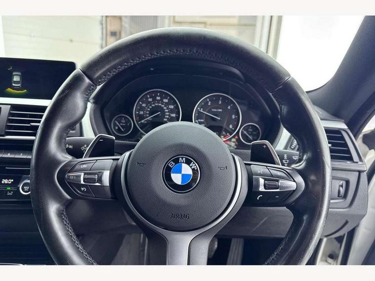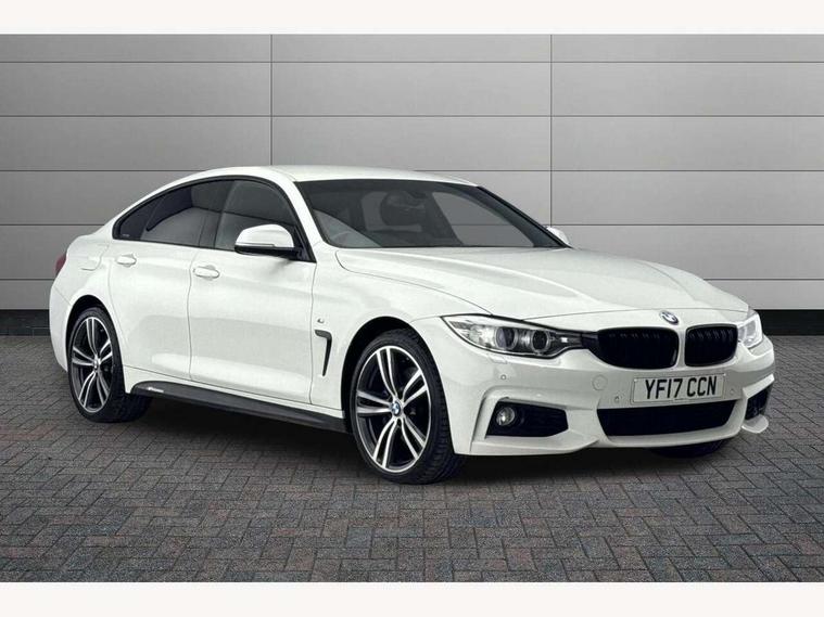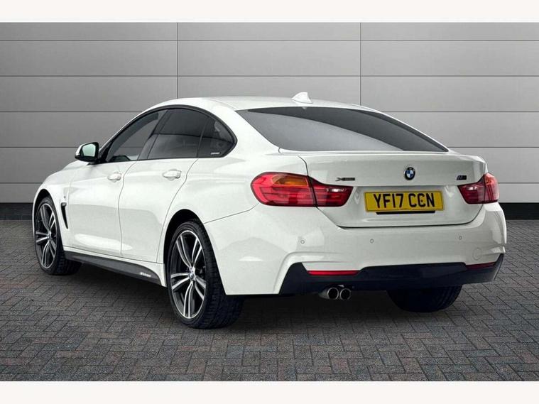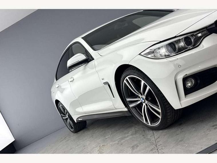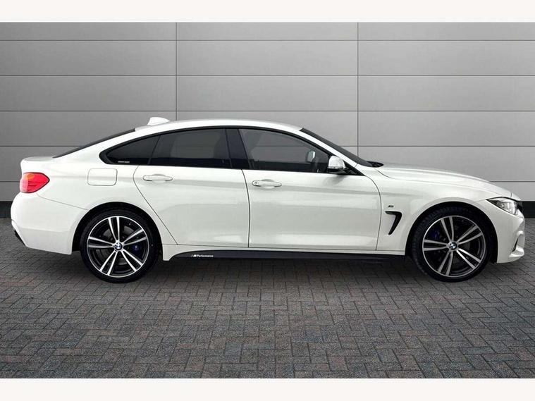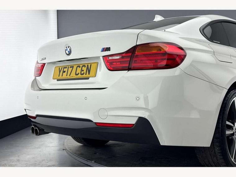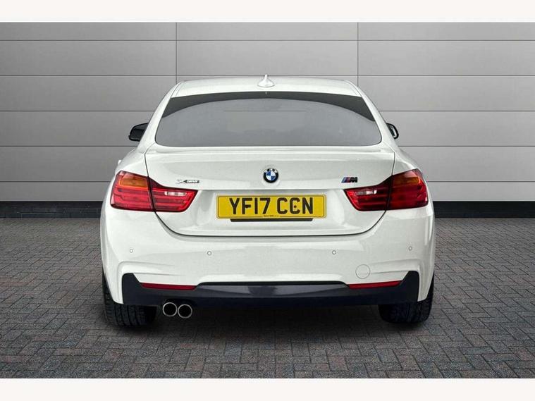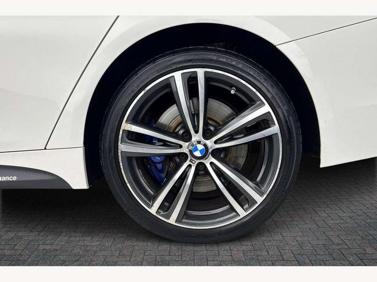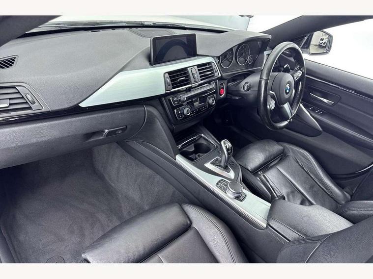 Automatic tailgate opening, BMW Online services, BMW Teleservices, Brake pad wear indicator warning light, Check control system, Door/boot open warning, Front/rear Parking distance control, Lights on warning, Oil temperature gauge, On board computer, Outside temperature display, Run flat indicator, Service interval indicator, Stop/start button, Diesel particulate filter, Drive Performance Control, Electronic differential lock, Sports function on gearbox with steering wheel mounted gearshift paddles, Bluetooth audio streaming, BMW professional radio/CD/MP3, DAB Digital radio, 2 speed adjustable intermittent wipers with wash/wipe function, Auto dimming rear view mirror, Body colour bumpers, Body colour door handles, Body colour door mirrors, Body colour roof mouldings, Chrome kidney grille with black vertical slats, Door sill finishers, Dual chrome exhaust, Electric adjustable heated door mirrors, Electric front and rear windows with fingertip open/close + anti-trap all round, Follow me home headlights, Headlight range control, Heat insulating tinted glass, Heated windscreen washer jets, High gloss shadow line, LED daytime running lights, LED front fog lights, LED tail lights, M aerodynamic bodystyling, Rain sensor including auto headlights activation, Welcome lighting, Windscreen with grey shadeband, 12V sockets in front centre console and passenger footwell, 3 spoke leather M sport multifunction sports steering wheel, 4 grab handles, Anthracite headlining, Anthracite Velour floor mats, Dual zone climate control, Folding front centre armrest with storage compartment, Folding storage compartment with glasses holder + coin tray, Front cupholders x 2, Front door storage with bottle holder, Front head restraints, Front sports seats with electric side bolster adjustment, Front/rear armrests within door panels, Glovebox with lid, Heated front seats, Integrated rear head restraints, ISOFIX child seat preparation+airbag deactivation, Lashing eyelets in boot, Leather gearknob, Leather handbrake grip, Reach + rake adjustable steering column, Rear centre armrest with 2 cupholders, Toolkit located in luggage compartment, Extended lights package - 4 Series, 3 point seatbelts on all seats, ABS/EBD, Automatic Stability Control (ASC), BMW emergency call, Brake assist function, Cornering brake control (CBC), Crash Sensor - activates hazard/interior lighting + unlocks doors, Driver seatbelt warning indicator, Driver/Front Passenger airbags, DSC+, Dynamic brake control, Dynamic Traction Control - DTC, Front seatbelt force limiters, Front seatbelt pretensioner, Front side airbags, Hill start assist, ITS head airbags for front/rear, Side impact protection, Tyre pressure monitor, Warning triangle and first aid kit, Drive away door locking, Electronic immobiliser, Remote central locking, Remote control Thatcham category 1 alarm, Run flat tyres,