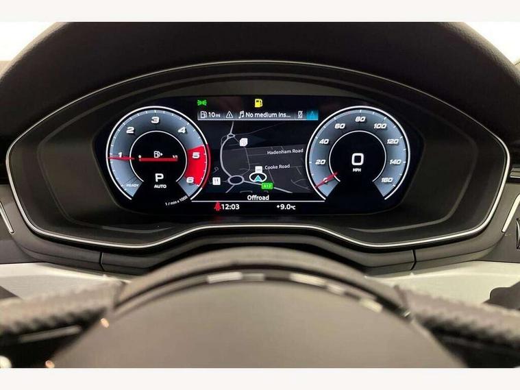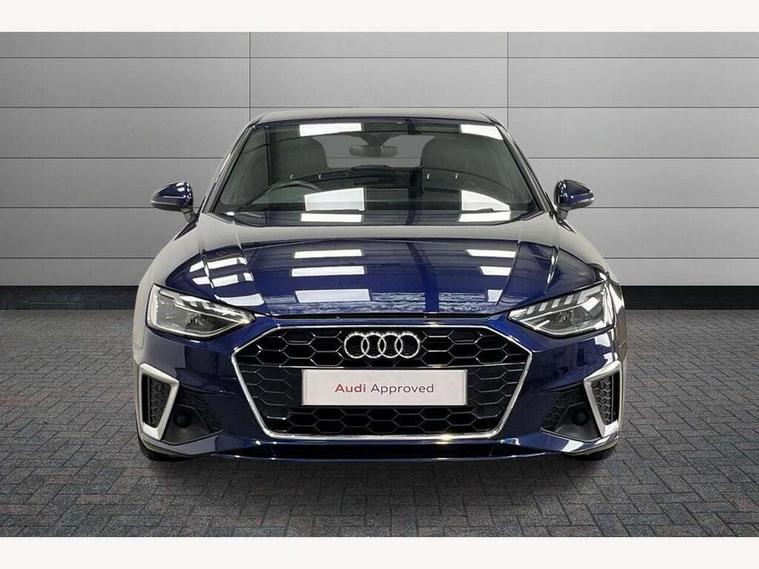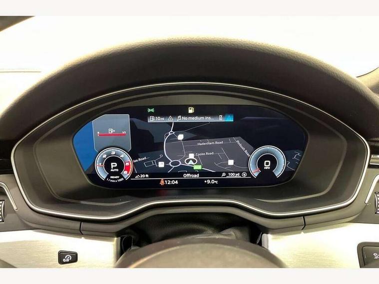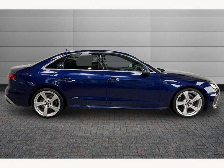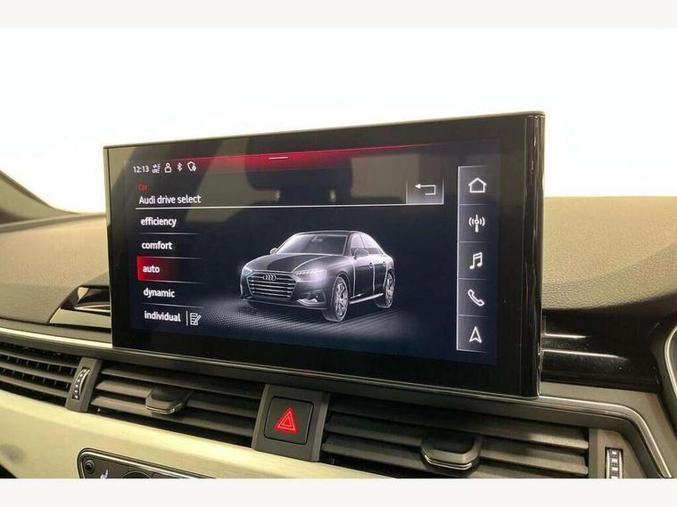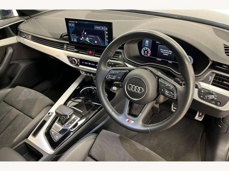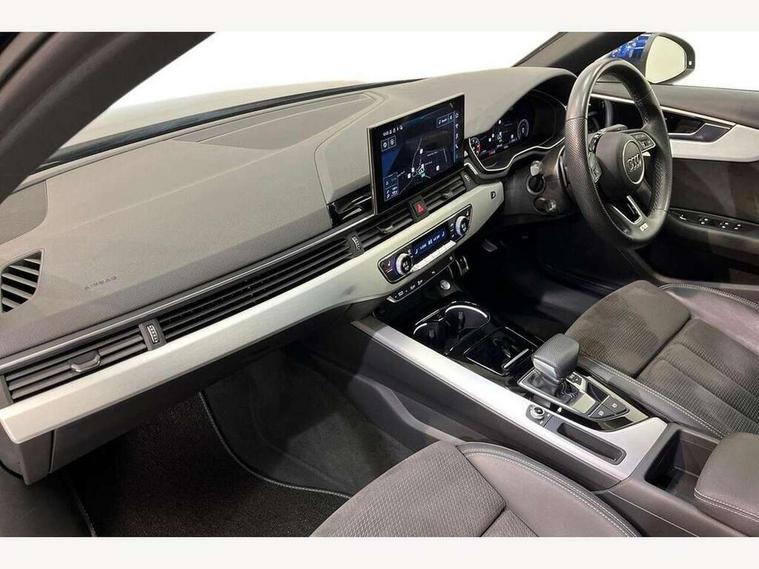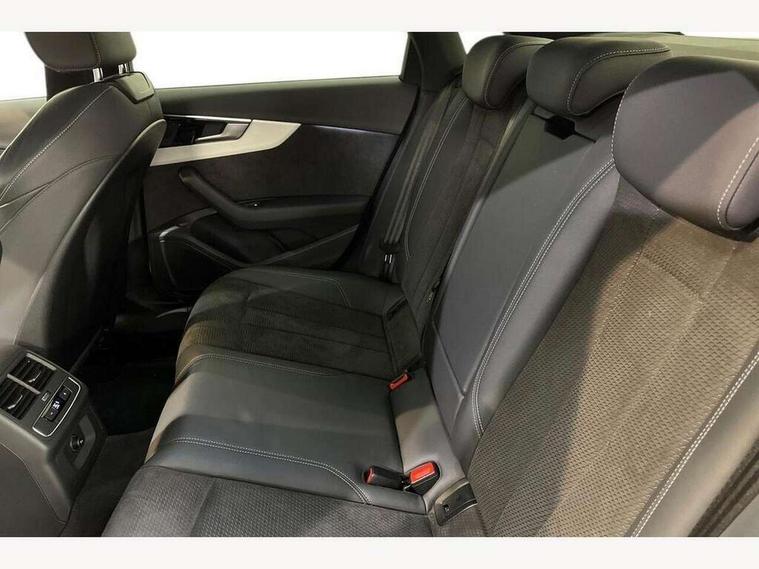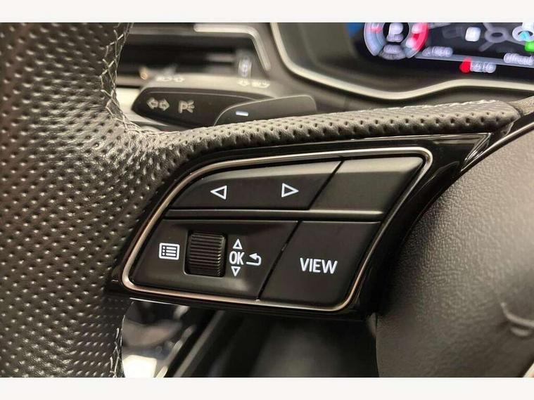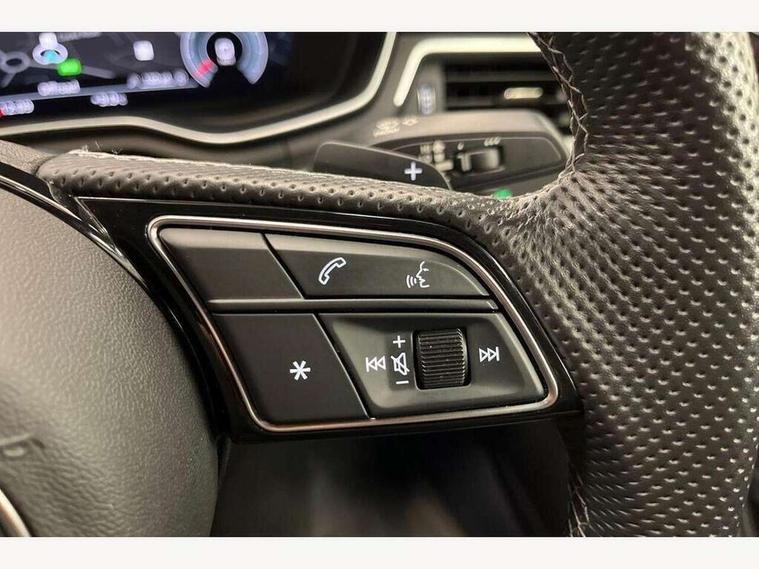 Audi connect safety and service (e-call), Audi connect with Amazon Alexa Integration, Audi drive select, Audi parking system plus with front and rear sensors, Audi smartphone interface, Audi virtual cockpit, Automatic start-stop system with coasting functionality and efficiency programme, Bluetooth interface, Electric boot lid release, Electromechanical power steering, Email, calendar and text messages displayed via MMI, MMI Navigation plus with MMI touch includes 10.1" high resolution colour MMI display, 3D map, Rear view camera, Voice control system, Sports suspension lowered by 23mm, 2 USB charging ports, 8 passive loudspeakers, DAB digital radio reception, Auto dimming rear view mirror, Body colour door handles, Body colour front spoiler lip, Body colour side sill trim, Body coloured door mirrors, Electrically folding auto dimming/adjustable/heated door mirrors with LED side indicators and kerb view function for passenger side, Grained matt black side air inlets with matt aluminium silver inlay, High beam assistant, Honeycomb structure radiator grille in grained matt black, LED headlights with LED rear lights + dynamic rear indicators + headlight adjustment and high beam, turning light + LED daytime running lights, Matt aluminium silver tailpipe trim, Privacy glass, Rain and light sensors, S Line badges on the front wings, S line front and rear bumpers with side skirts, S Line rear diffuser in matt titanium black with trim strip in matt aluminium silver, Windscreen with acoustic glazing, 4 way electric lumbar support for driver and front passenger, 40/20/40 split folding 3 rear seat bench in 3 parts with rear centre armrest, Black cloth headlining, Black perforated leather gearknob, Contrast stitching on seats, steering wheel and gear lever gaiter, Deluxe 3 zone electronic climate control, Door sill trims with aluminium inlay, Front and rear head restraints, Front centre armrest, Heated front seats, Illuminated door sill trims with S logo, ISOFIX child seat mounting and top tether, Manual seat adjustment, Stainless steel pedals and foot rest, Tool kit, High gloss package - A4, LED Interior light pack - A4/S4, 3 rear seatbelts, 6 airbags - Driver, front passenger, curtain and side windows, Electronic Stabilisation Control (ESC) including ABS, ASR and EDL, Hill hold assist, Multi collision brake assist, Pop-up bonnet for pedestrian protection, Pre sense city, Seatbelt monitoring, Warning triangle and first aid kit, Anti theft alarm, Anti theft wheel bolts, Keyless Go, Matt brushed aluminium inlays, Tyre repair kit,