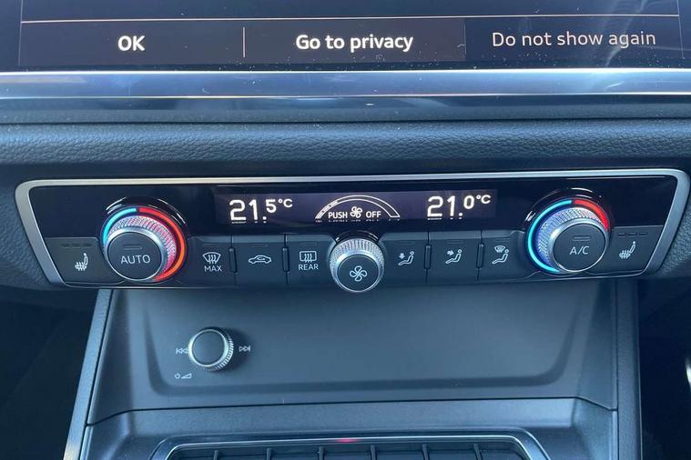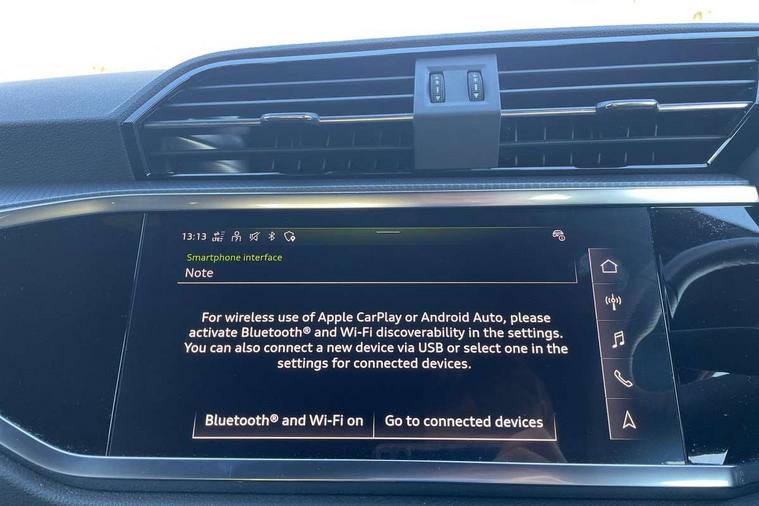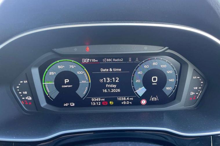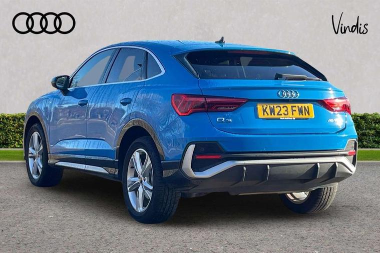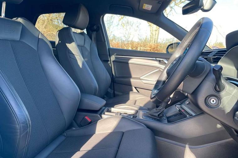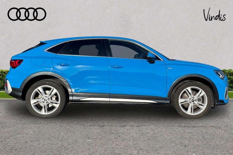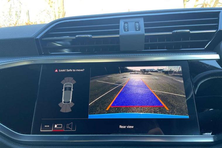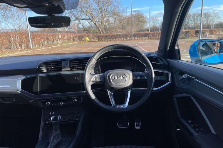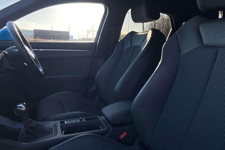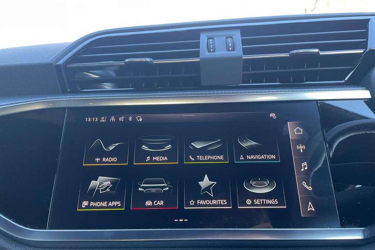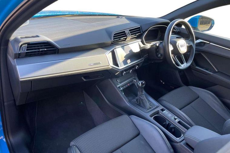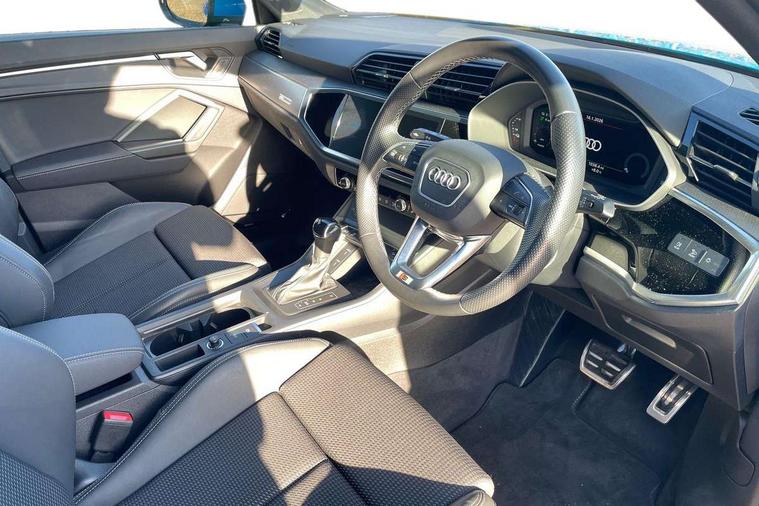 Audi drive select, Audi lane departure warning, Audi Virtual Cockpit - 10.25" display, Bluetooth interface, Camera based traffic sign recognition, Legal emergency call, MMI Navigation Plus with high resolution 10.1 inch touchscreen colour display, Power operated tailgate, Progressive steering, Service interval indicator, Smartphone interface includes wireless Apple carplay/Android Auto, Start stop system with recuperation, Voice control system with natural language interaction, 3 pin 10 amp domestic charging cable, 3.6 kw On-board charger, Standard suspension, Type 2 mode 3 32 amp charging cable, Type 2 socket for AC charging, 2 USB-C ports with charge and data functions, 6 passive loudspeakers, DAB digital radio module, Acoustic windscreen, Aluminium window trim, Auto dimming frameless rear view mirror, Diffuser grille in grained matt black, Diffuser trim in selenite silver, Electrically folding, adjustable and heated door mirrors with integrated LED side indicators and kerb view function for passenger side, Front and rear electric windows, Front fog lights, Front side air inlets in selenite silver, Front underbody protection in manhattan grey paint finish, Grille surround in aluminium silver matt, High gloss black finish B and C pillars, LED Dynamic rear indicators, LED headlights with LED daytime running lights, LED rear lights, LED third brake light, Privacy glass dark tinted rear and rear-side windows (from B-pillar backwards), Radiator grille in anthracite black with inlay in matt aluminium silver, Rain and light sensors, Rear side wing doors, Rear underbody protection in matt black, Rear wiper, S line badges on front wings, S line front and rear bumpers and side skirts in contrasting Manhattan grey paint finish, Side skirt insert in matt Platinium grey, Variable front intermittent wipers, 12V socket in rear centre console, 3 seat bench in 2nd row, 3 spoke leather multifunction steering wheel features S badging and grips in perforated leather with contrast stitching, 40:20:40 folding with manual adjustment for 60:40 forwards/backwards position and backrest angle, Adjustable rear seat bench/backrest with centre armrest and cupholder, Black cloth headlining, Dual zone electronic climate control, Front and rear black floor mats with contrast stitching, Front and rear headrests, Front and rear roof module including reading lights, Front centre armrest, Glove compartment lighting, Height and reach adjustable steering wheel, Illuminated door sill trims with S logo, ISOFIX child seat mounting for front passenger with airbag deactivation and outer rear seat including top tether attachment point for outer rear seats, Luggage compartment light right in white, Luggage compartment sill protection in stainless steel, Manual front seats with height adjustment, Perforated leather gearknob, Single front passenger seat, Stainless steel pedals, Ambient lighting pack - Q3, Non smoking pack - Q3, 3x3 point rear seatbelts, 6 airbags - Driver, front passenger, curtain and side windows, Audi pre-sense front with pedestrain and cyclist recognition, Electrically operated child locks on rear doors, Electromechanical parking brake, Electronic stabilisation control including ABS, ASR and EDL, Front seatbelt reminder, Hill descent control, Hill hold assist, Pre sense basic, Seatbelt monitoring, Tyre pressure warning, Warning triangle and first aid kit, Anti theft alarm, Anti theft wheel bolts, Immobiliser, Remote central locking, Aluminium look interior elements, Black dashboard, Dark matt brushed aluminium inlay, Detail dashboard around MMI touch colour display in glass look, black with surround in aluminium look, Leatherette door armrest, Tool kit, Tyre repair kit,
