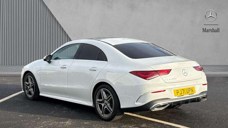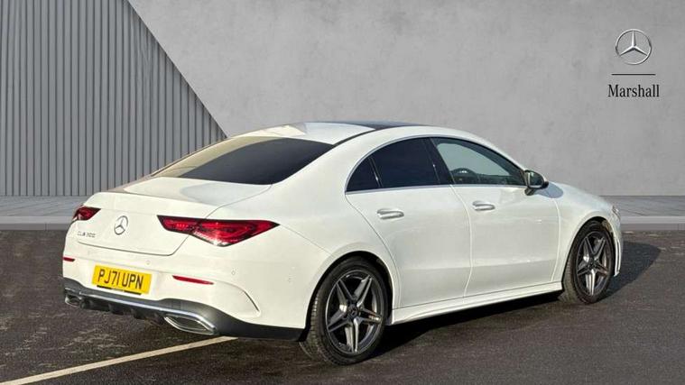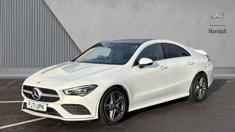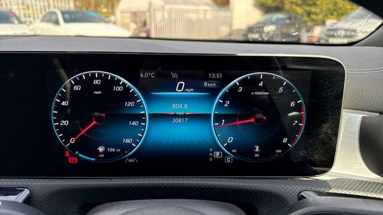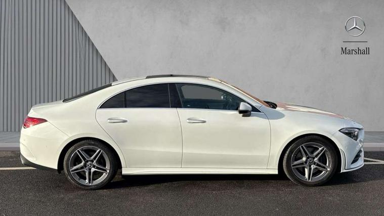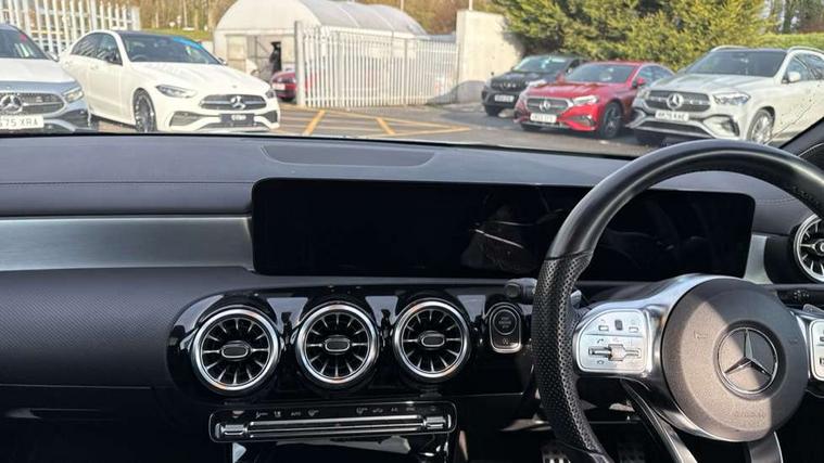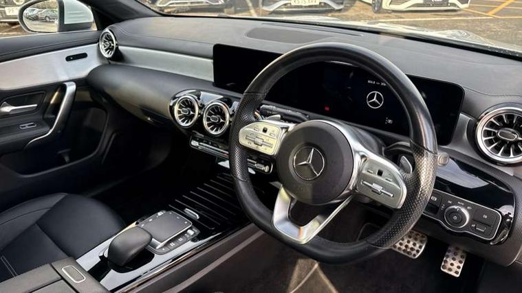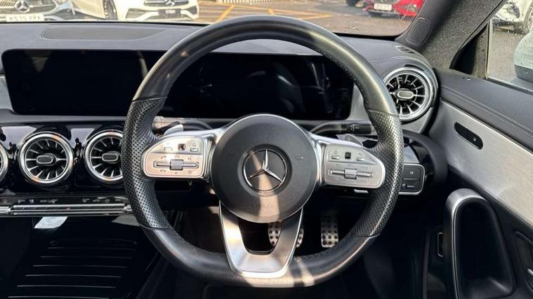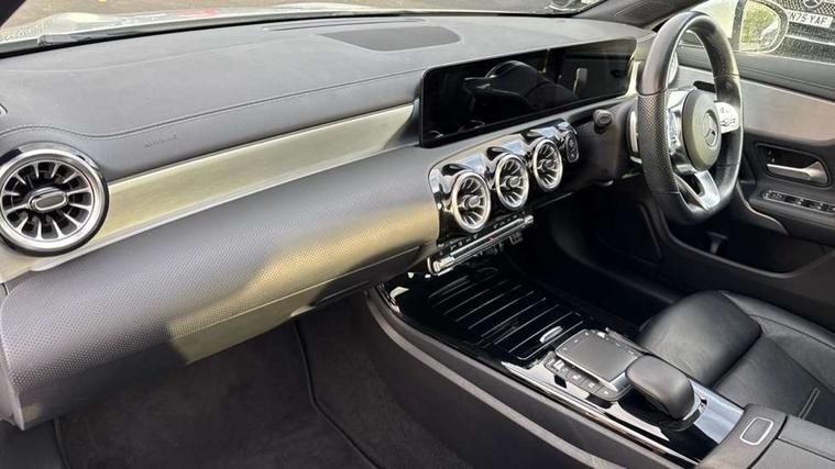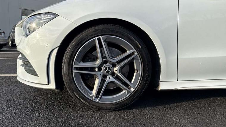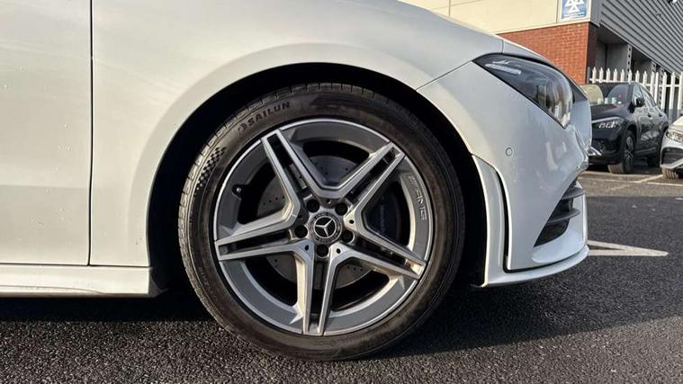 10.25 inch Instrument display with digital cockpit, 10.25 inch touchscreen central media display, Attention assist - Monitors steering behaviour and long journey fatigue, Bluetooth connection, Car wash mode, DYNAMIC SELECT with a choice of driving modes (ECO, Comfort, Sport and Individual), ECO start/stop function, Fluid level warning indicator for fuel, oil, coolant and washer fluid, Hard-disk navigation, Hey Mercedes Voice activation, Lamp failure indicator, Mercedes me connect including emergency call system, accident recovery, breakdown and maintenance management, Mercedes me remote services, Outside temperature gauge, Owners manual and service booklet in English, Pre-installation of private car share, Preinstallation for Mercedes Benz link, Radio aerial integrated into front and rear windshields, Service indicator (ASSYST), Smartphone integration with Apple CarPlay and Android auto, Traffic sign assist, Trip computer in multifunction display with current consumption indicator, 7G-DCT 7 speed automatic transmission, Lowered comfort suspension, Rear axle multi-link, DAB digital radio tuner, MBUX multimedia system with DAB digital radio and touchpad including satellite navigation, Mid-range sound system, USB (type C) ports (2) in stowage compartment and 1 in front of centre console, Adaptive brake lights, AMG body styling with AMG front apron and rear apron and visible exhaust tailpipe in chrome trim elements, AMG bodystyling side skirts, Auto headlights, Body colour bumpers, Body colour door handles, Chrome beltline strips, Chrome weather strip, Diamond radiator grille pins in chrome with silver painted louvres and chrome insert, Electric panoramic sliding sunroof, Electric windows, Electrically adjustable and heated door mirrors with integrated LED indicators, Exhaust system with 2 Visible tailpipe trim elements and rear apron with trim in chrome, Headlamp assist automatic headlamp activation, Heated glass rear windscreen + timer control, High level LED third brake light, Integrated LED daytime running lights, Interior mirror with black reading lamps and frameless, LED tail lamp, Multibeam LED headlamps with adaptive highbeam assist plus, Privacy glass with dark tinting on rear side windows and rear window, Rain sensing windscreen wipers with two sensitivity settings, Rear boot, Rear fog lamp, Rear side wing doors, Window line trim strip in chrome, 3 seat bench in 2nd row, 3 spoke flattened bottom nappa leather multifunction steering wheel with perforated leather in grip area, 40:20:40 split folding rear seat backrests, Air conditioning - Two zone thermotronic luxury automatic climate control with display, Air vents with surround in silver chrome, Automatic child seat recognition sensor, Black roof lining, Brushed stainless steel sports pedals with rubber studs, Floor mats with stitched AMG lettering, Front centre armrest with stowage, Galvanished gear shift paddles on steering wheel, Heated front seats, Illuminated front door sills with changeable cover, Illuminated glove compartment stowage, Interior lighting - 64 colour Ambient lighting, Luggage net on driver/front passenger seat backrest, Manually height and reach adjustable steering column, Rear armrest with two integral cup holders for drinks, Rear head restraints, Single front passenger seat, Sport seats with fixed head restraints, Stowage compartment in centre console with retractable cover, Sunvisors with illuminated vanity mirrors, Touchpad on center console, Twin front cupholders, Two outer rear seat isofix and top tether child seat fixing points, Keyless go pack - CLA, Light and sight pack - CLA, Mirror pack - CLA, Parking package - CLA, Seat comfort pack - CLA, Active bonnet pedestrain safety measure which detects an impact and raises bonnet by 65mm, Adaptive brake assist with hold function and hill start assist, Anti-lock braking system (ABS), Black seat belts, Bonnet with power domes, Brake pad wear warning indicator, Childproof locks manually operated for rear doors and electrically operated for rear power windows, Crash responsive emergency lighting, Driver and front passenger head and sidebags, Driver and front passenger windowbags, Drivers knee airbag, Dual stage driver and front passenger airbags, Electric parking brake, Electronic stability programme with acceleration skid control, ESP curve dynamic assist, Front and rear seatbelt reminder, Front passenger seat occupancy sensor, Three point rear seat belts, Tyre pressure monitoring system, Warning triangle and first aid kit, Remote central locking and crash sensor with emergency opening function, Urban guard vehicle protection system with immobiliser and interior protection, Light aluminium with longitudinal grain interior trim, 18" 5 twin spoke design alloy wheels painted in titanium grey with high sheen finish, Summer tyres, Tirefit tyre sealant kit,